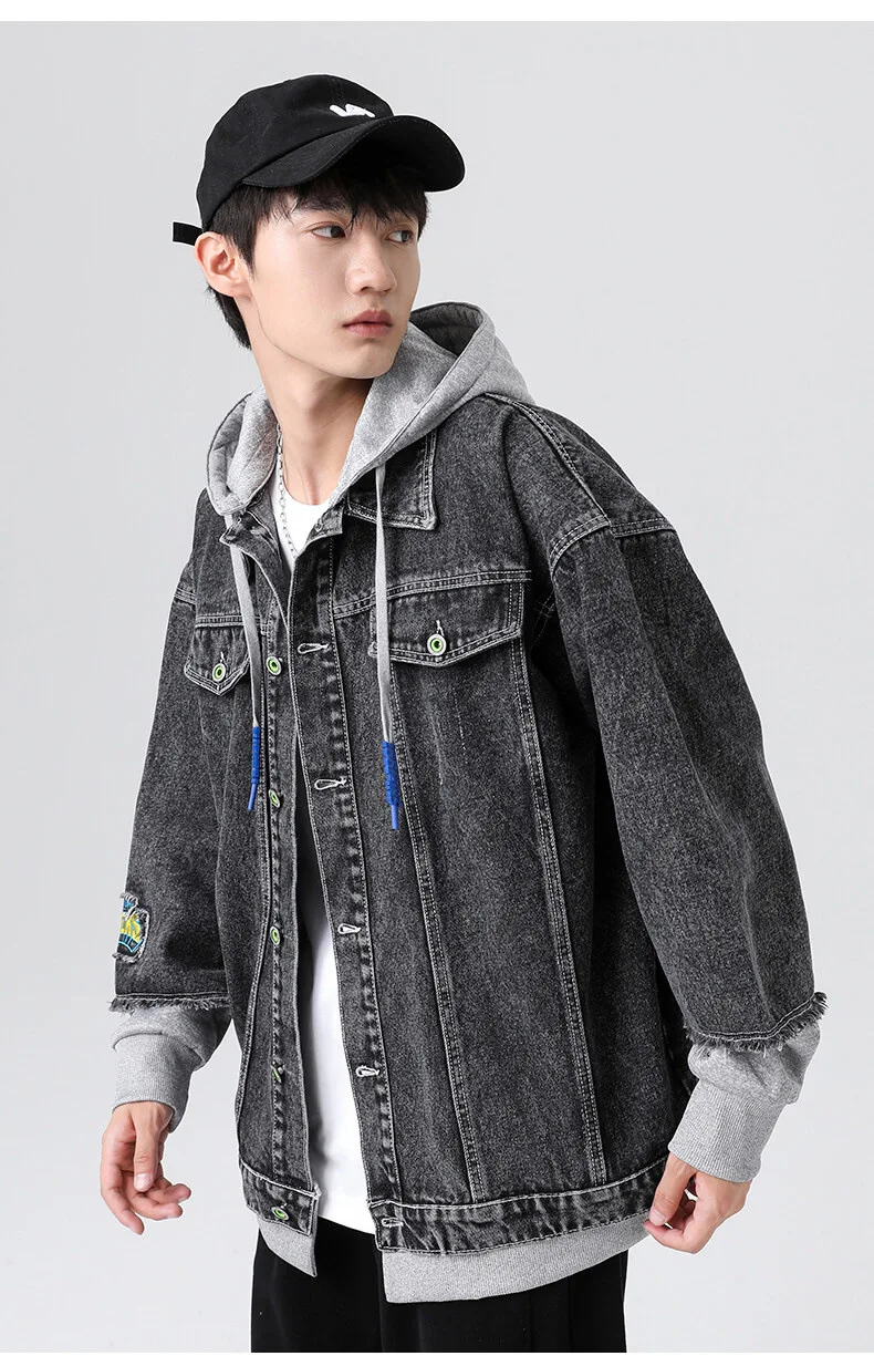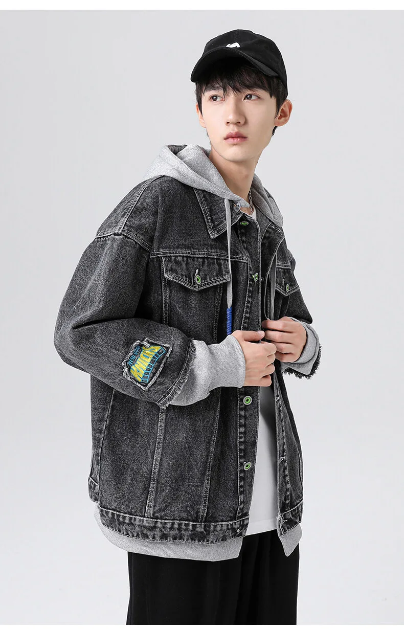 Plus size 8XL denim jacket student coat men’s autumn tooling jacket men’s trend all-match patchwork jacket denim jacket men