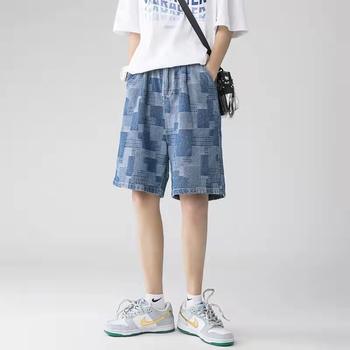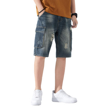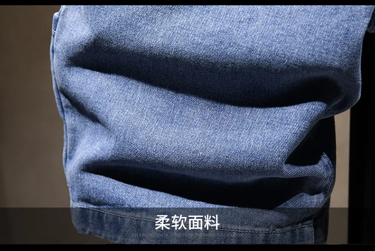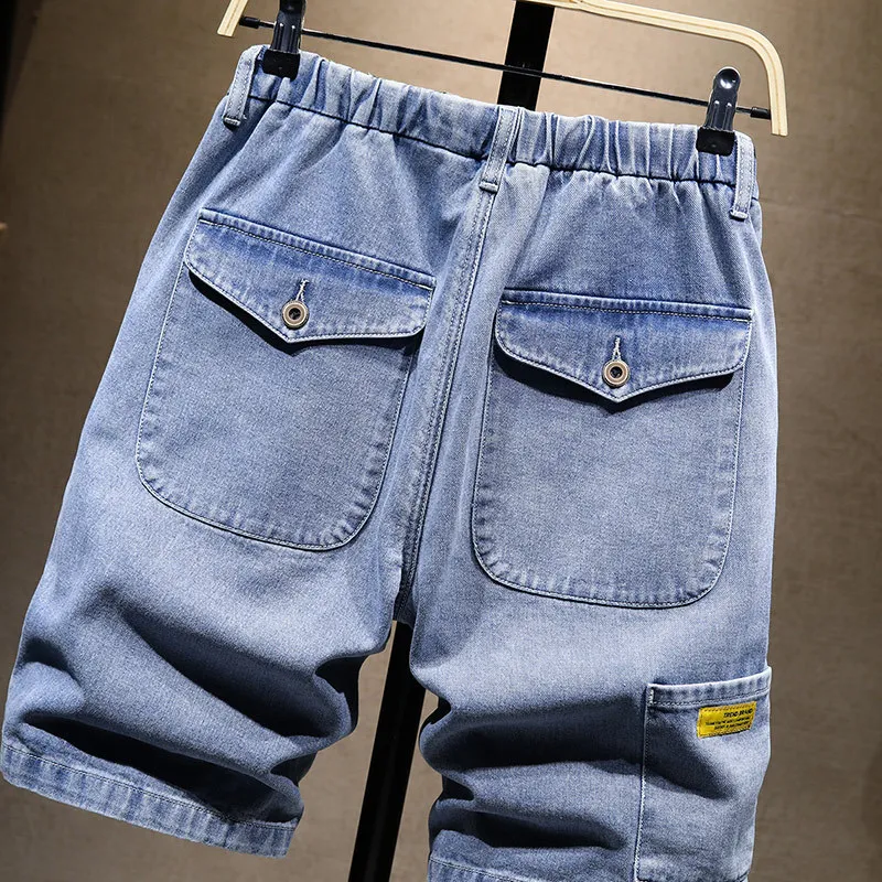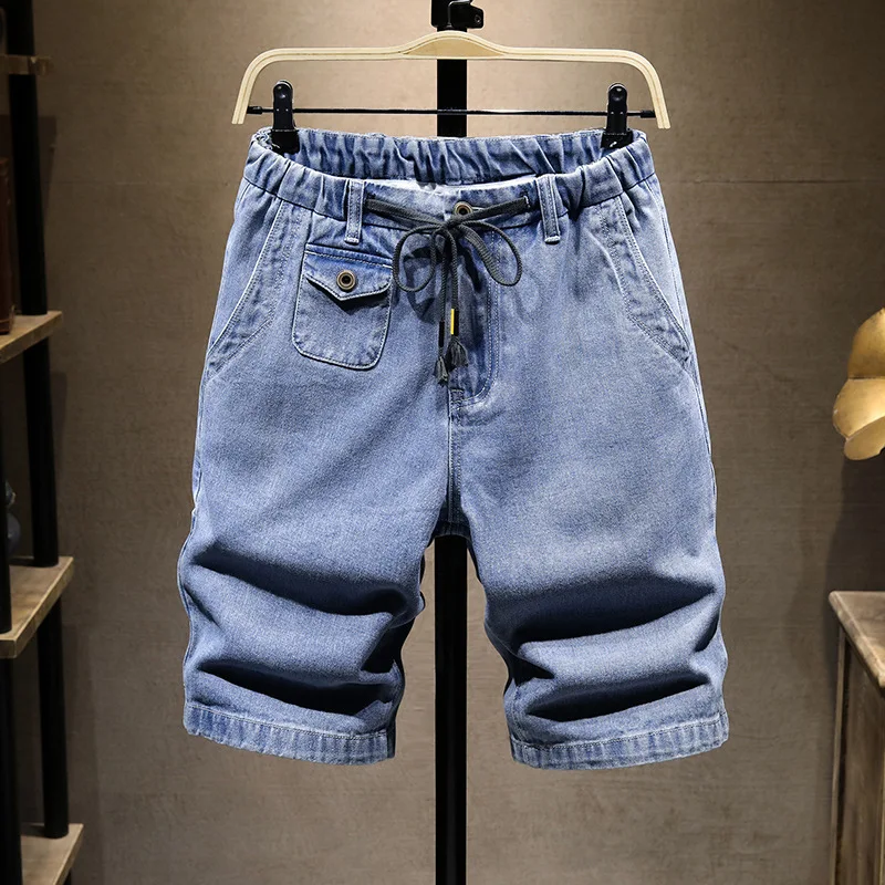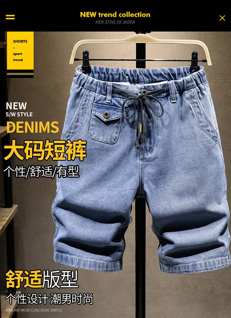 plus size denim shorts men’s summer thin section plus size knee length jeans elastic waist pockets casual Blue pants 5XL 6XL 7XL