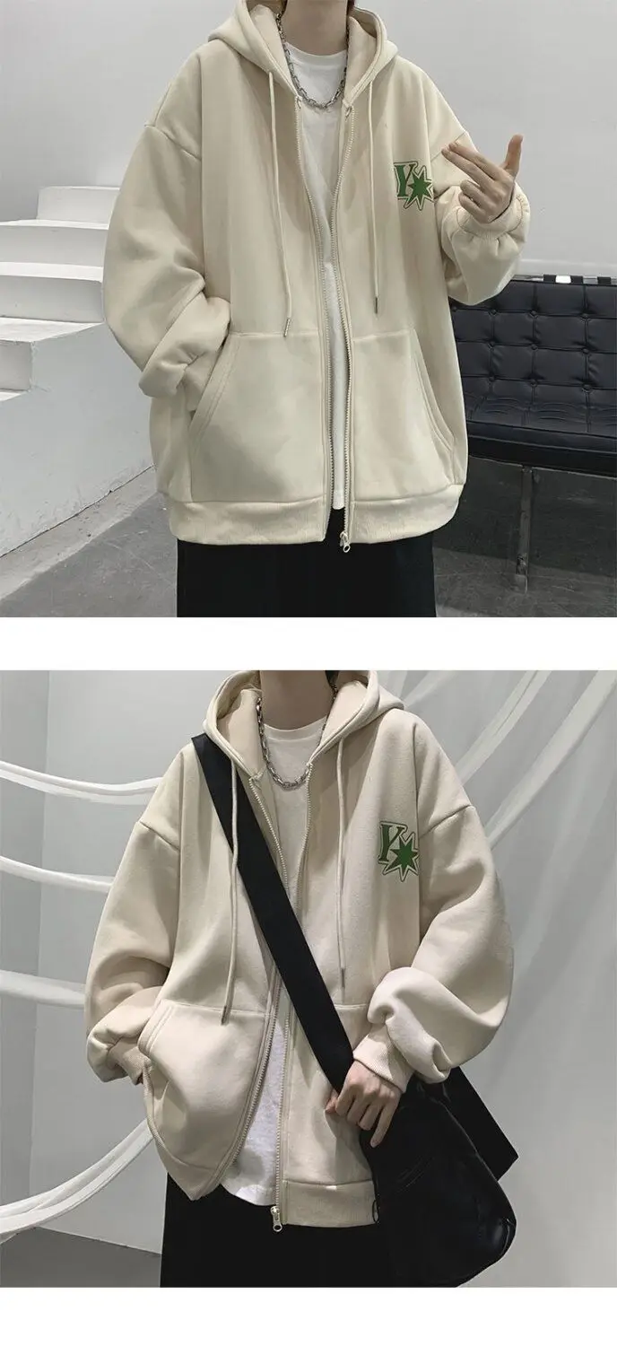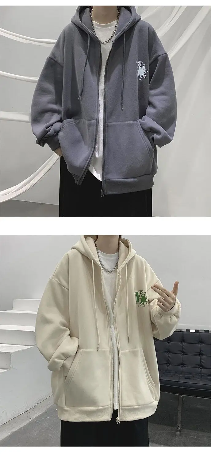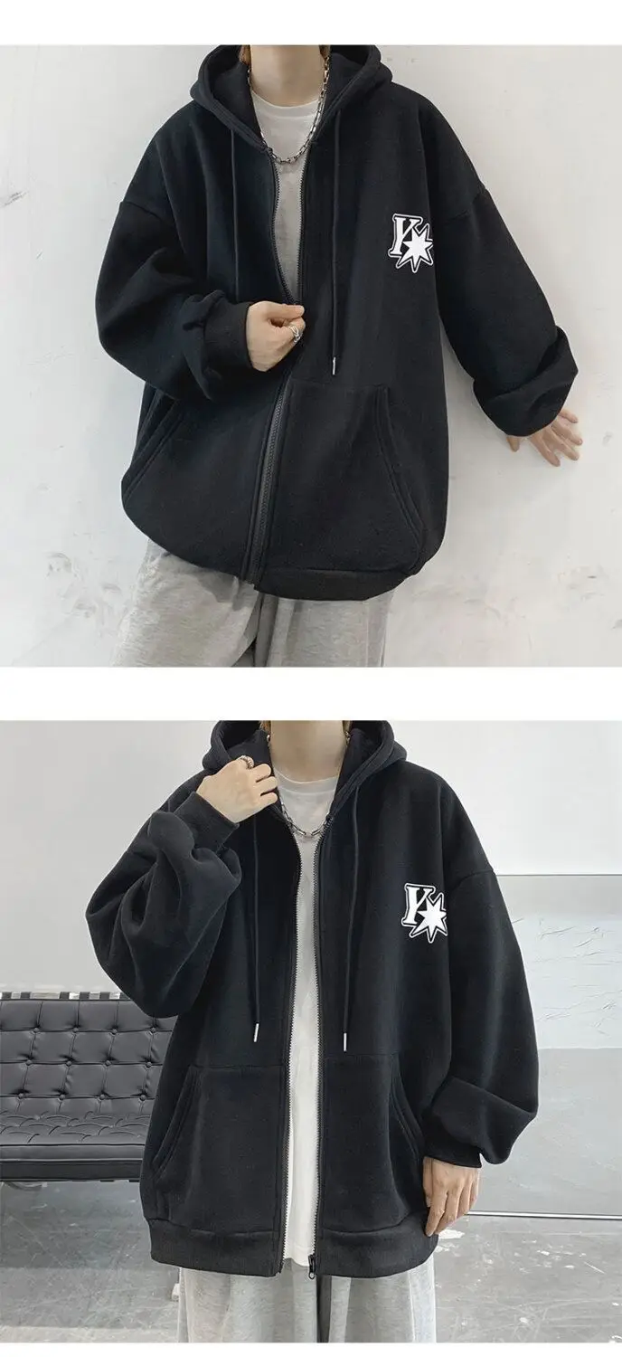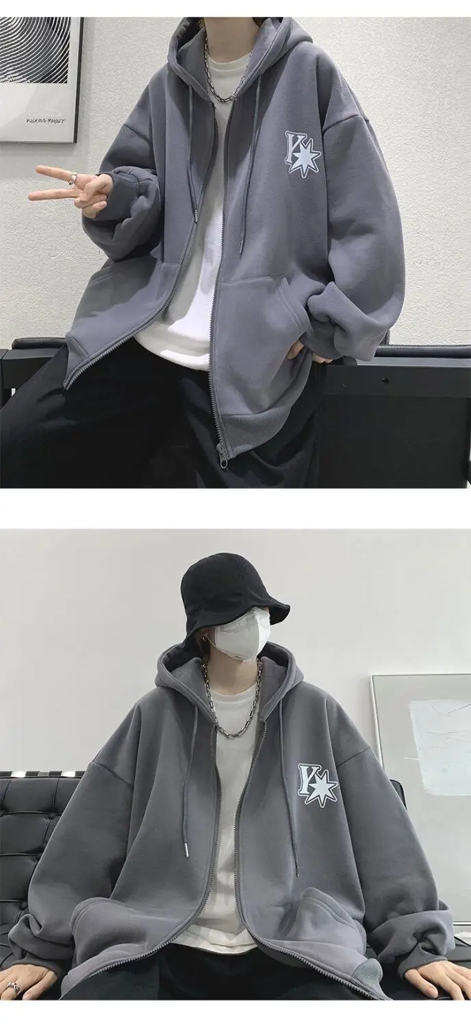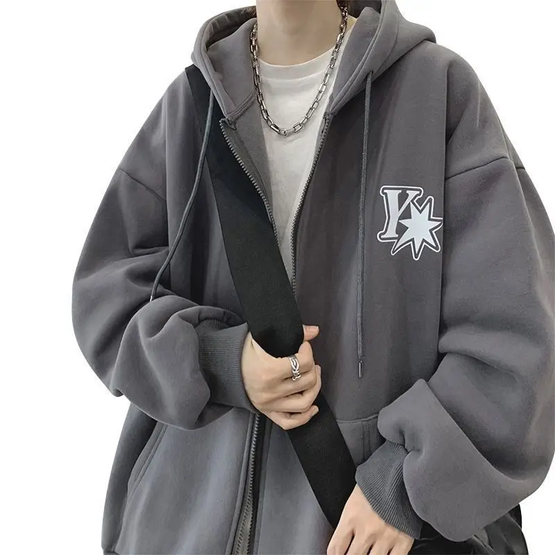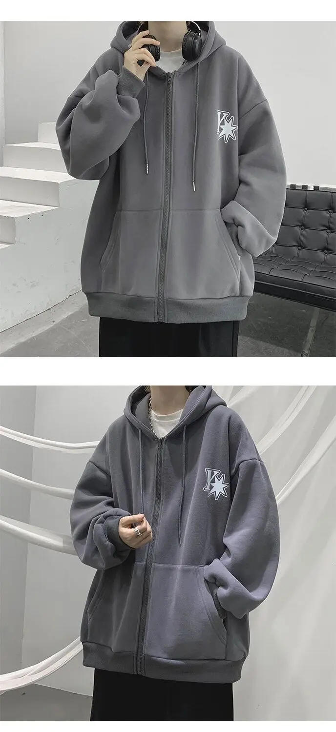 Plush and thick hooded cardigan sweater for men’s autumn and winter loose and versatile fashion brand ins zipper jacket