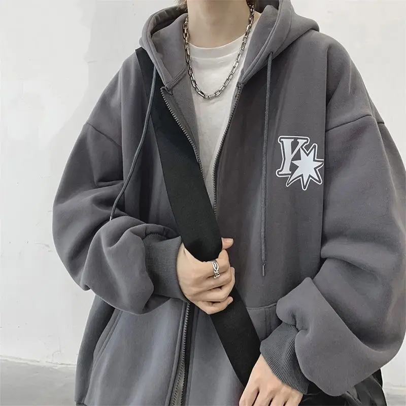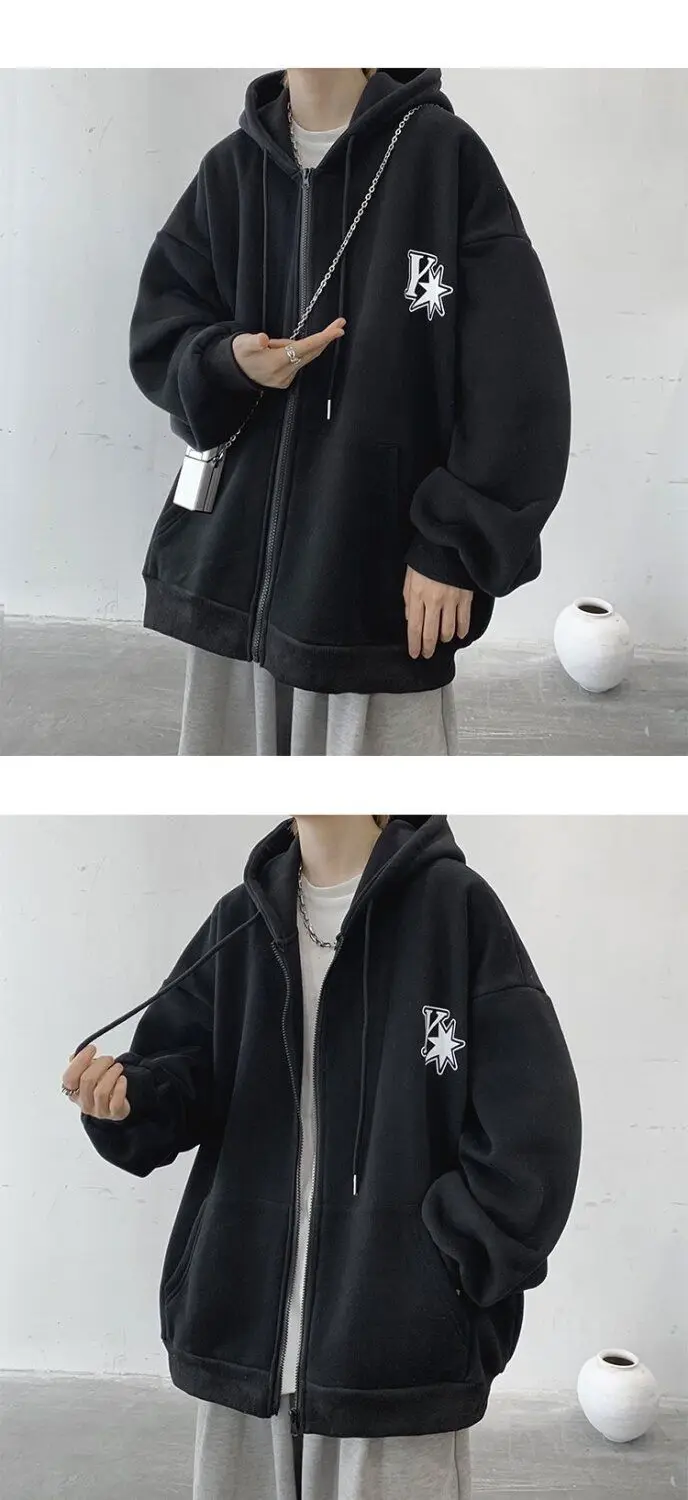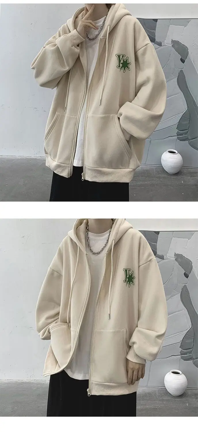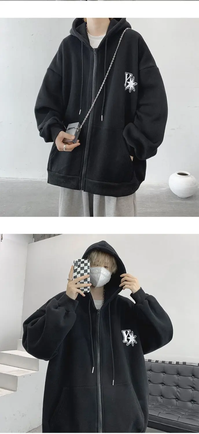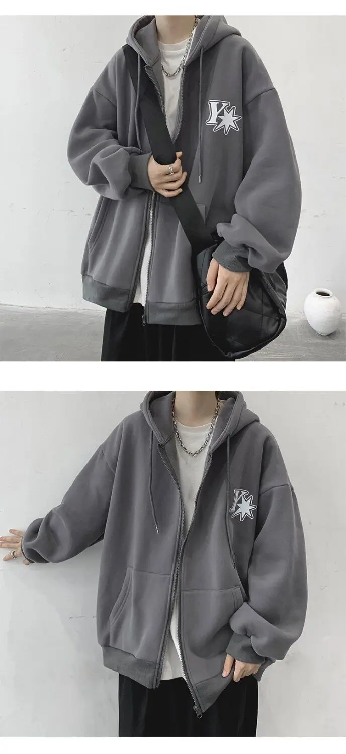 Plush and thick hooded cardigan sweater for men’s autumn and winter loose and versatile fashion brand ins zipper jacket