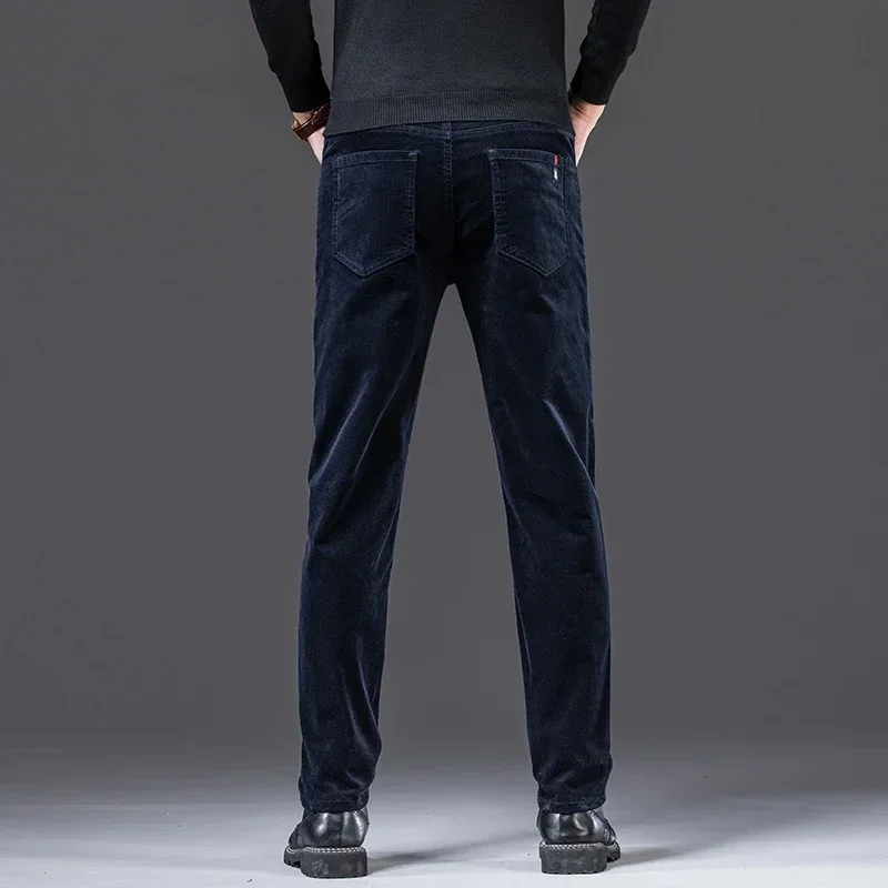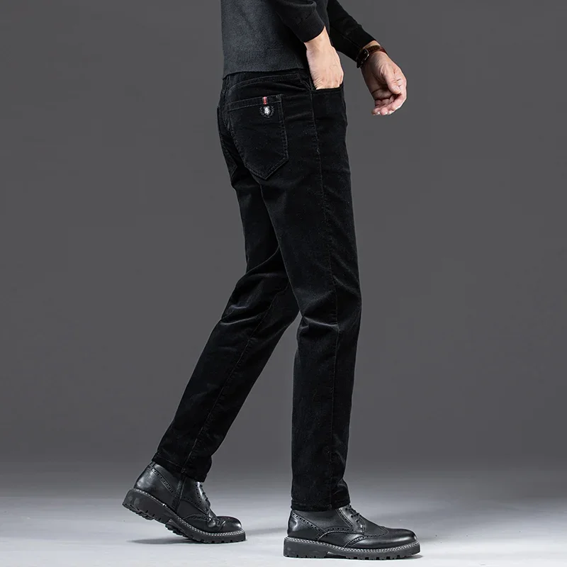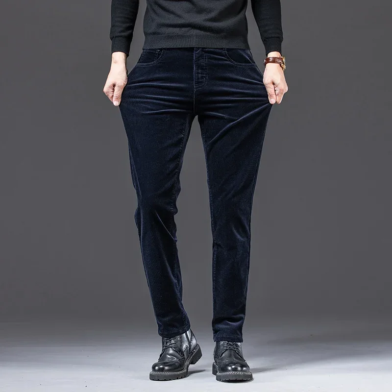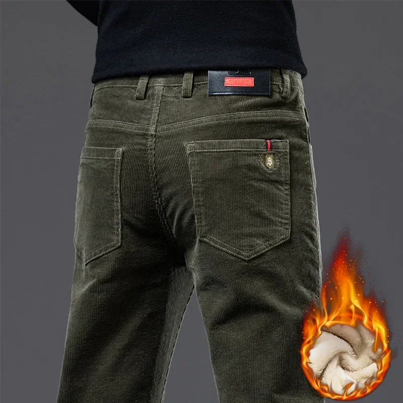 Plush Insulation Men’s Slim Fit Straight Corduroy Fleece Pants High Quality Cotton Stretch Clothing Pure Fit Casual Trousers