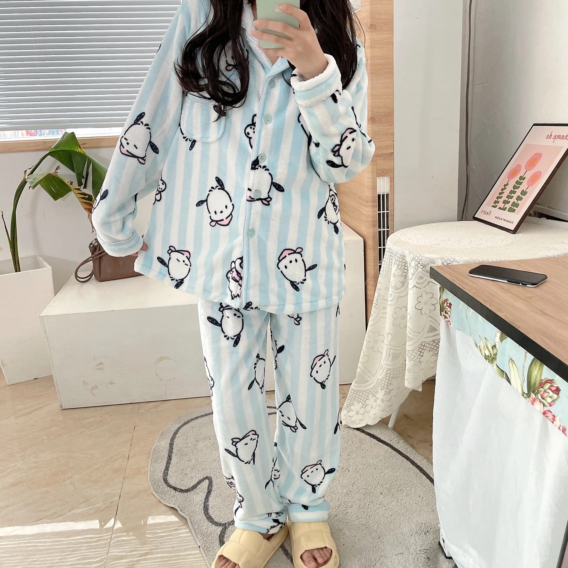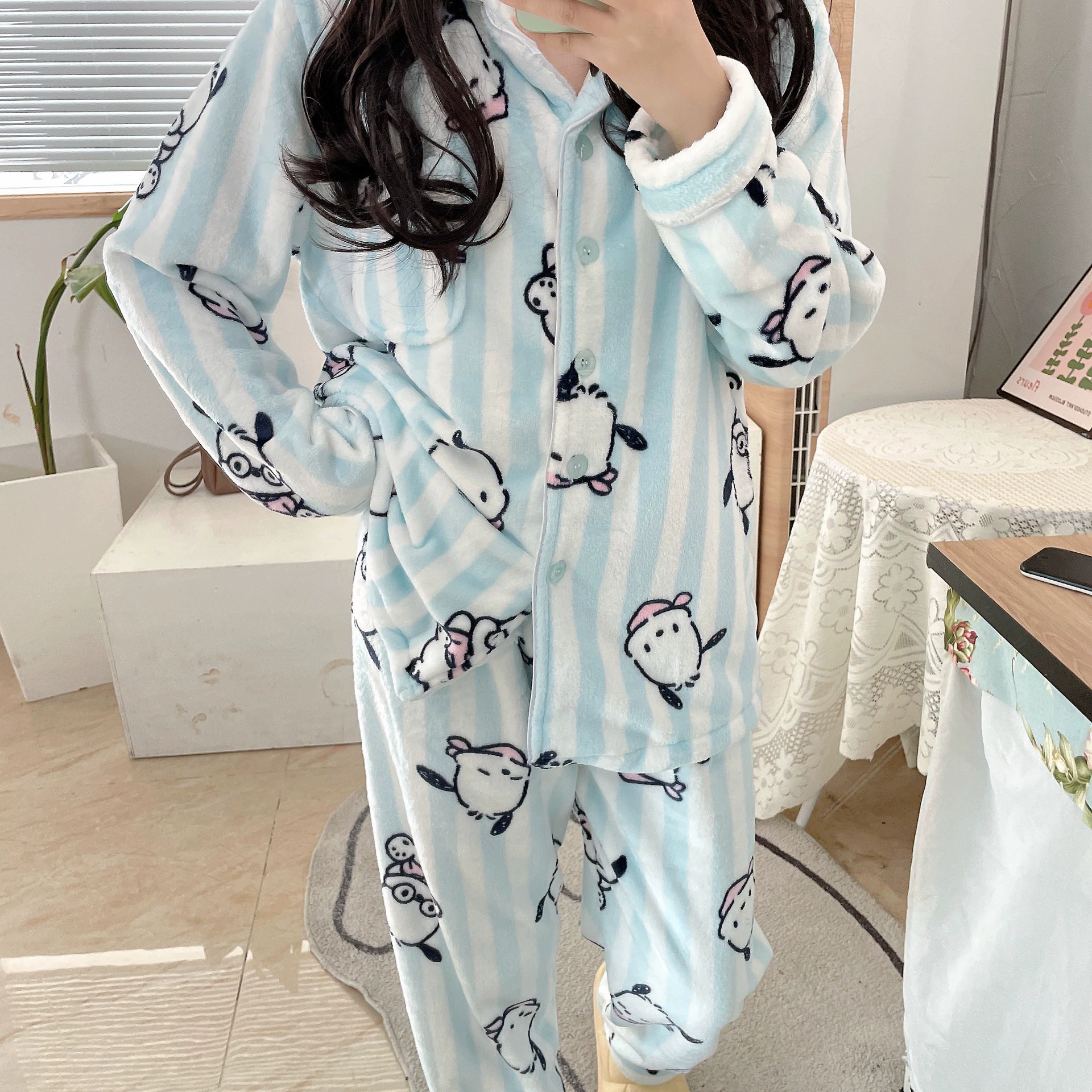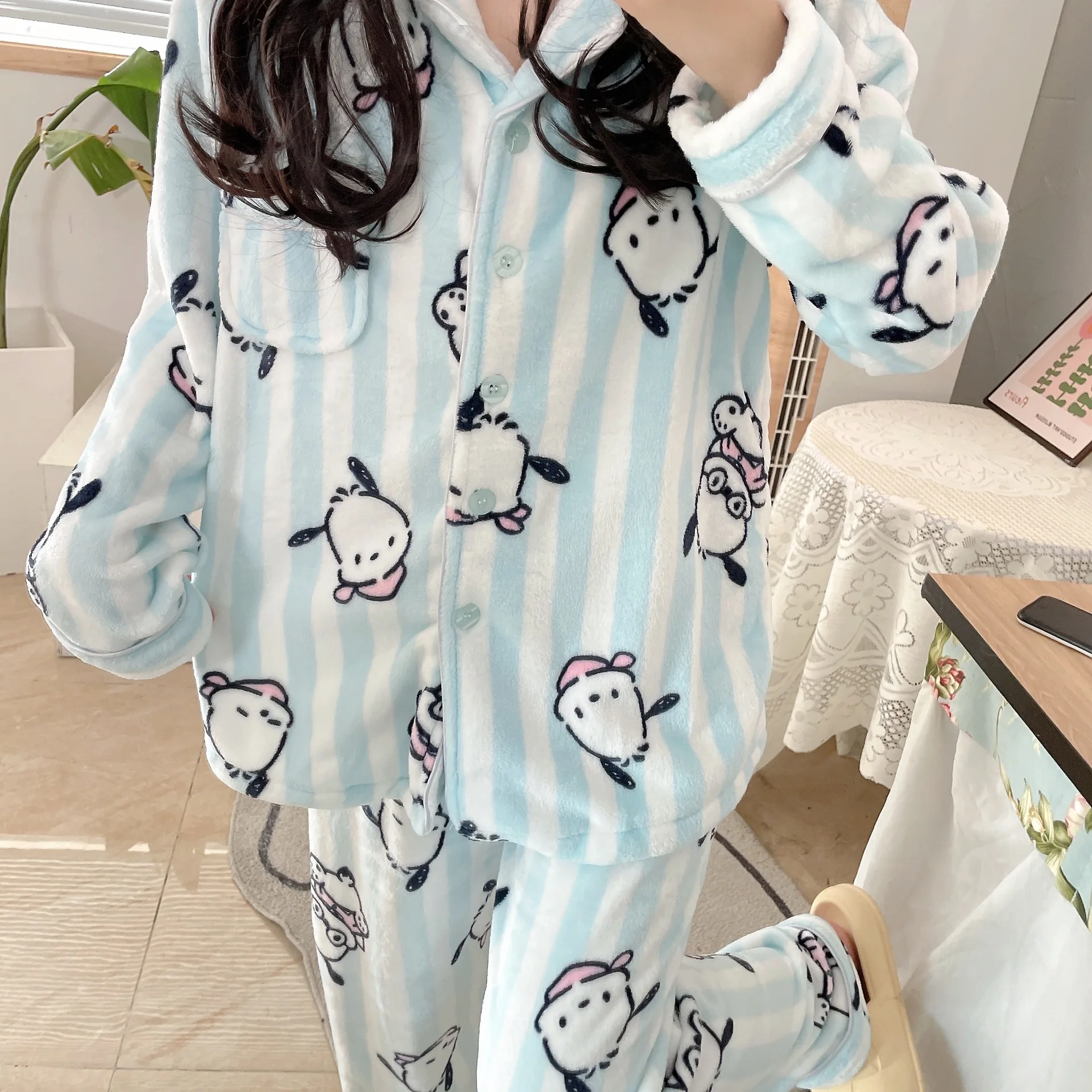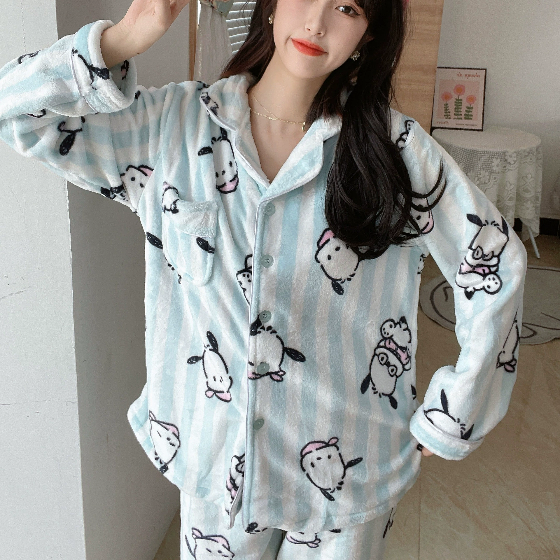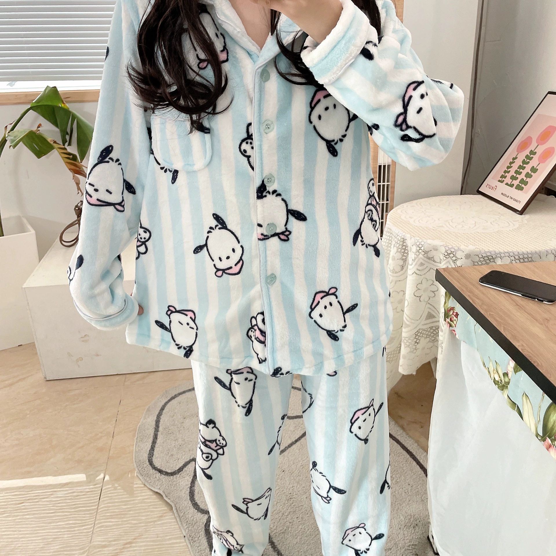 Pochaccodog 8851 Anime Sleep Tops Cartoon Pajamas Sets Sleepwear Home Nightclothes Nightwear Winter Unisex Gift