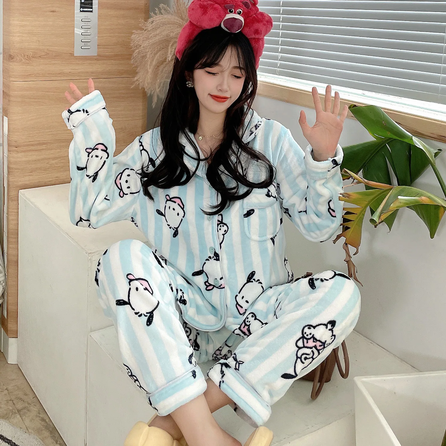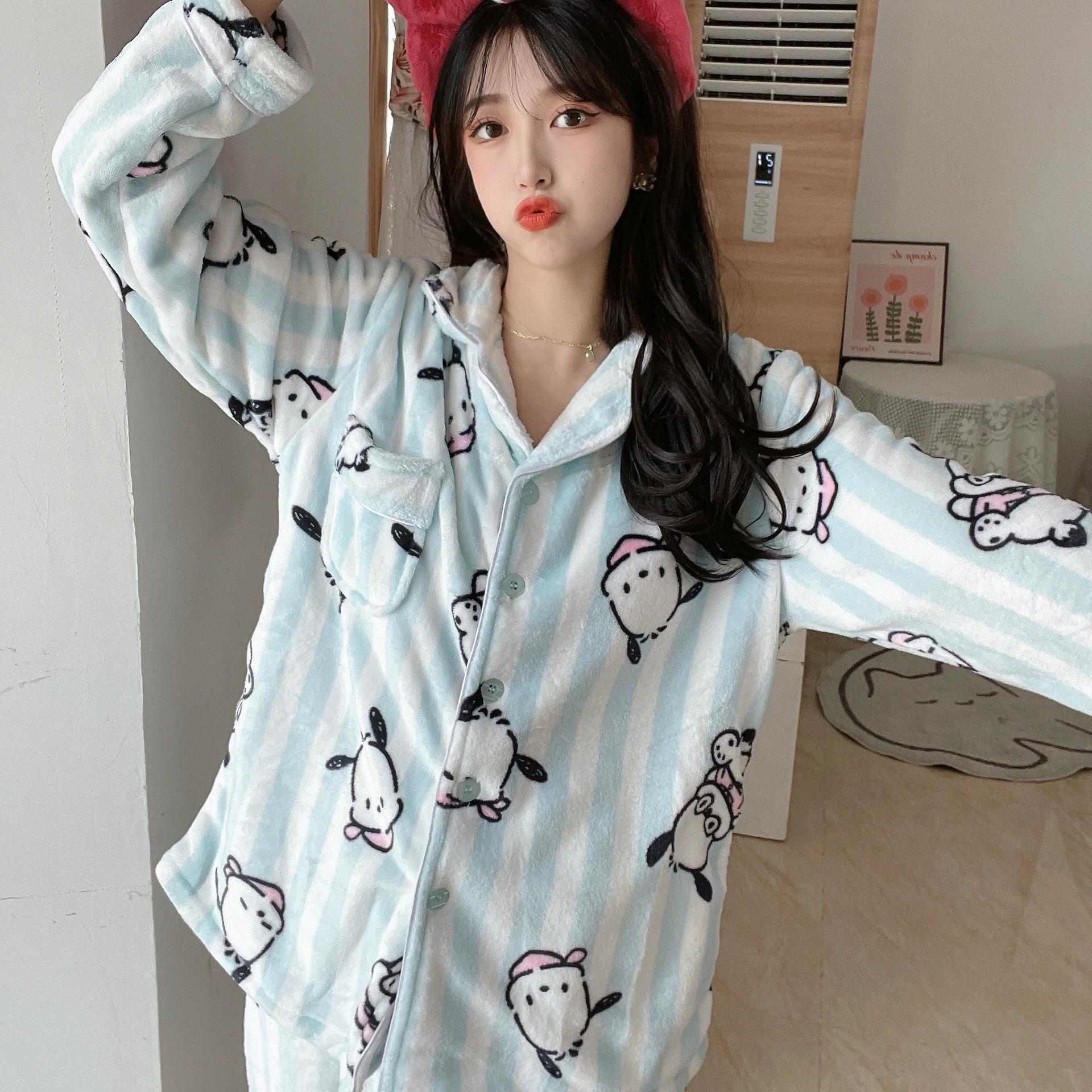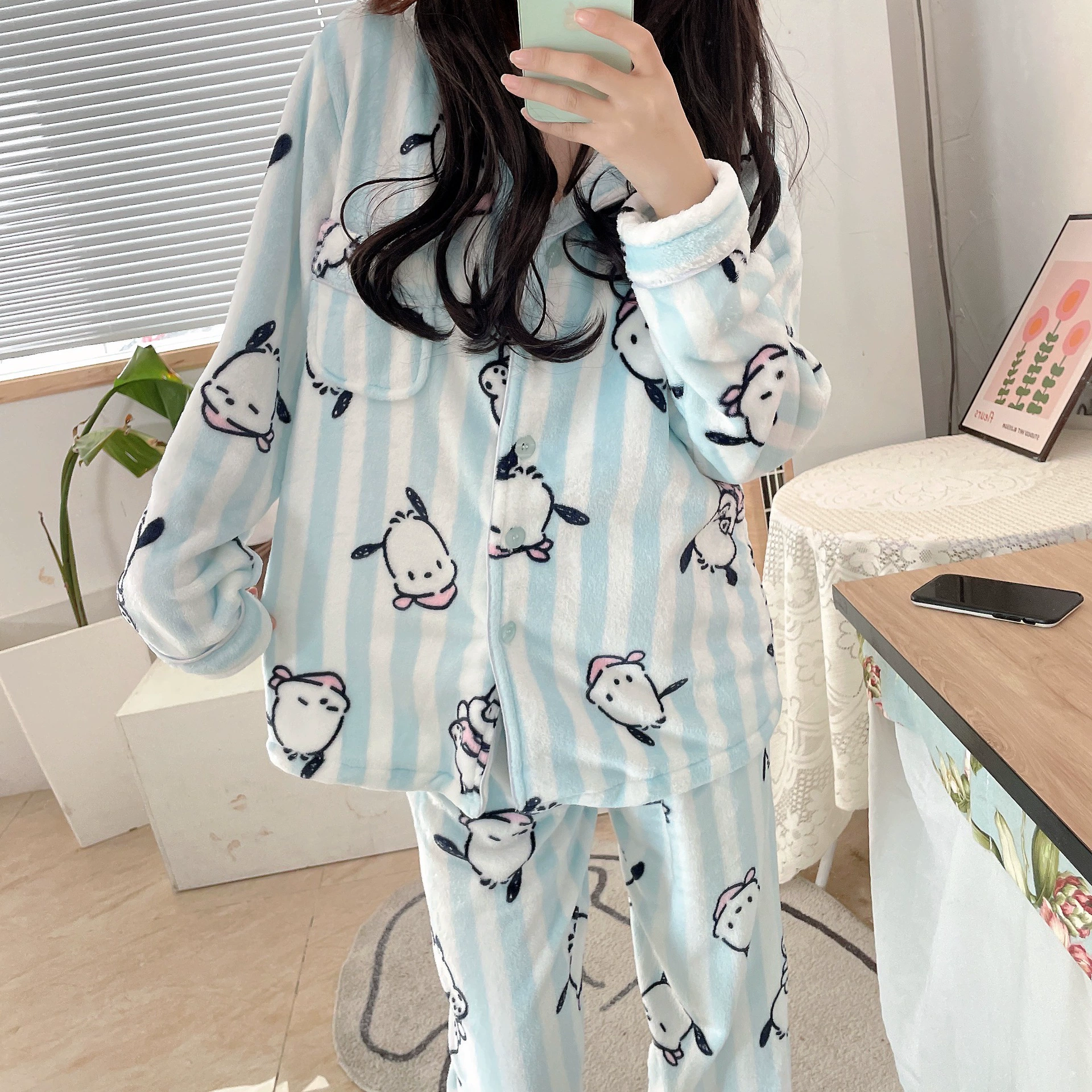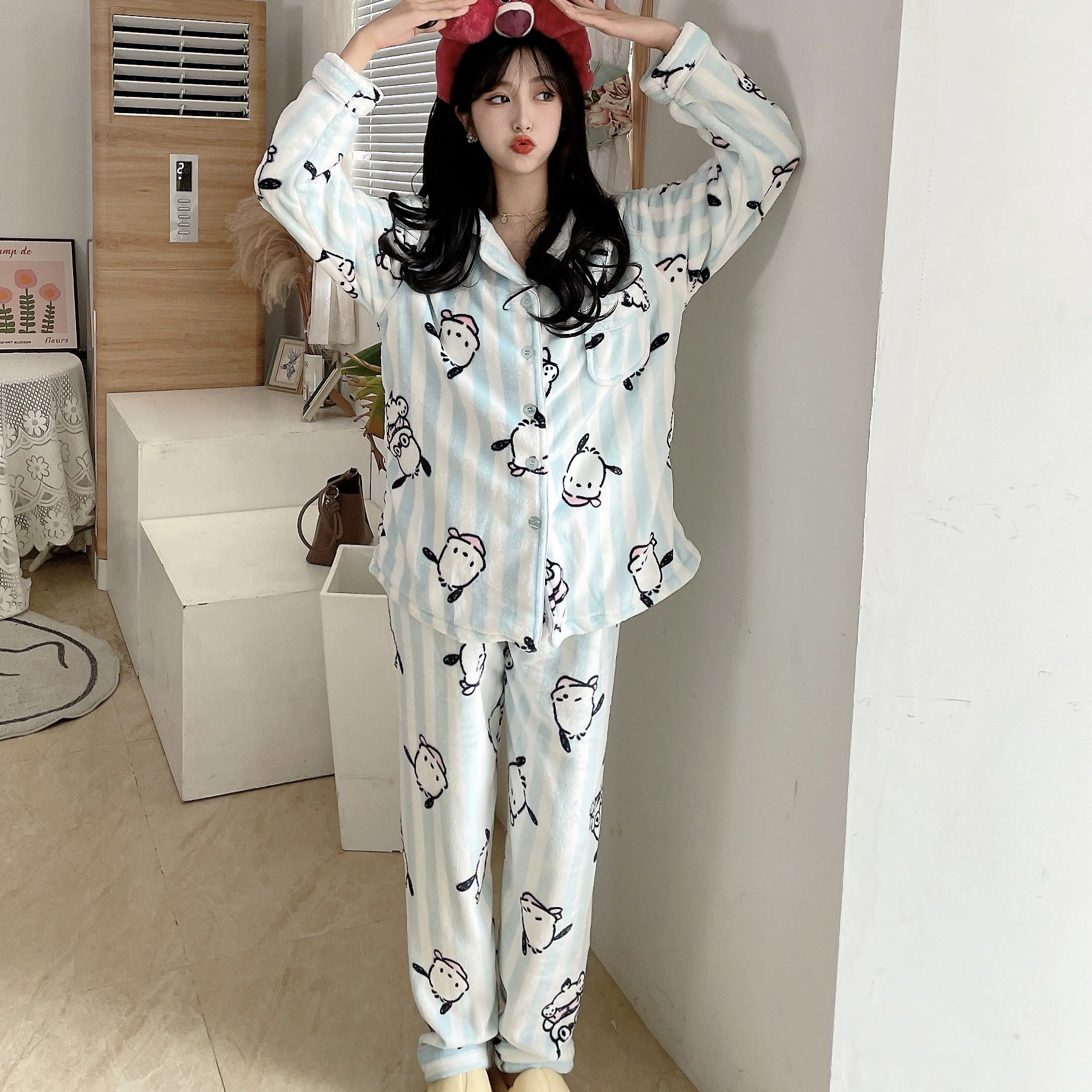 Pochaccodog 8851 Anime Sleep Tops Cartoon Pajamas Sets Sleepwear Home Nightclothes Nightwear Winter Unisex Gift