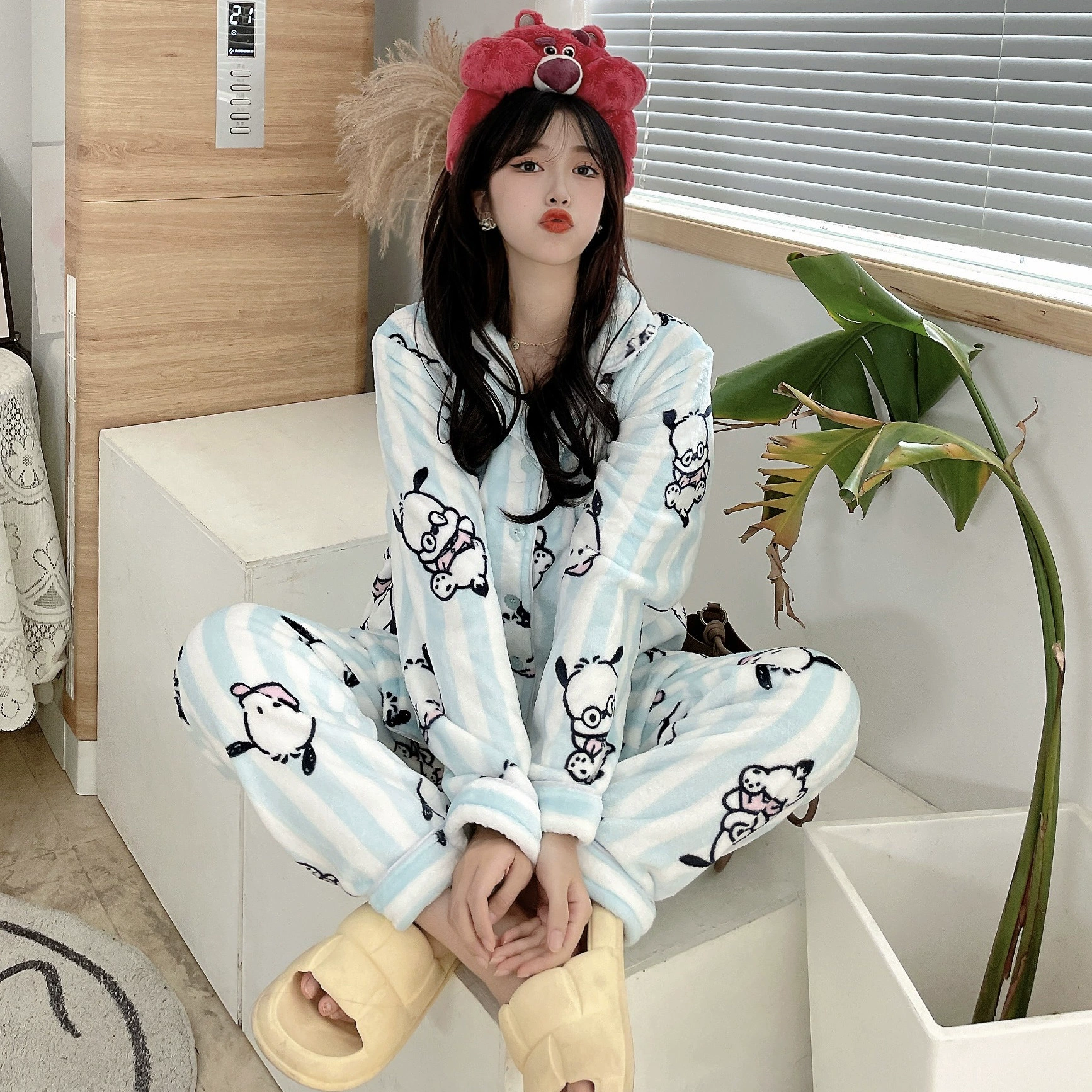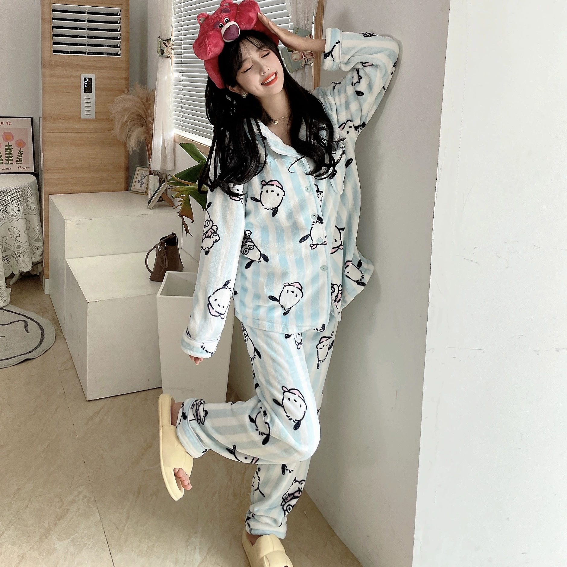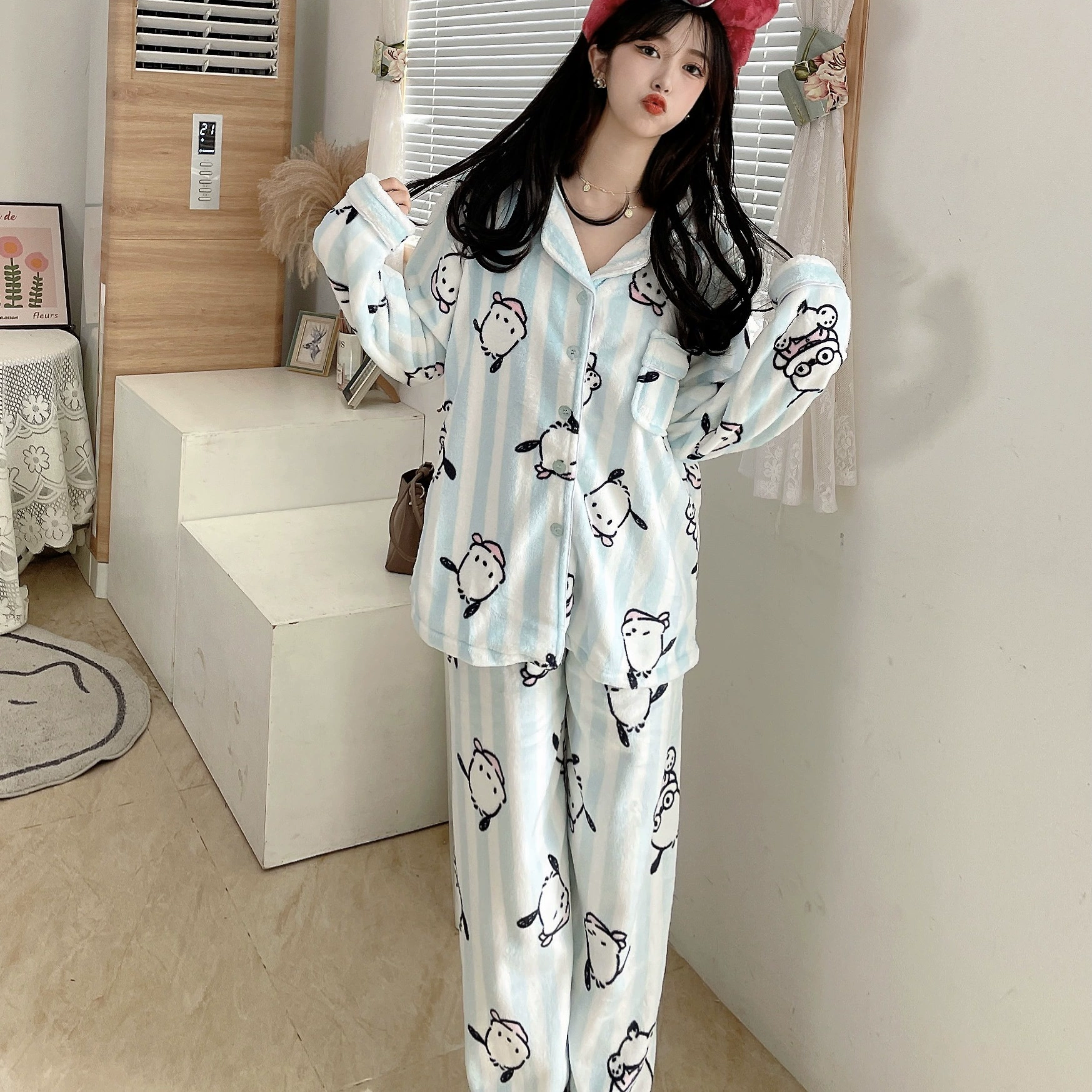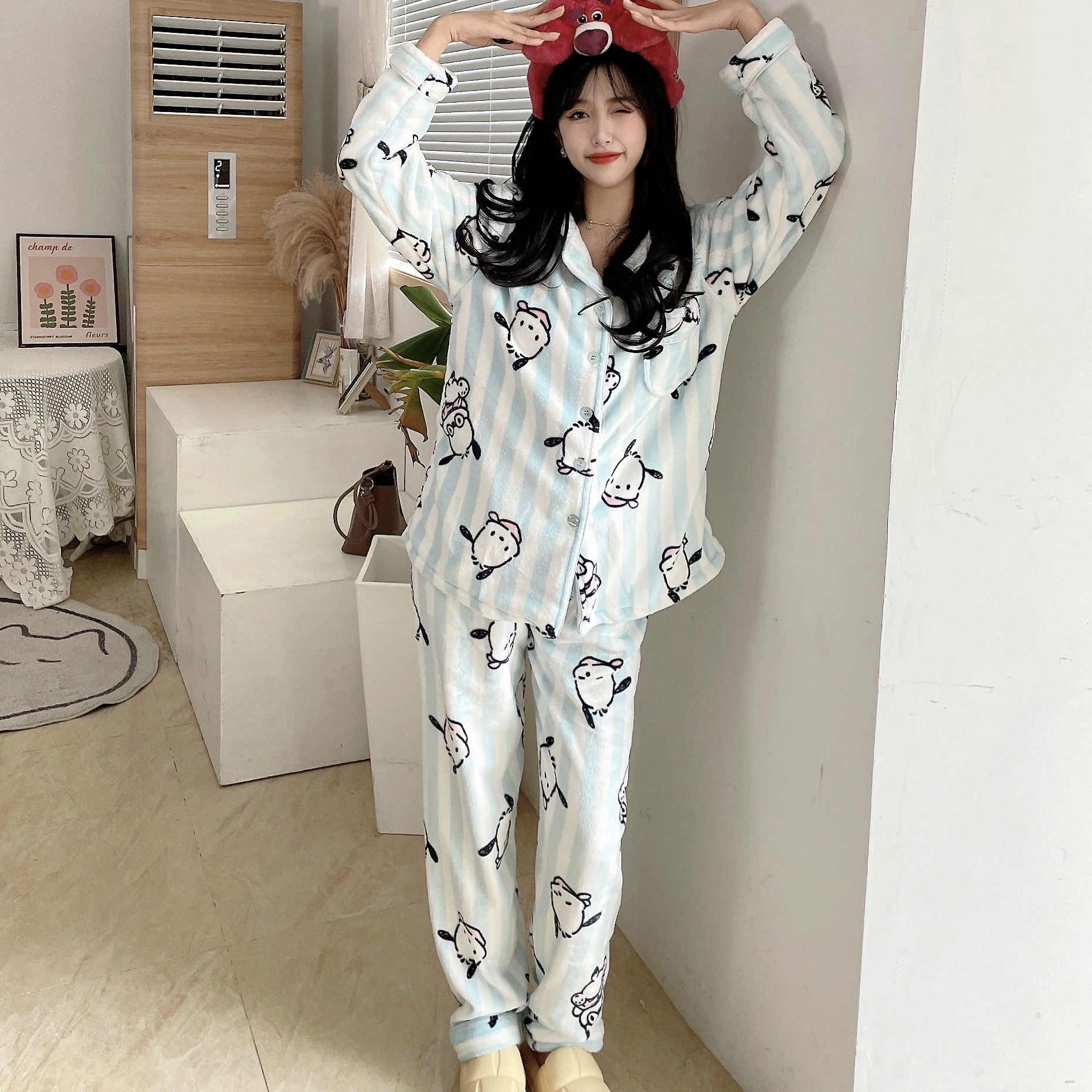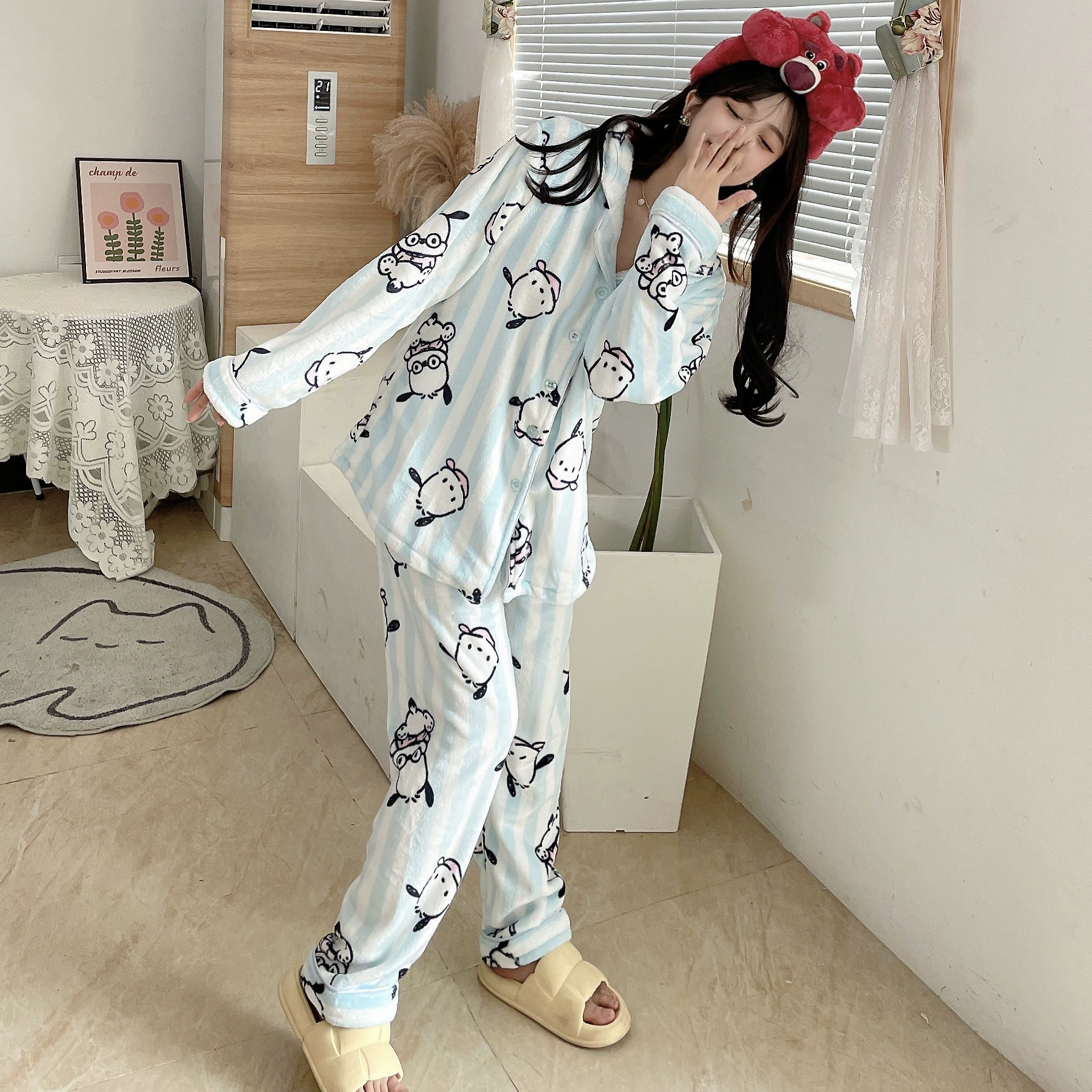 Pochaccodog 8851 Anime Sleep Tops Cartoon Pajamas Sets Sleepwear Home Nightclothes Nightwear Winter Unisex Gift