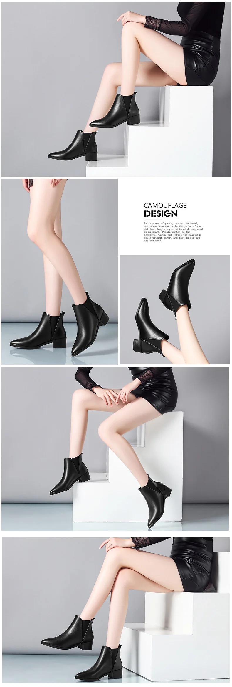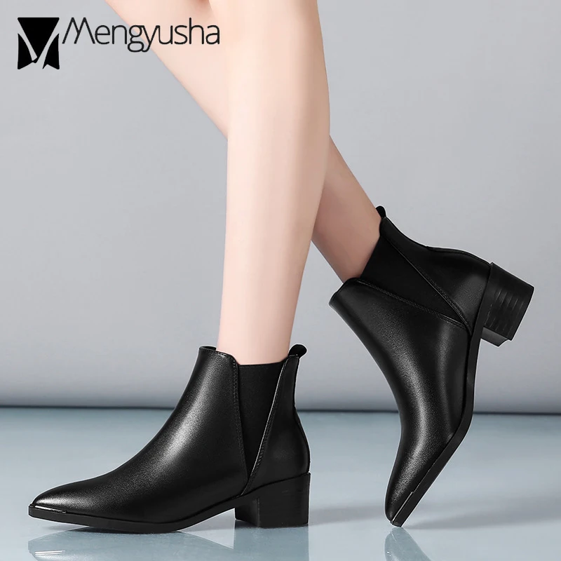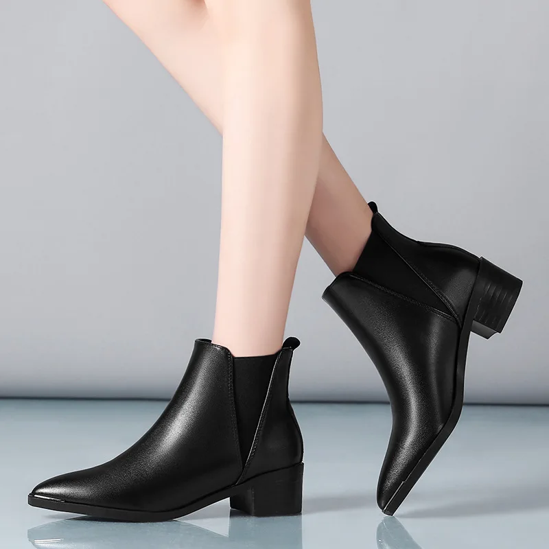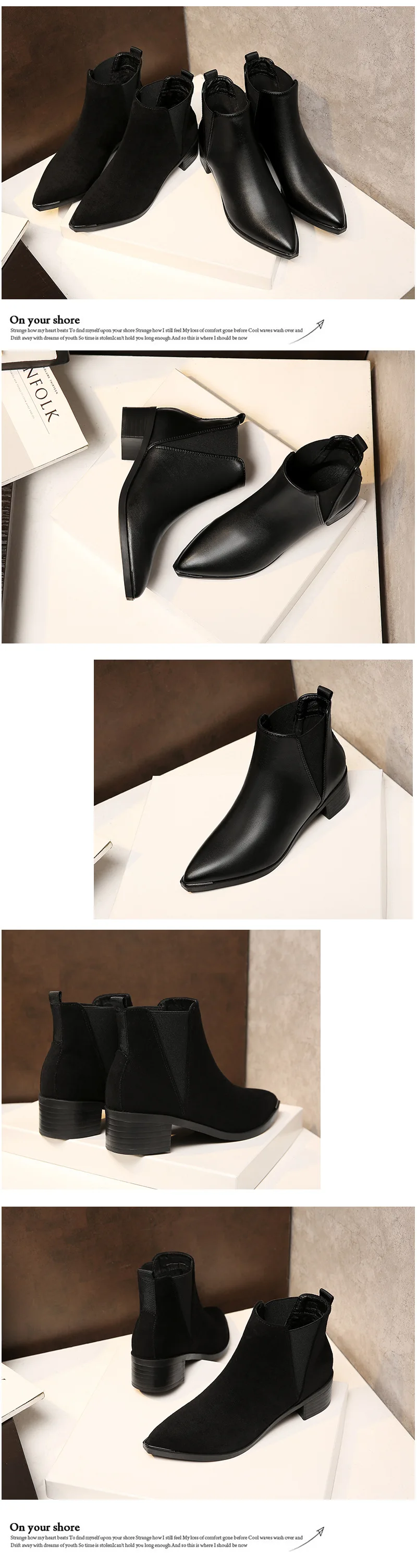 Pointed Toe Chelsea Boots Woman Short Ankle Botines Solid Leather Goth Botas Women Stretch Snow Motorcycle Booties Winter Shoe
