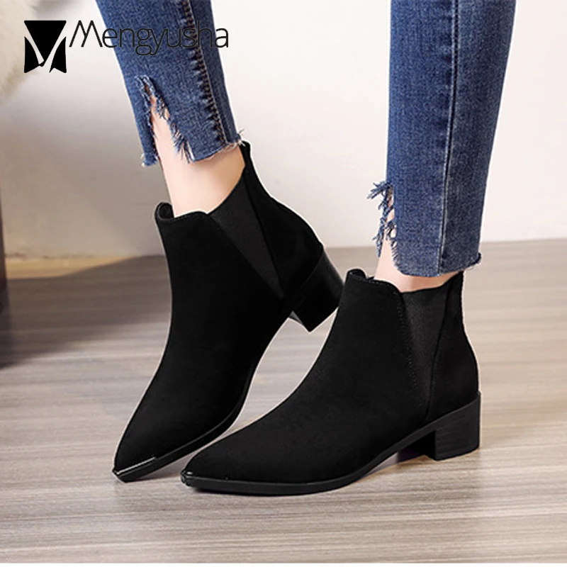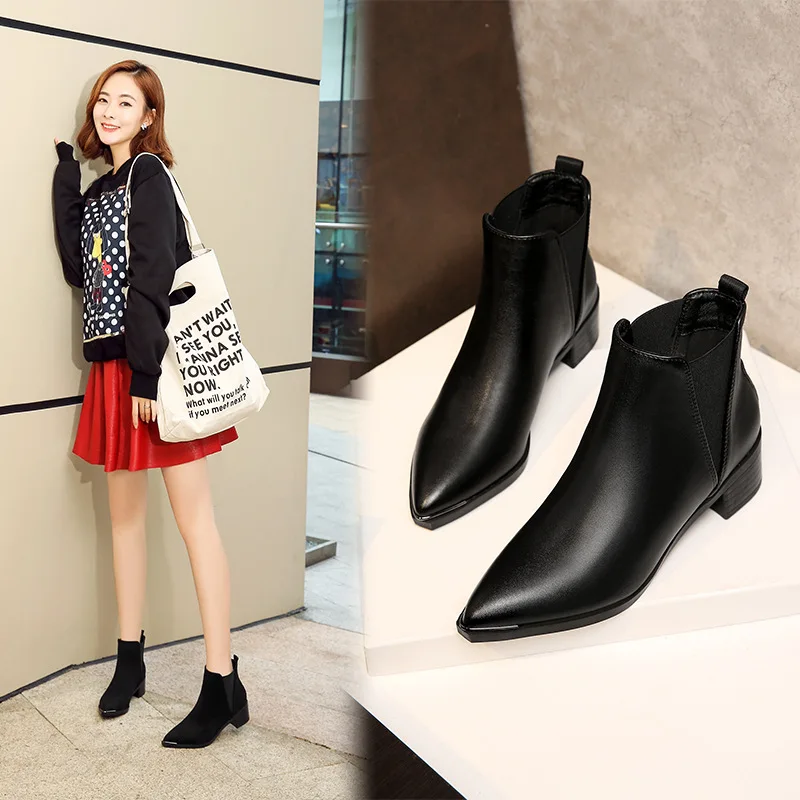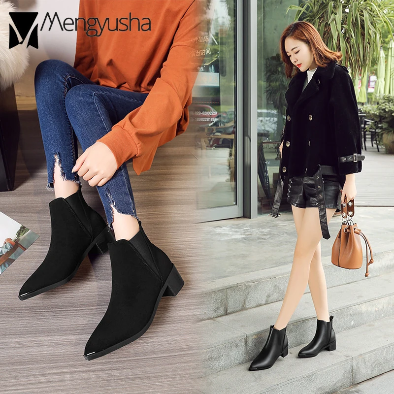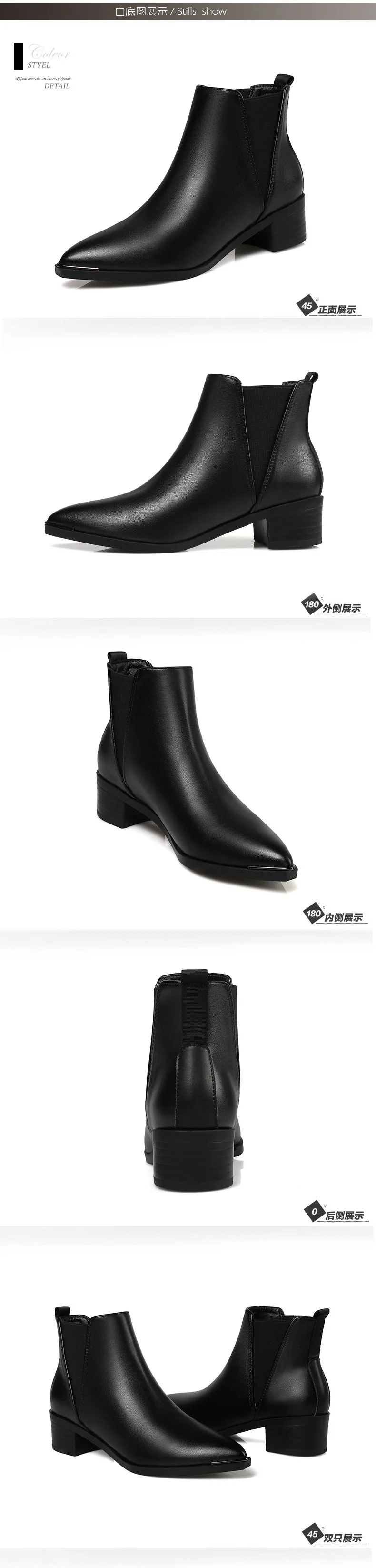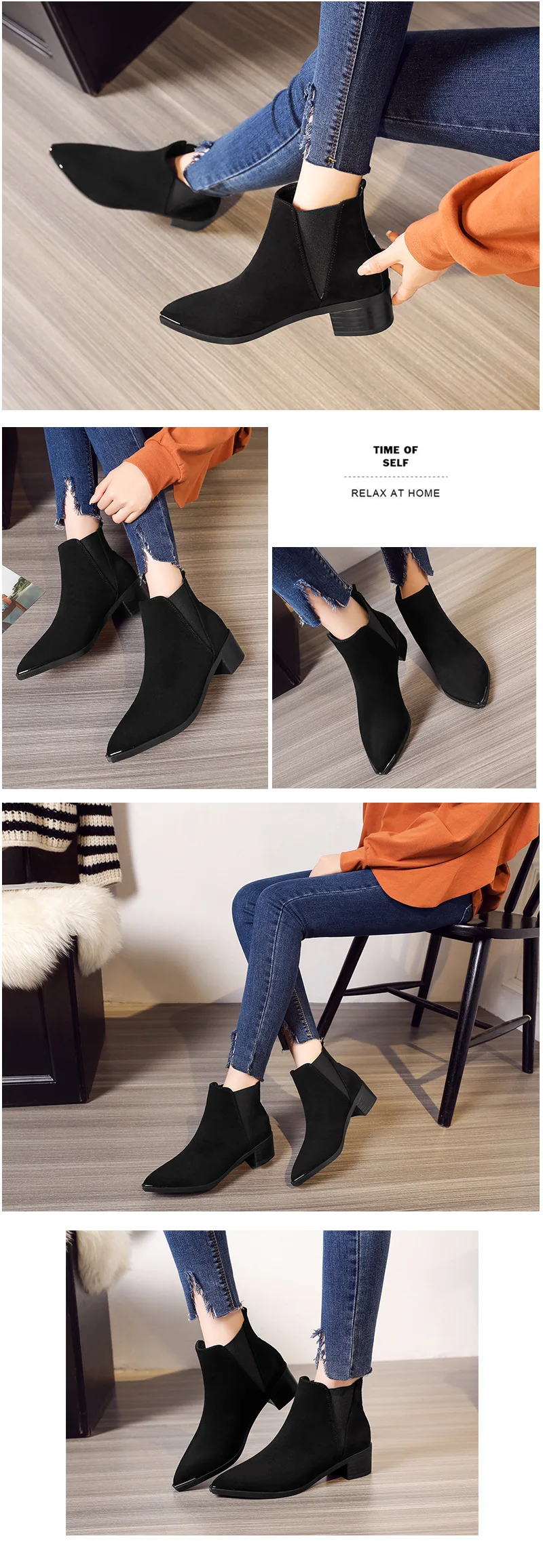 Pointed Toe Chelsea Boots Woman Short Ankle Botines Solid Leather Goth Botas Women Stretch Snow Motorcycle Booties Winter Shoe