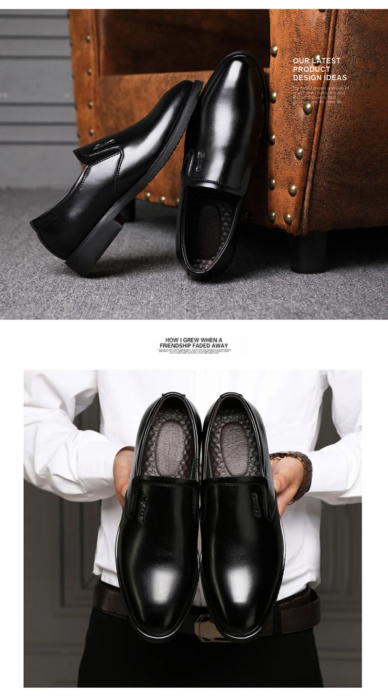 Pop Genuine Leather Shoes Men Business Shoes Male Black Leather Footwear Slip-on Men Casual Shoes Loafers Soft Comfortable A1716