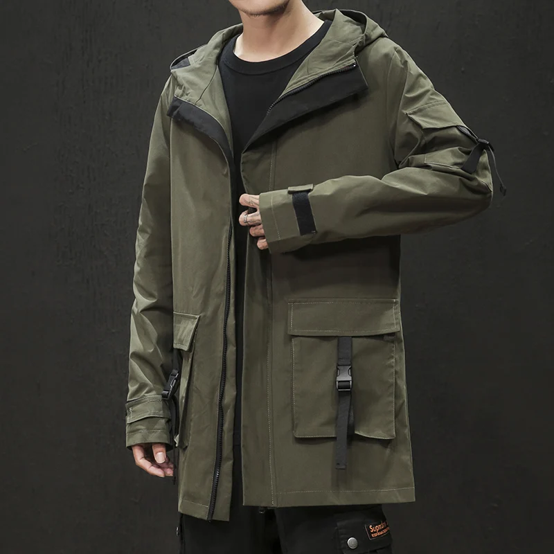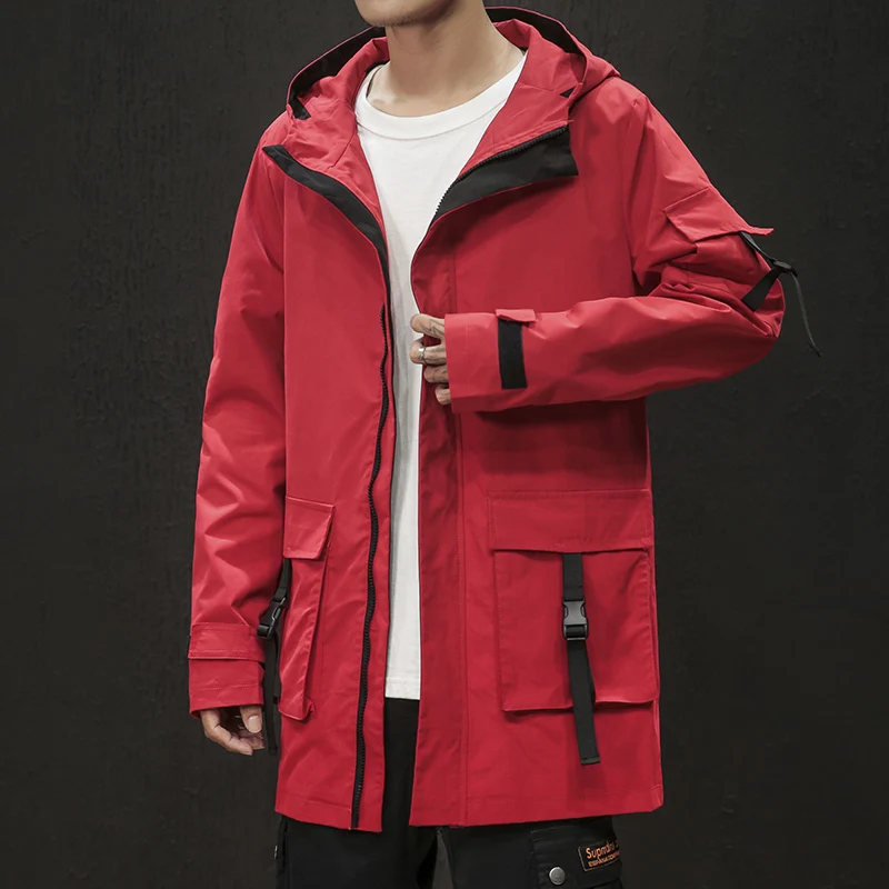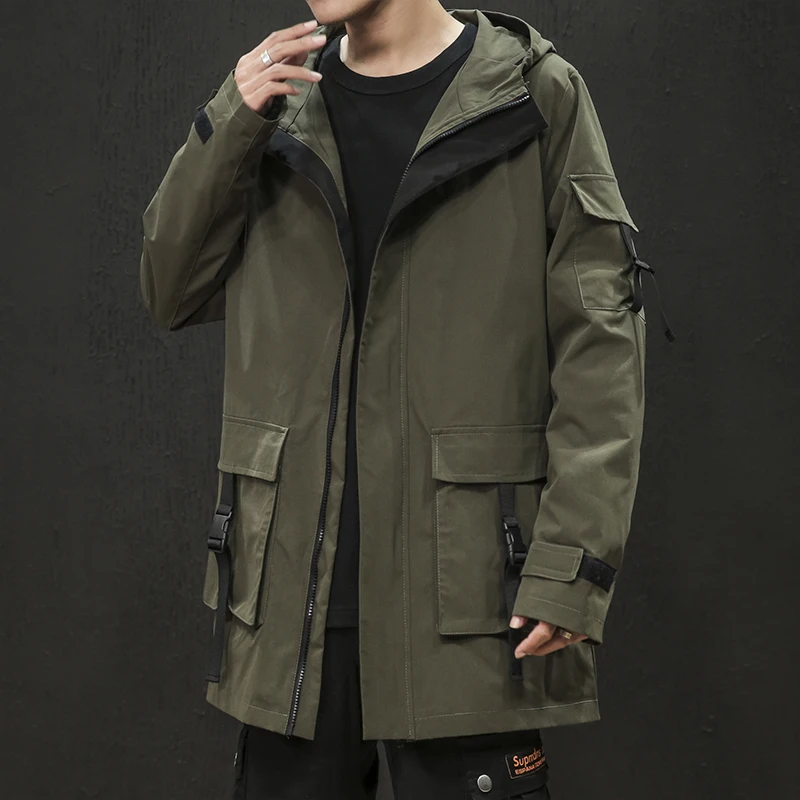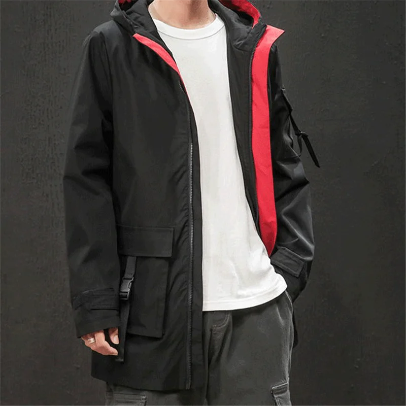 Pop Jacket Men Hooded Trench Coat Jacket Male Long Overcoat Casual Jacket Fashion Long Coat Loose Men Windbreaker Streetwear