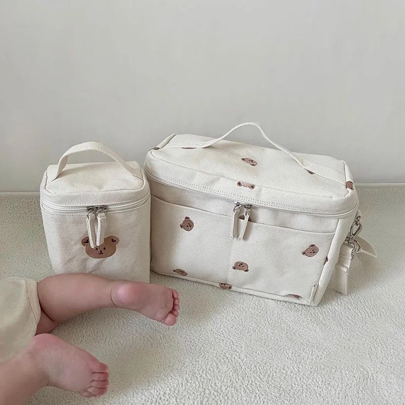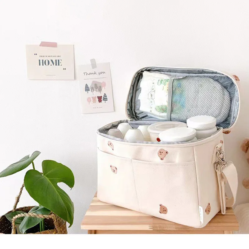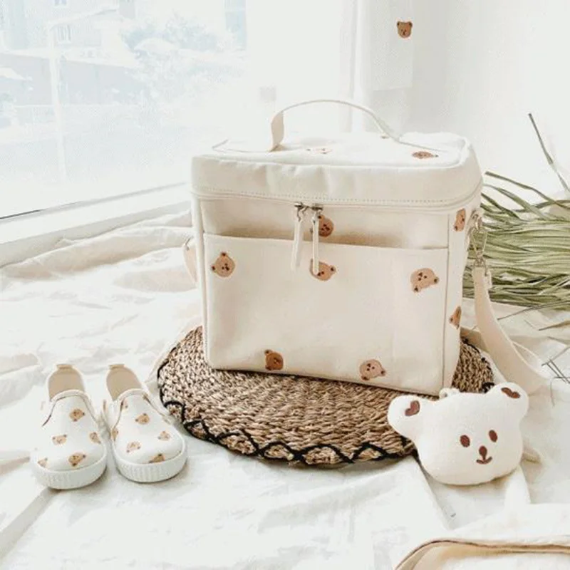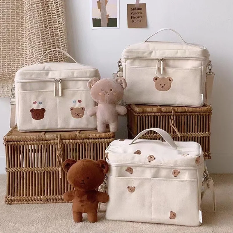 Portable Insulated Canvas Lunch Bag Thermal Food Picnic Cooler Lunch Boxes Kids Baby Diaper Bag for Stroller Mom Bags Organizer