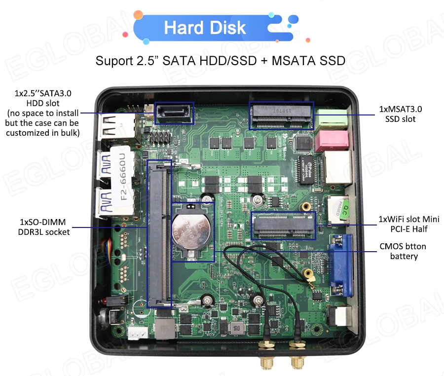 1 x SATA3.0 slot for SATA HDD or SSD, support 6Gb/s(no space to install) |
