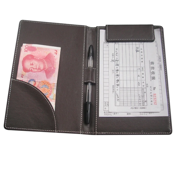 PU Leather Cashier Holder Receipt Clip Folder Cheque Bill Holder Checkbook Document Organizer for Business Hotel Restaurant