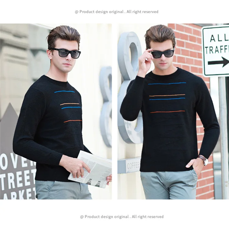 Pullover Men Brand Clothing 2019 Autumn Winter Wool Slim fit Sweater Men Casual Striped Pull Jumper Men