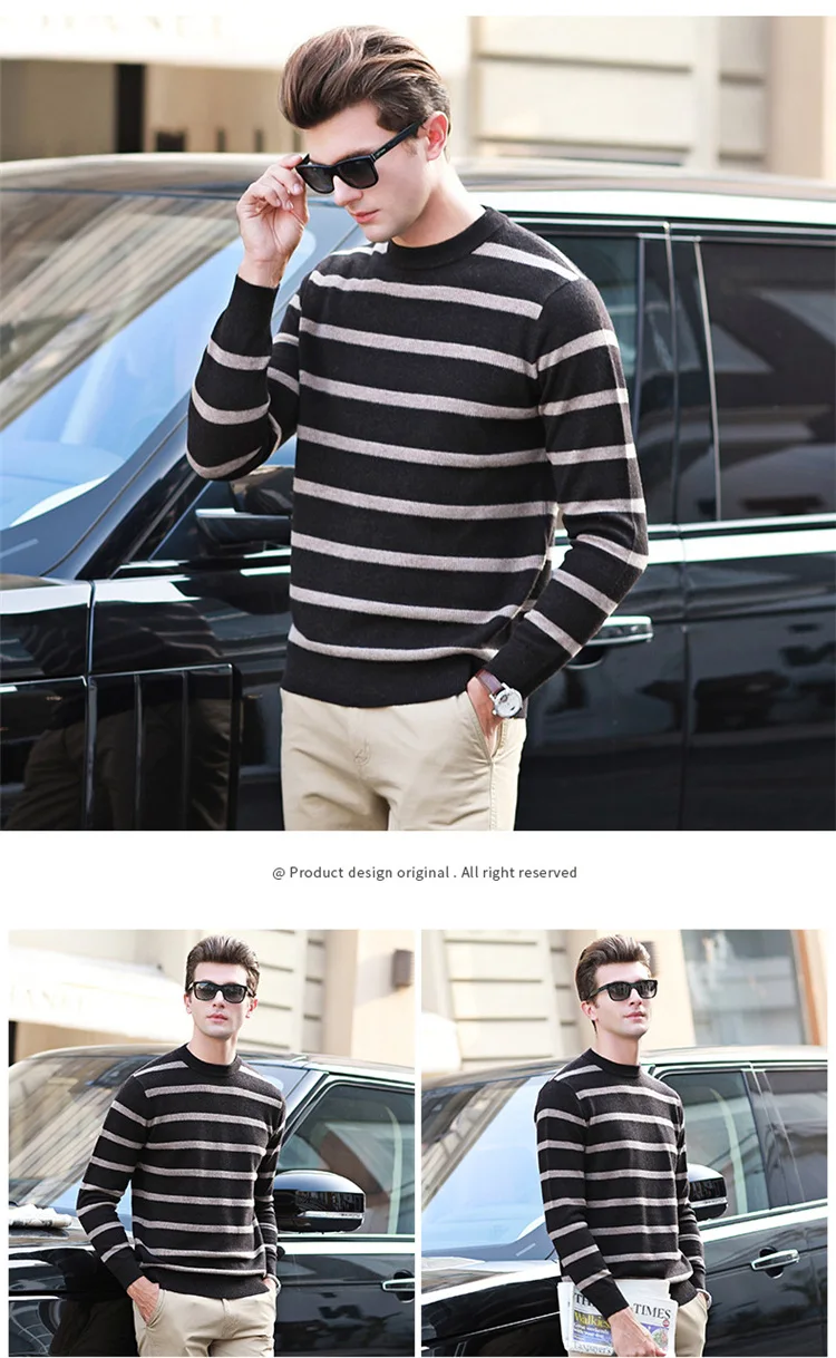 Pullover Men Brand Clothing 2019 Autumn Winter Wool Slim fit Sweater Men Casual Striped Pull Jumper Men