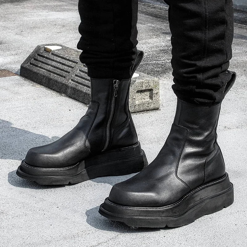 Punk Men’s Boots Genuine Cow Leather Retro Males Locomotive Riding Martin Boot Motorcycle Ghotic Tooling Mens 38~44