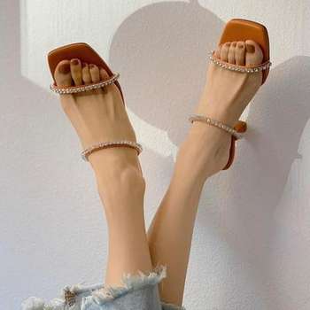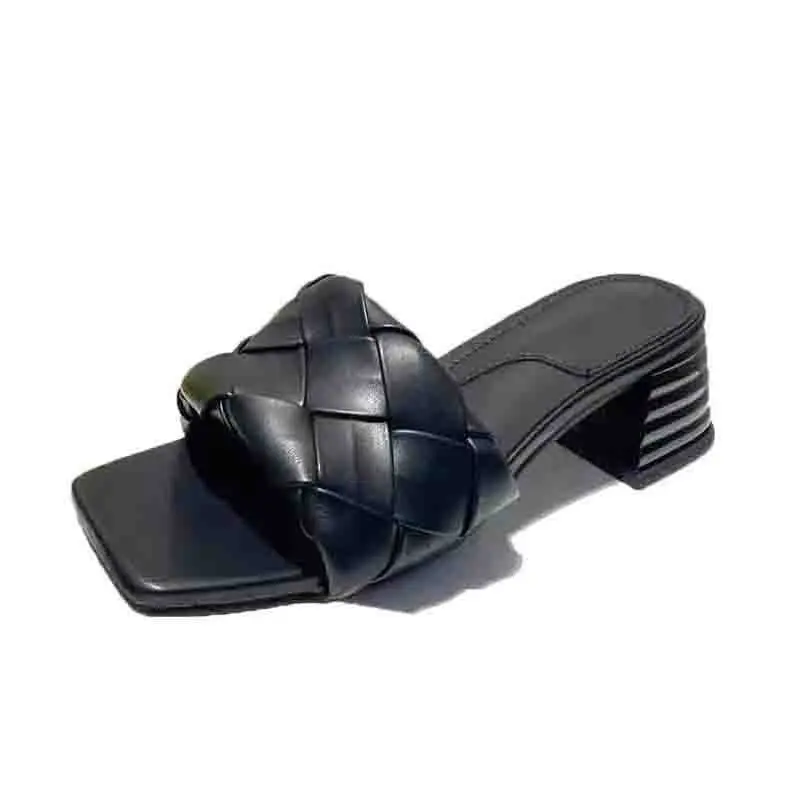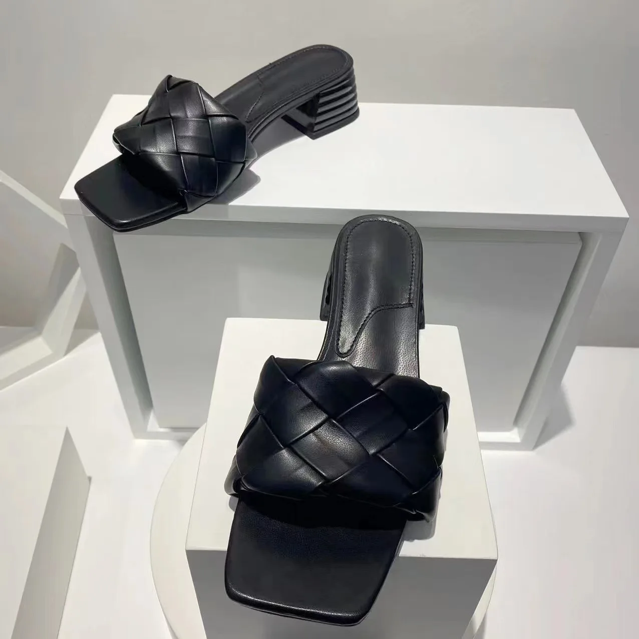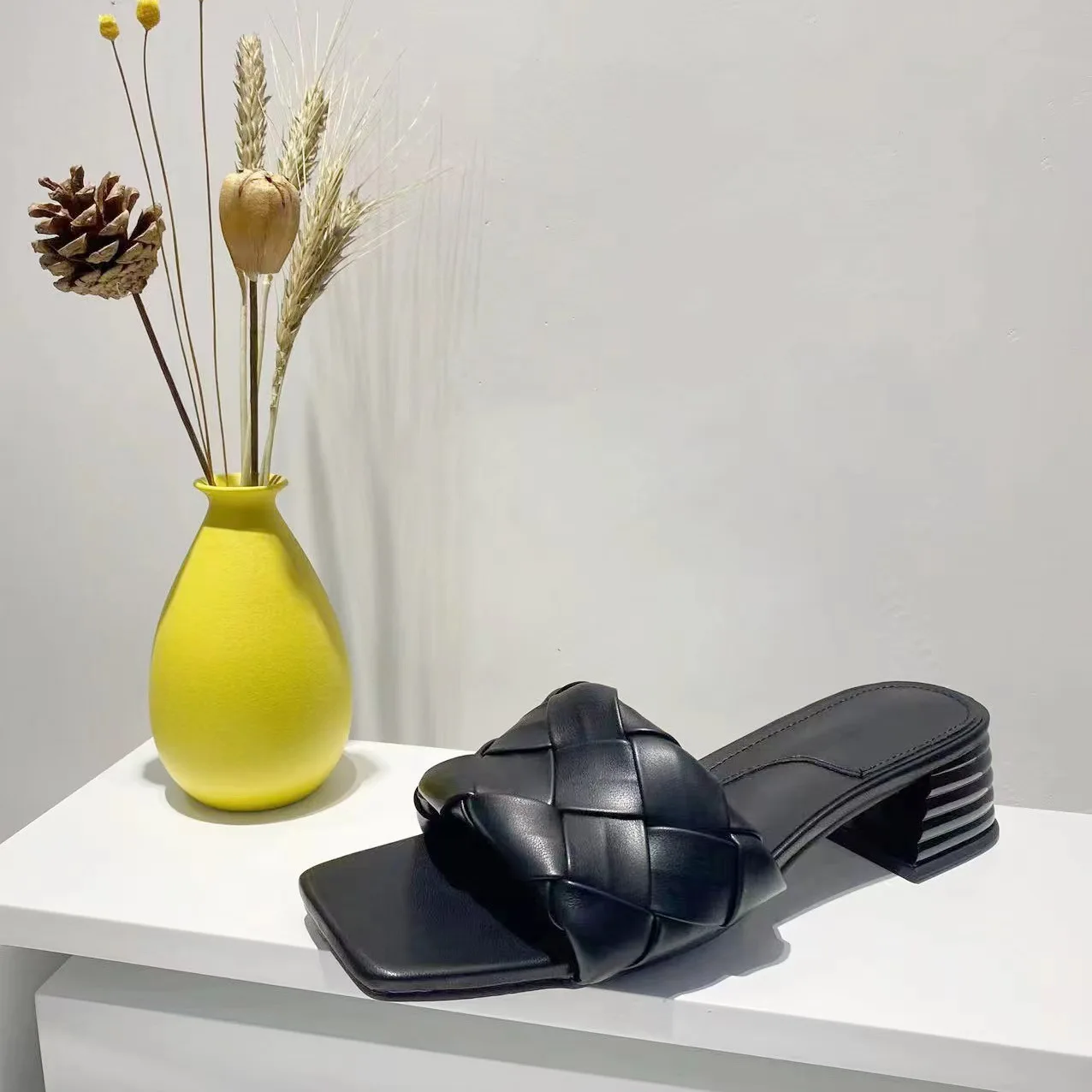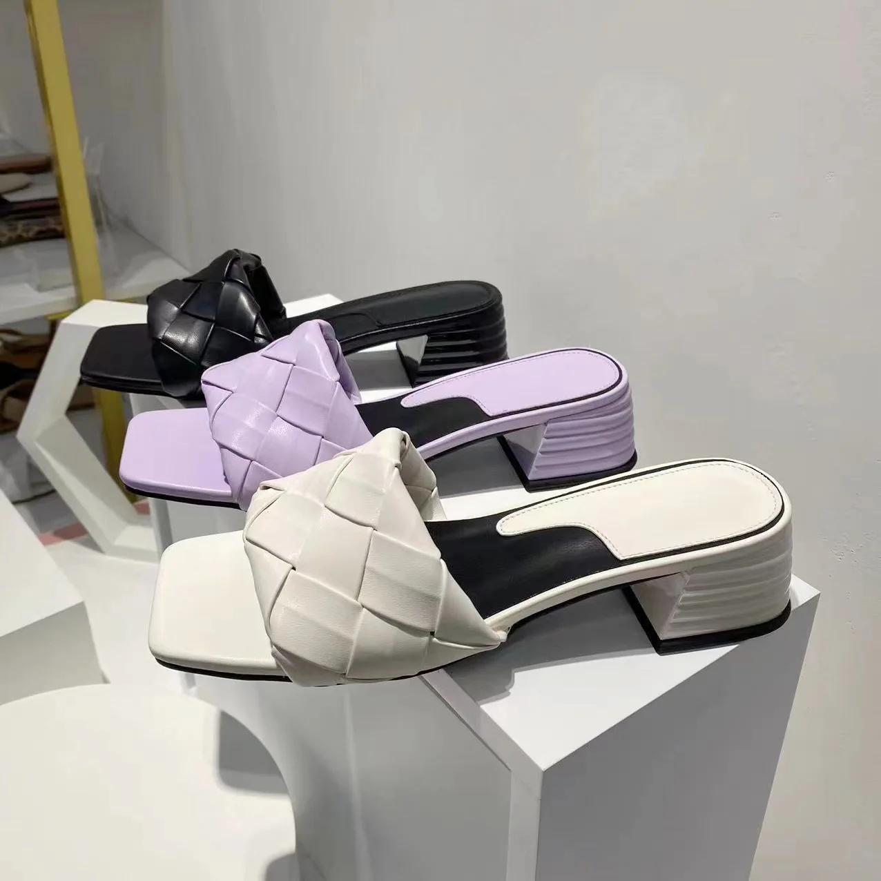 purple/white leather weaved slippers women thick med-high heels sandals mixed color outdoor slide shoes woman flip flops size 41