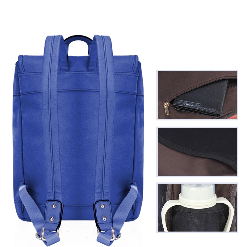 Queen Code Luxury PU Leather Mummy Bag Baby Nappy Bags Diaper Changing Backpacks Mother Maternity Baby Wetbags Organizer for Mum