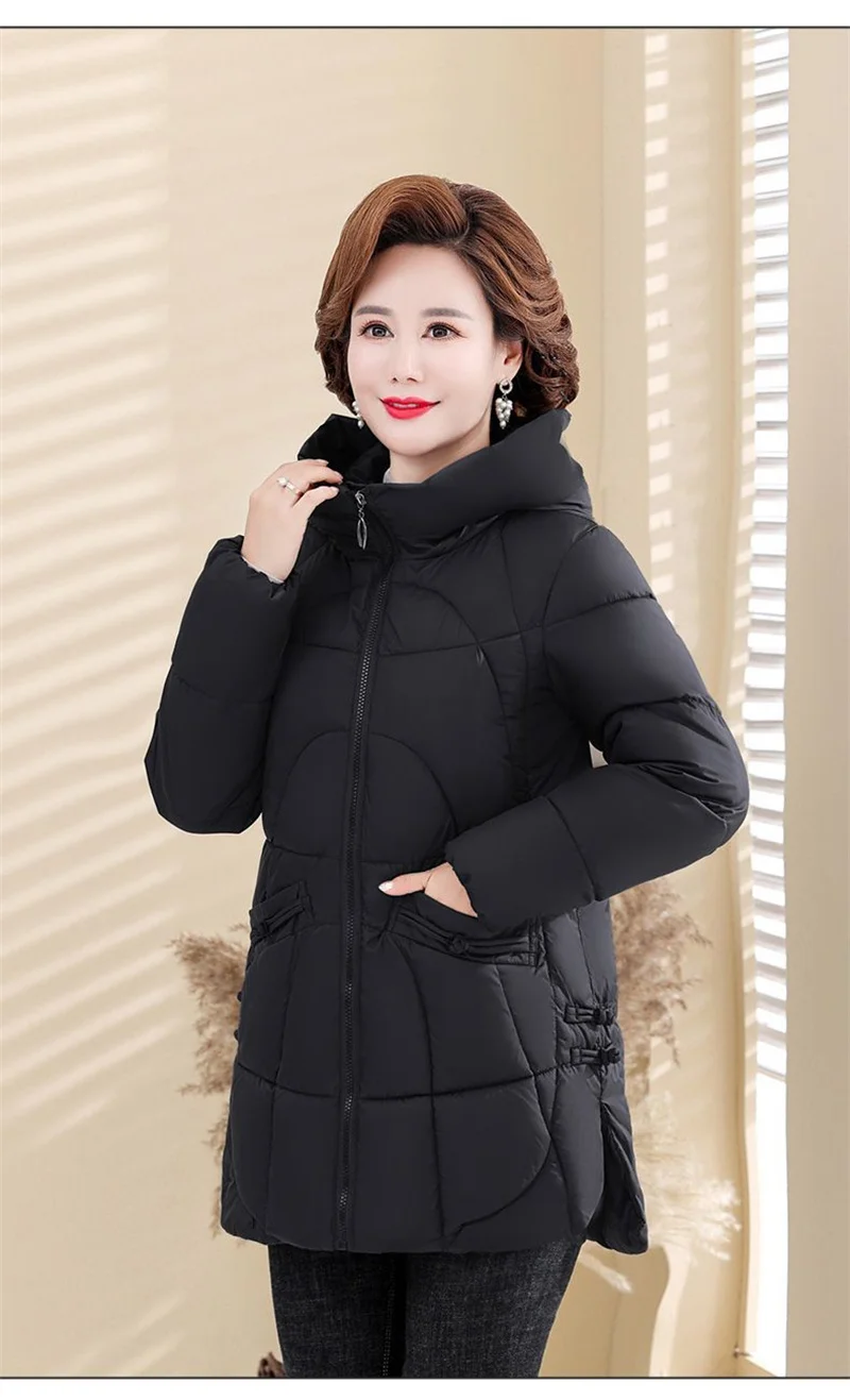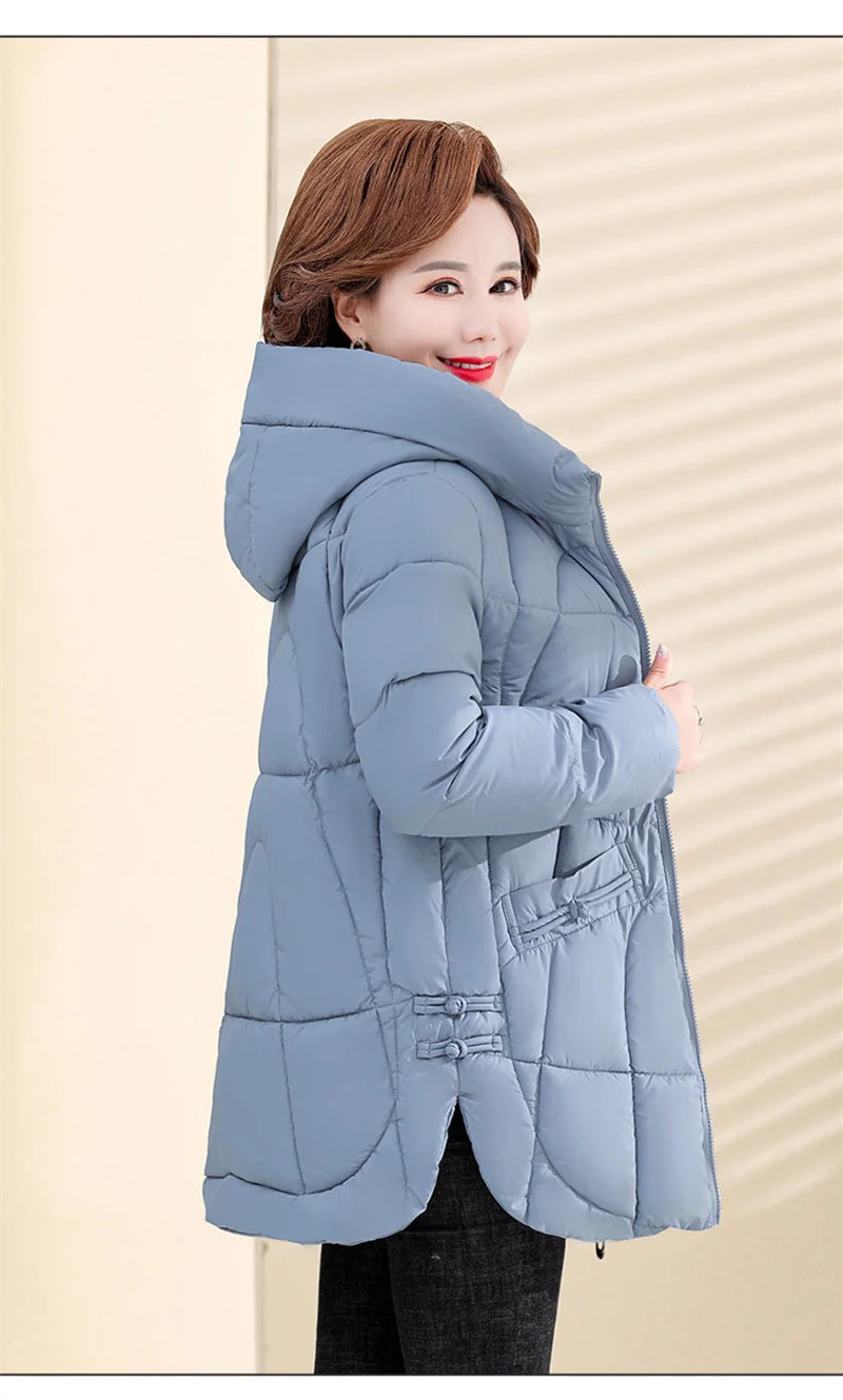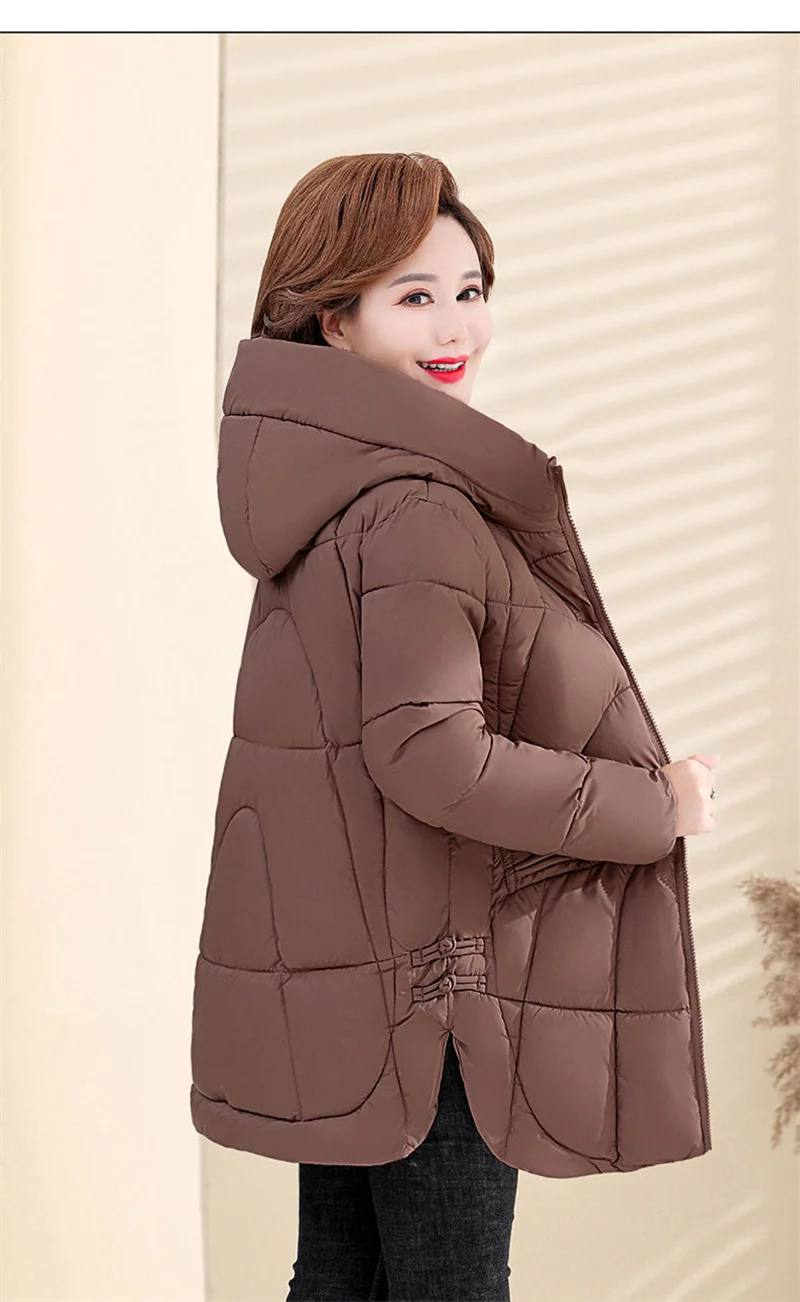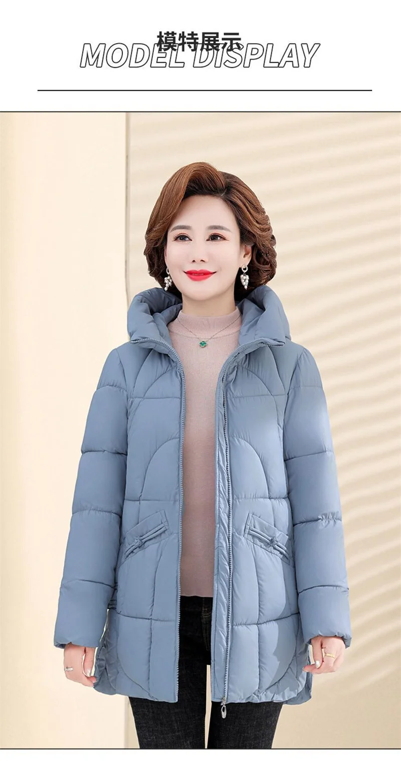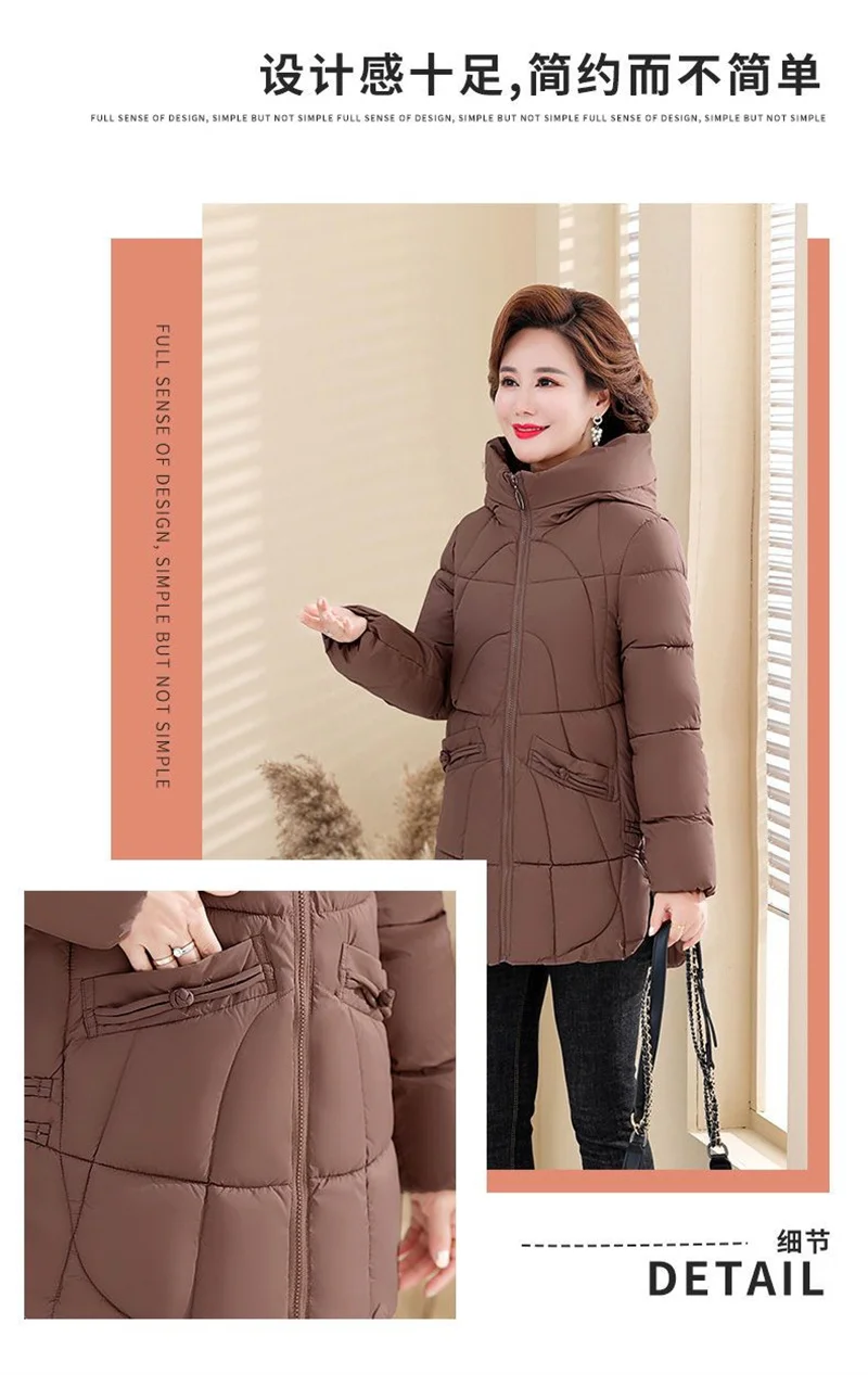 Quilted Winter Hooded Coat For Middle And Elderly 2023 Korean Edition Versatile Fashion Short Mother’s Thick Down Cotton Jacket