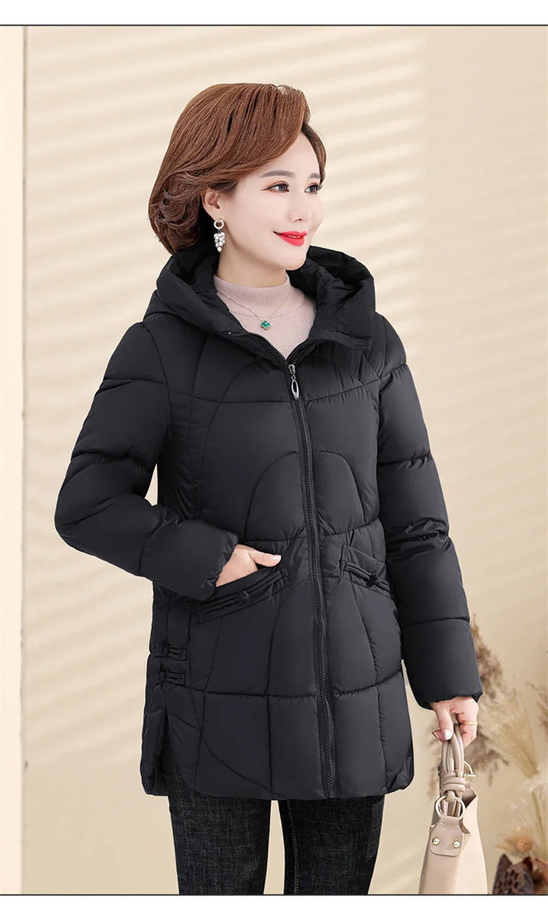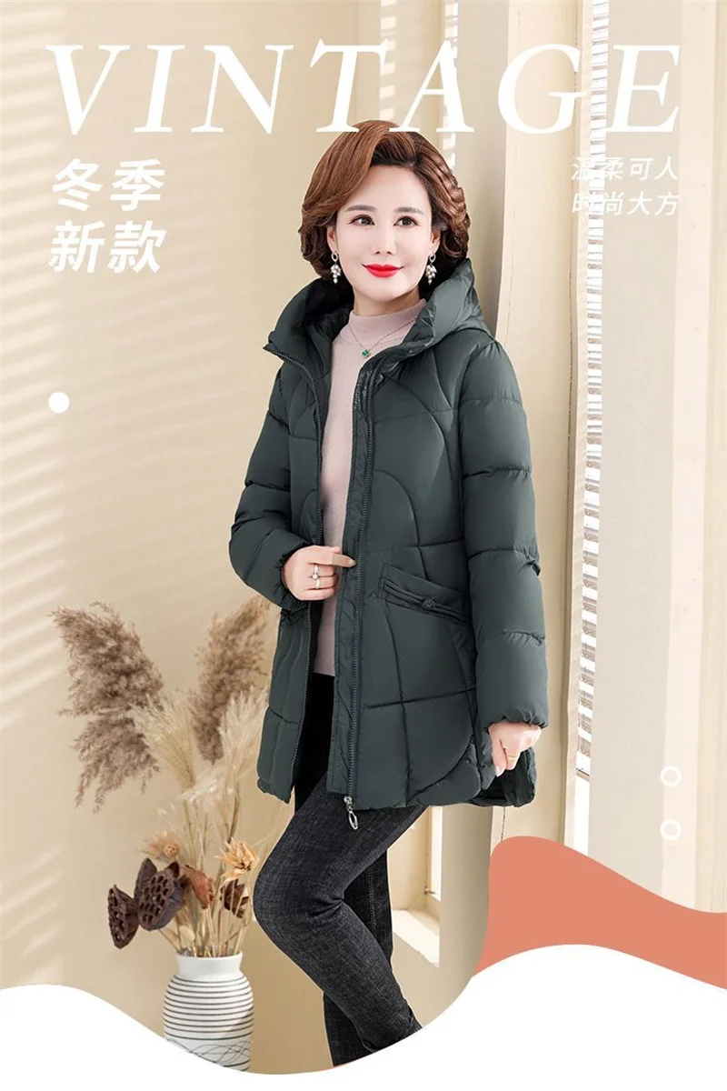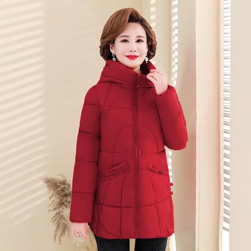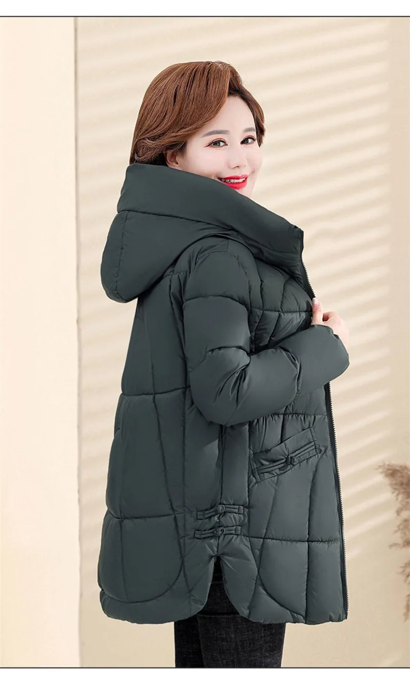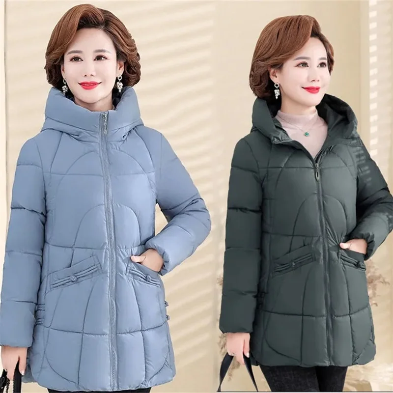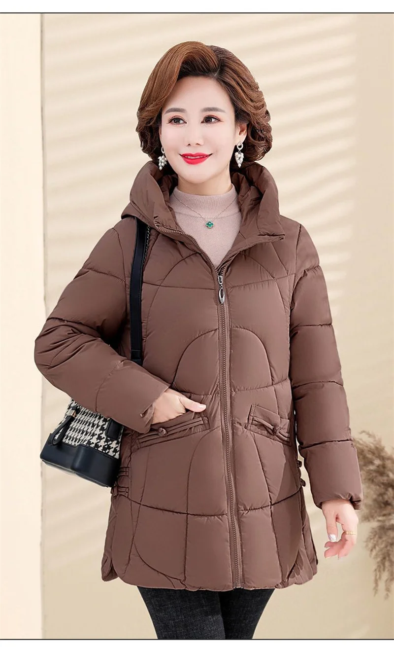Quilted Winter Hooded Coat For Middle And Elderly 2023 Korean Edition Versatile Fashion Short Mother’s Thick Down Cotton Jacket