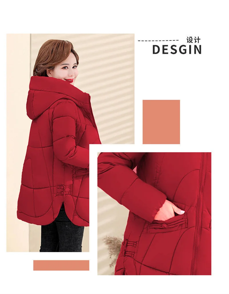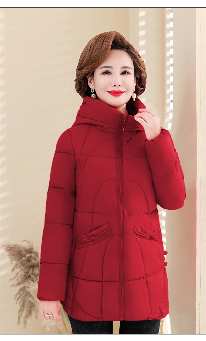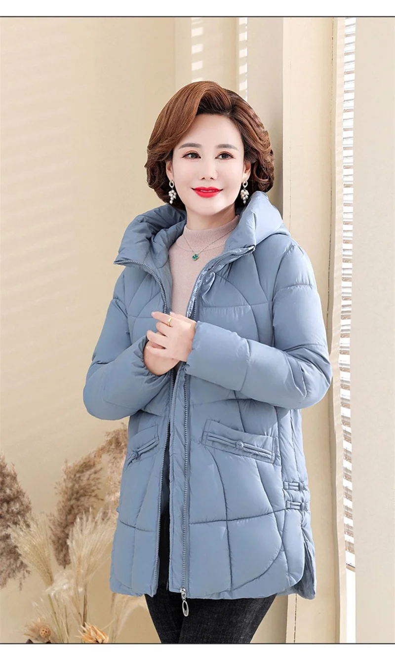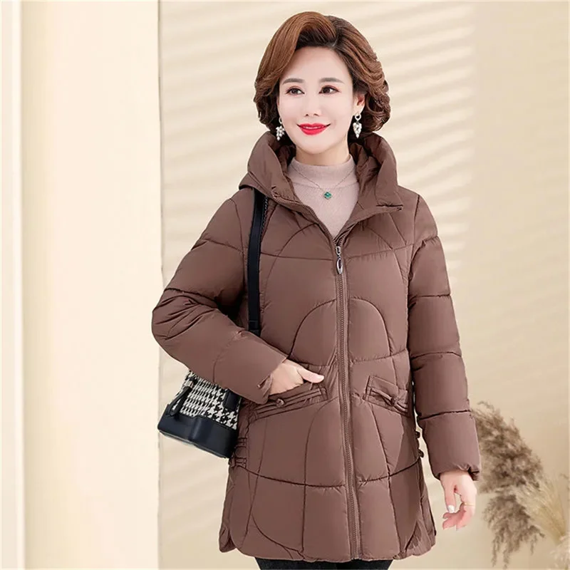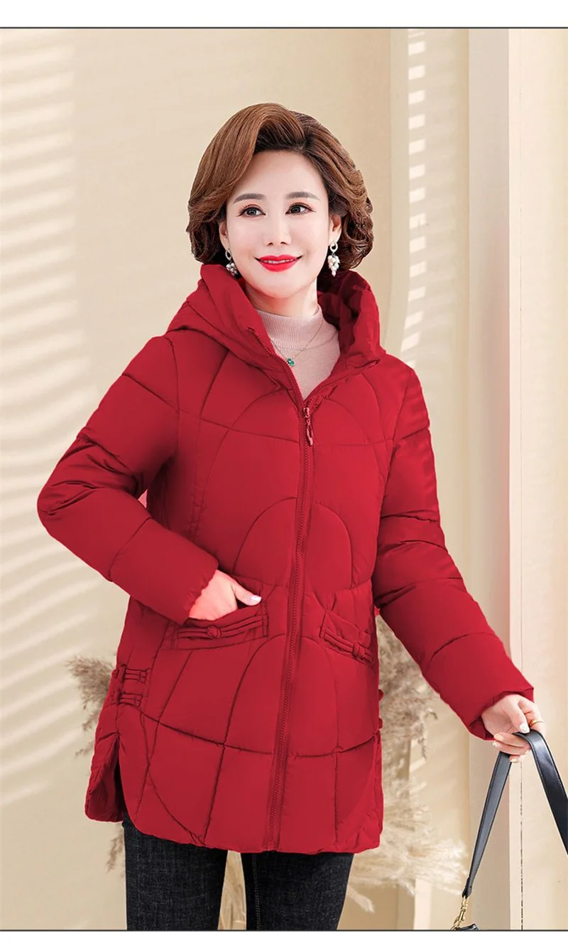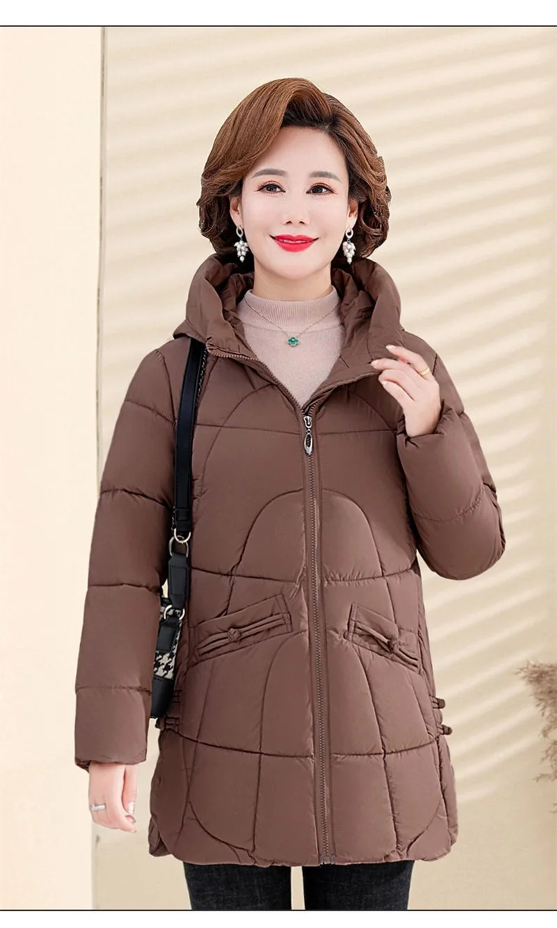 Quilted Winter Hooded Coat For Middle And Elderly 2023 Korean Edition Versatile Fashion Short Mother’s Thick Down Cotton Jacket