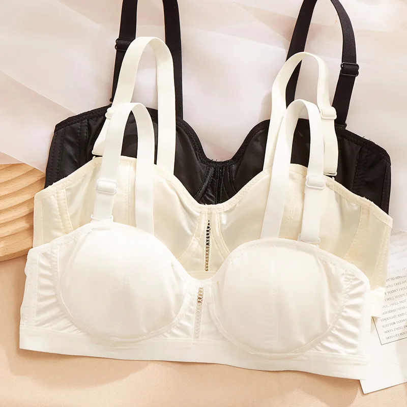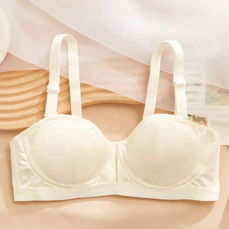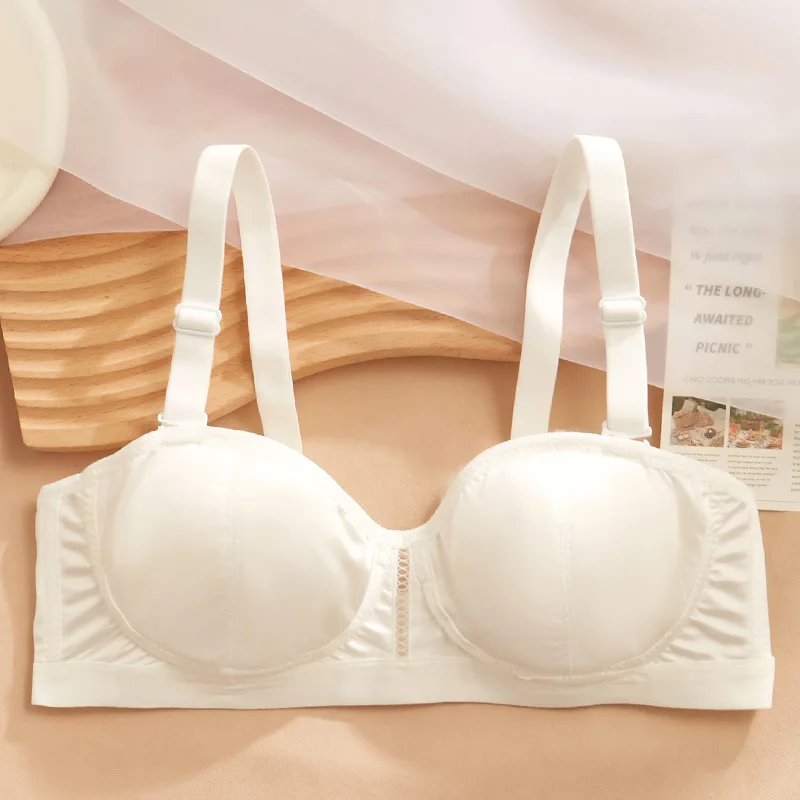 Rabbit ear cups ultra-thin underwear women without steel ring small bra comfortable breathable satin lingerie