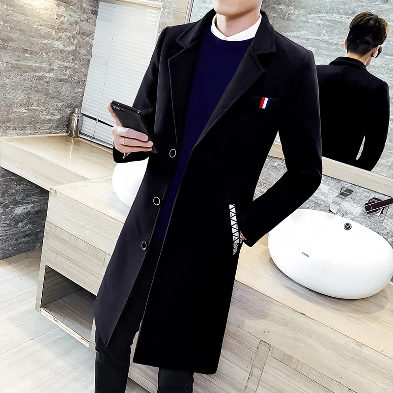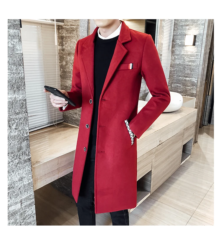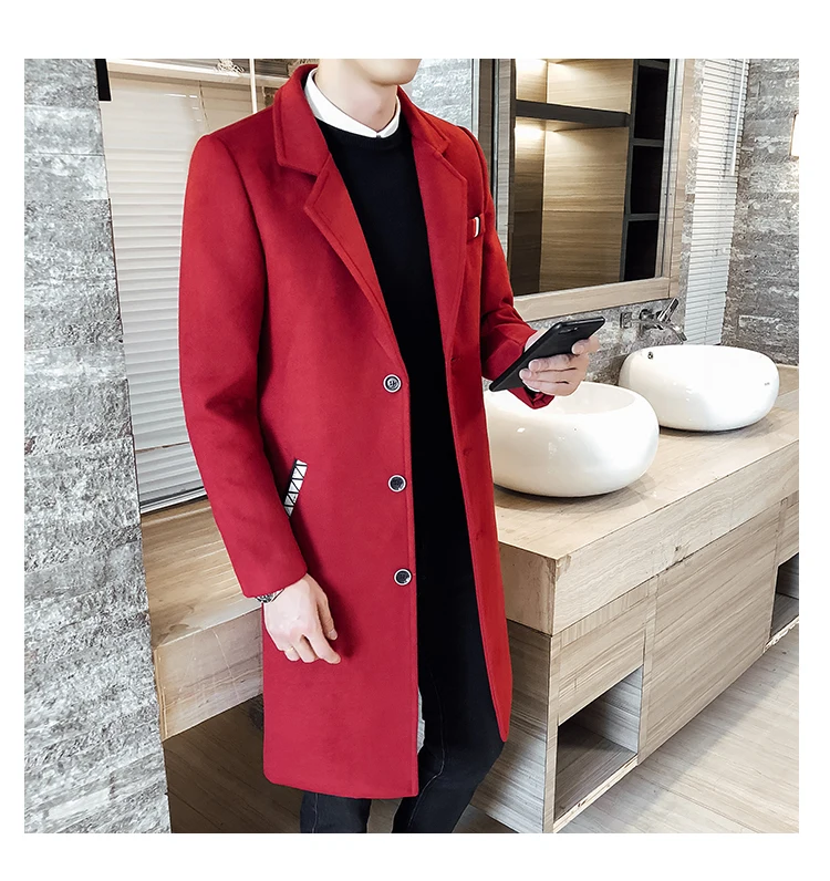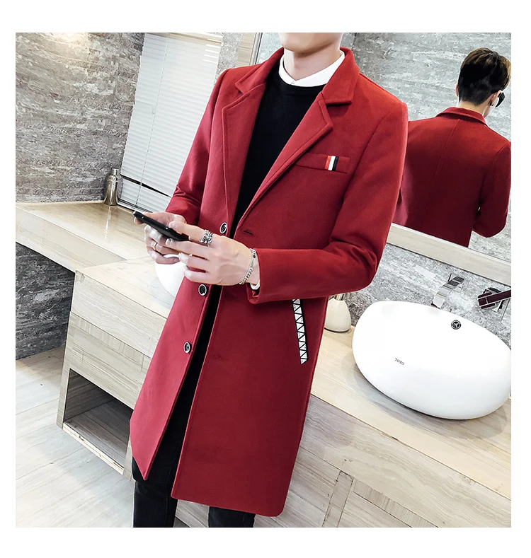 Red Coats Man Vintage Long Trench Coats For Mens Blue British Style Long Jacket Mens Coats Elegant Gentleman Grey Khaki Black
