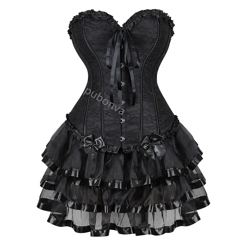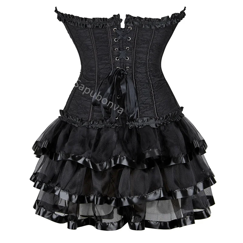 Sapubonva overbust corset dresses plus size burlesque gothic tutu skrits corset bustier with straps zip cosplay costume party