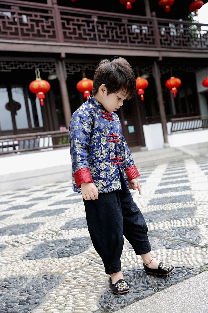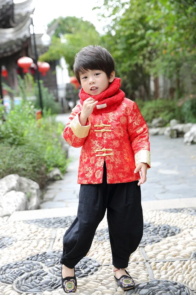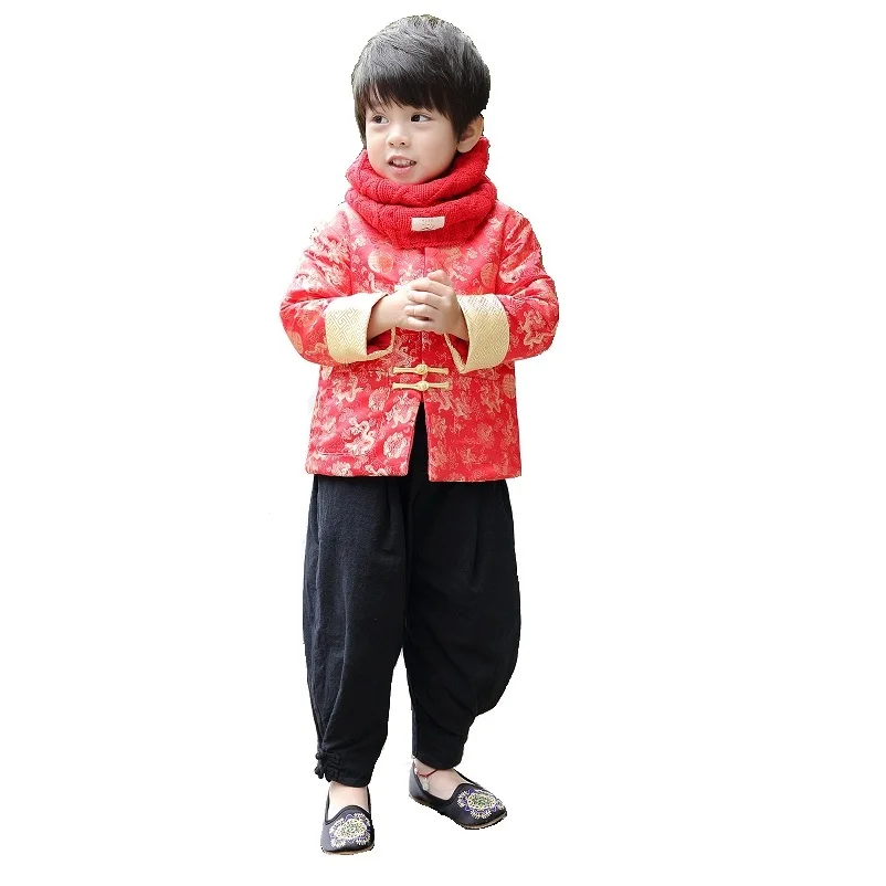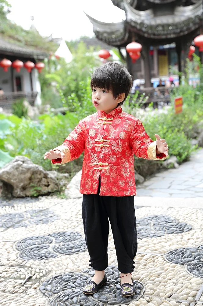 Red Dragon Children Coat Chinese Spring Festival Costumes Boy Jackets Clothes Outfits Kids Outerwear Quilted Baby Boys Garments