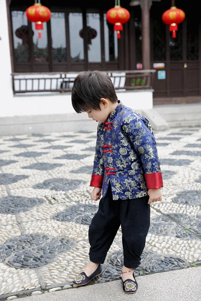 Hooyi Red Dragon Children Coat Chinese Spring Festival Costumes Navy Boy Jackets Clothes Outfits Kids Outerwear Quilted Baby Boys Garments Happy New Year