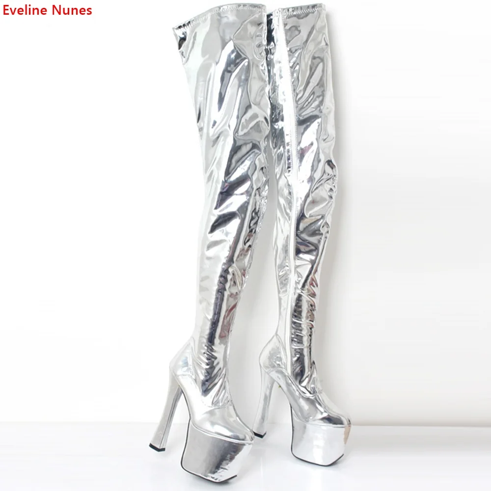 Red Queen Platform Boots New Arrival Women’s Over The Knee Round Toe Chunky Heel Sexy Elasticity Slim Fashion Plus Size Shoe