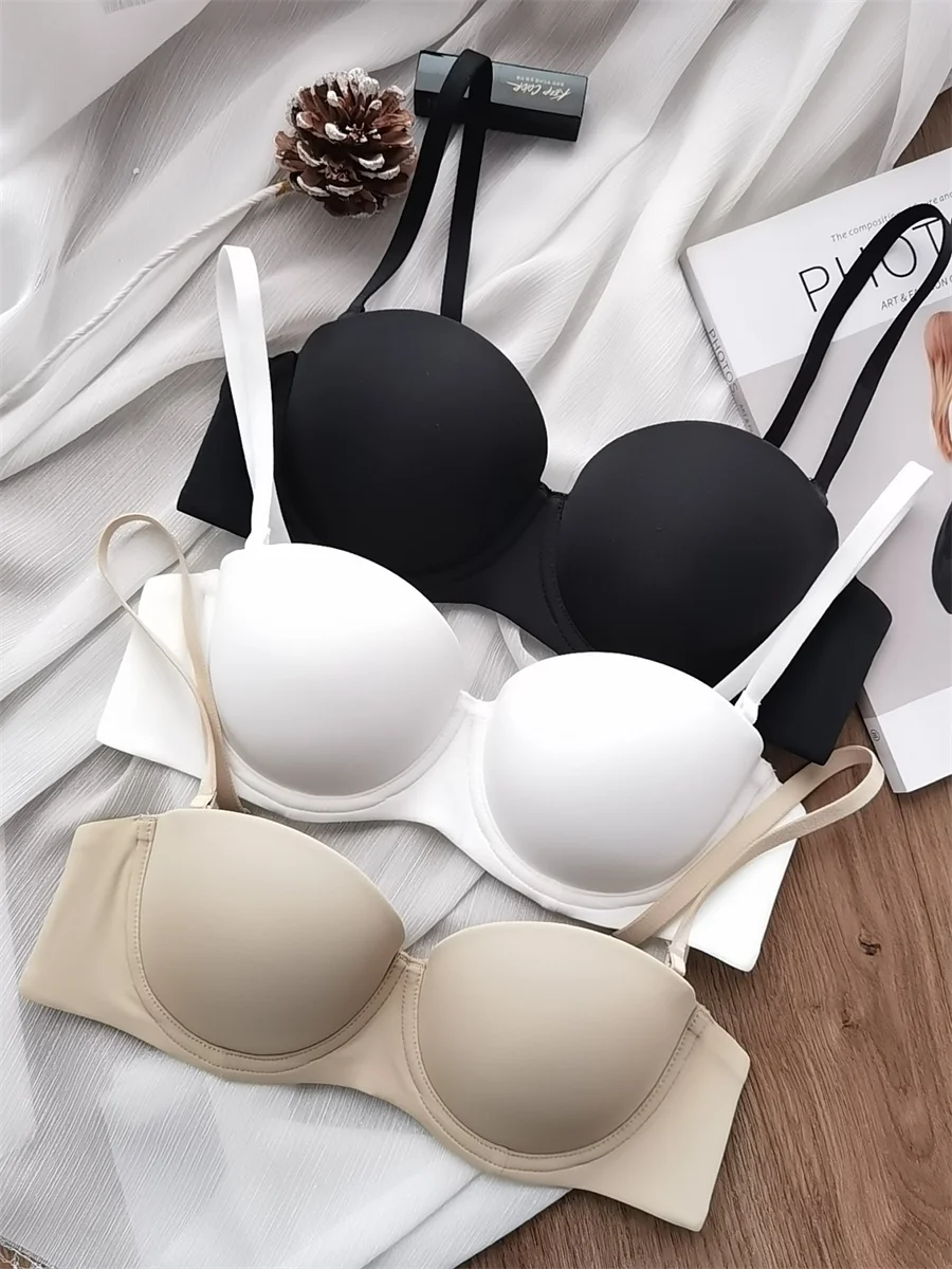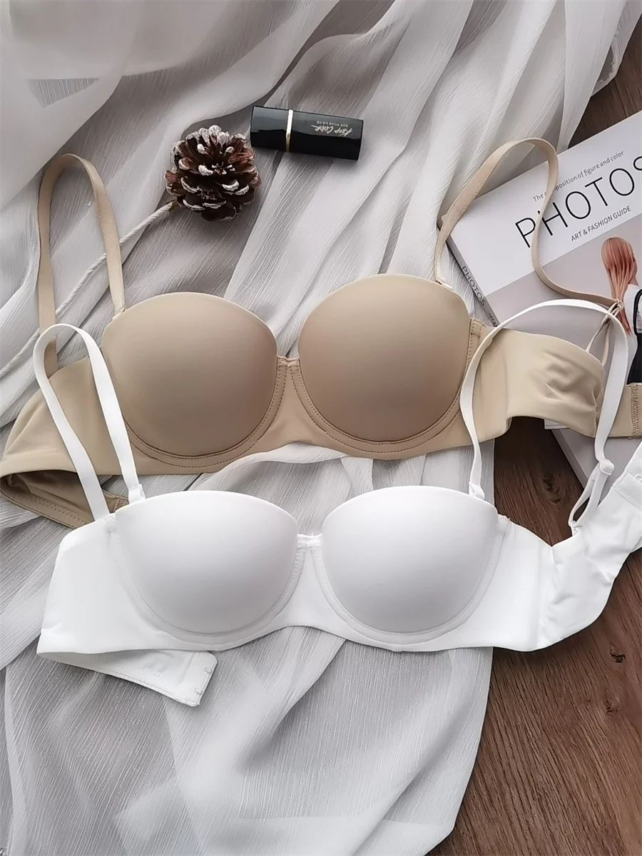 Removable straps light surface gathered underwear female steel ring bra half cup sexy bra large size lingerie