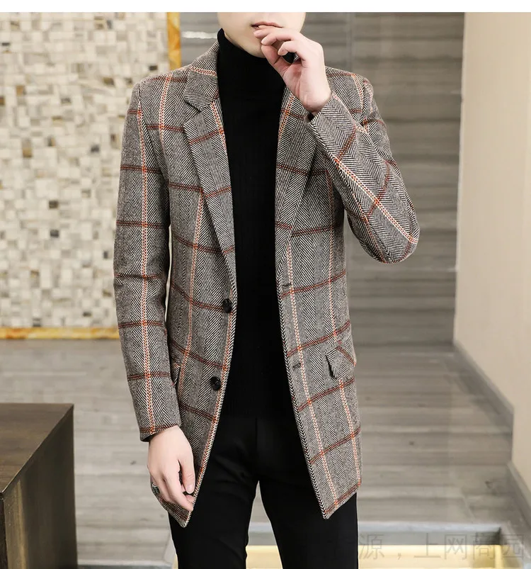 Retro Check England Gentleman Steampunk Trench Coats For Winter Long Jackets Slim Fit Plaid Stylish Overcoats 2022 Cloak For Men