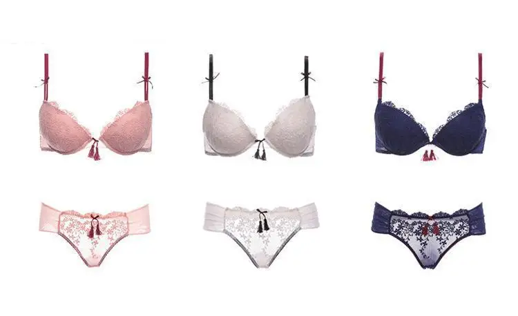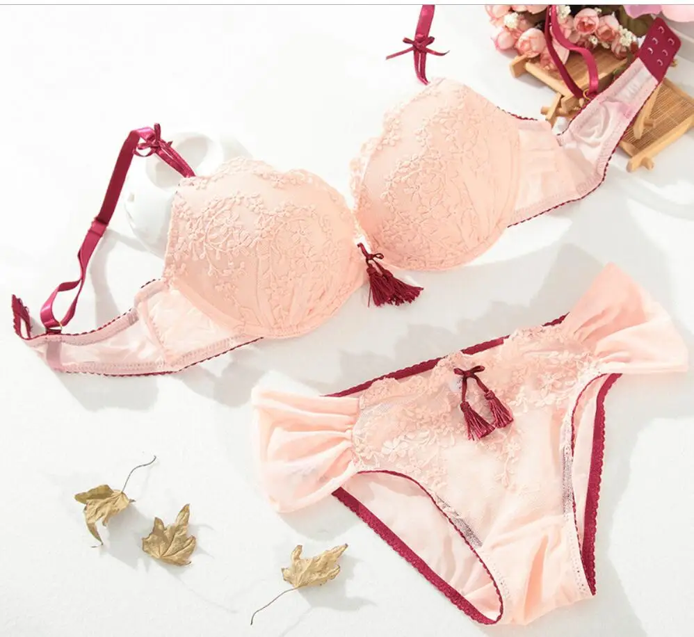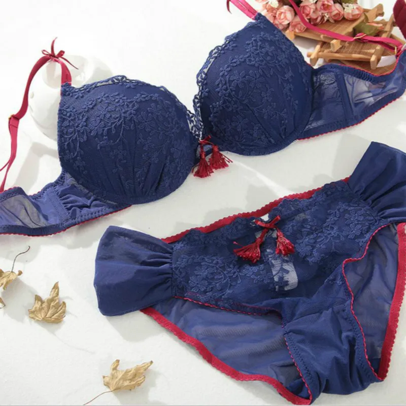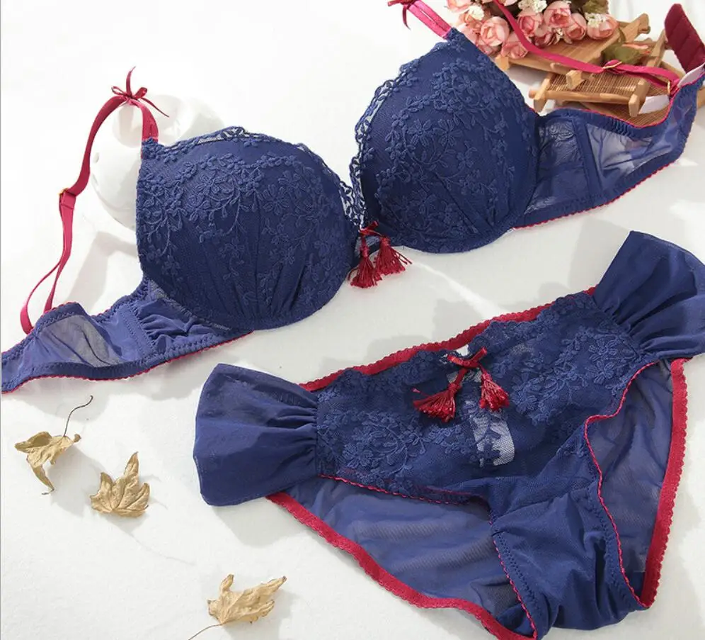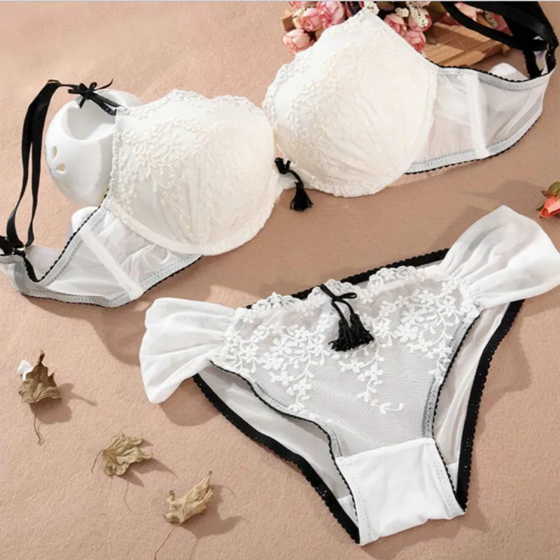 Elegant Embroidery Floral lace underwear bra set with Panties Summer