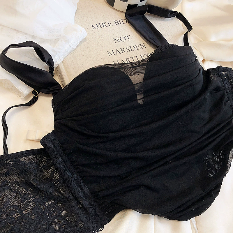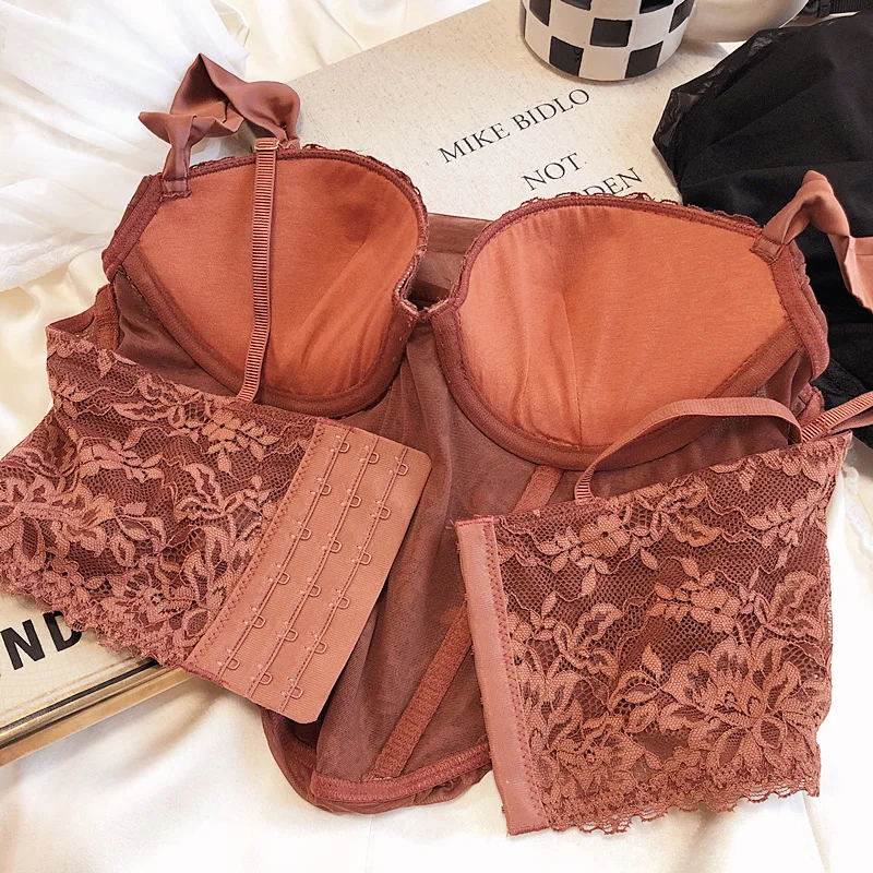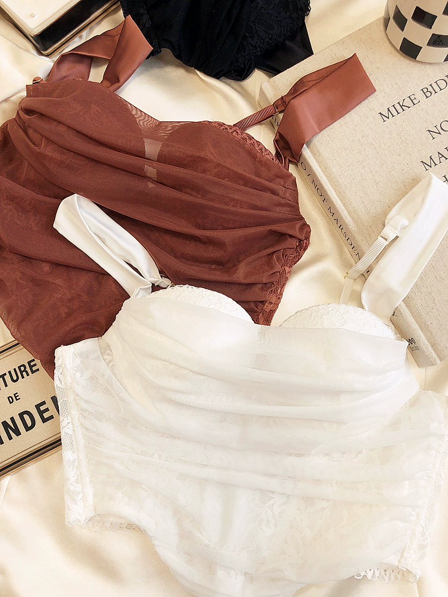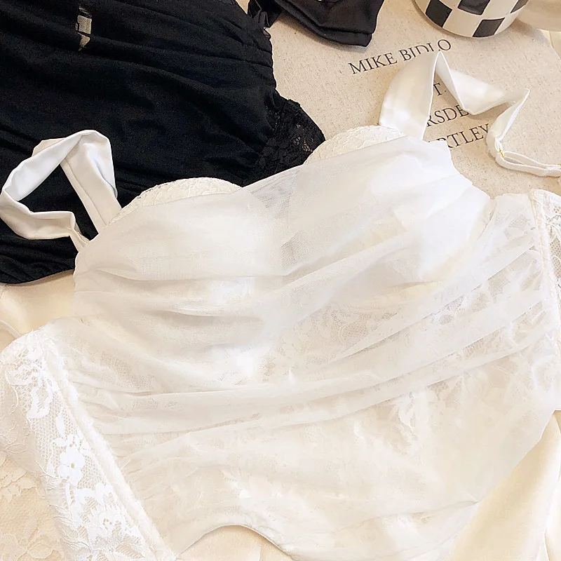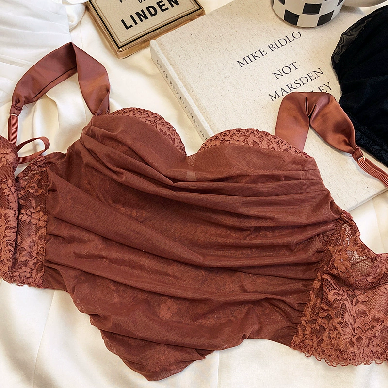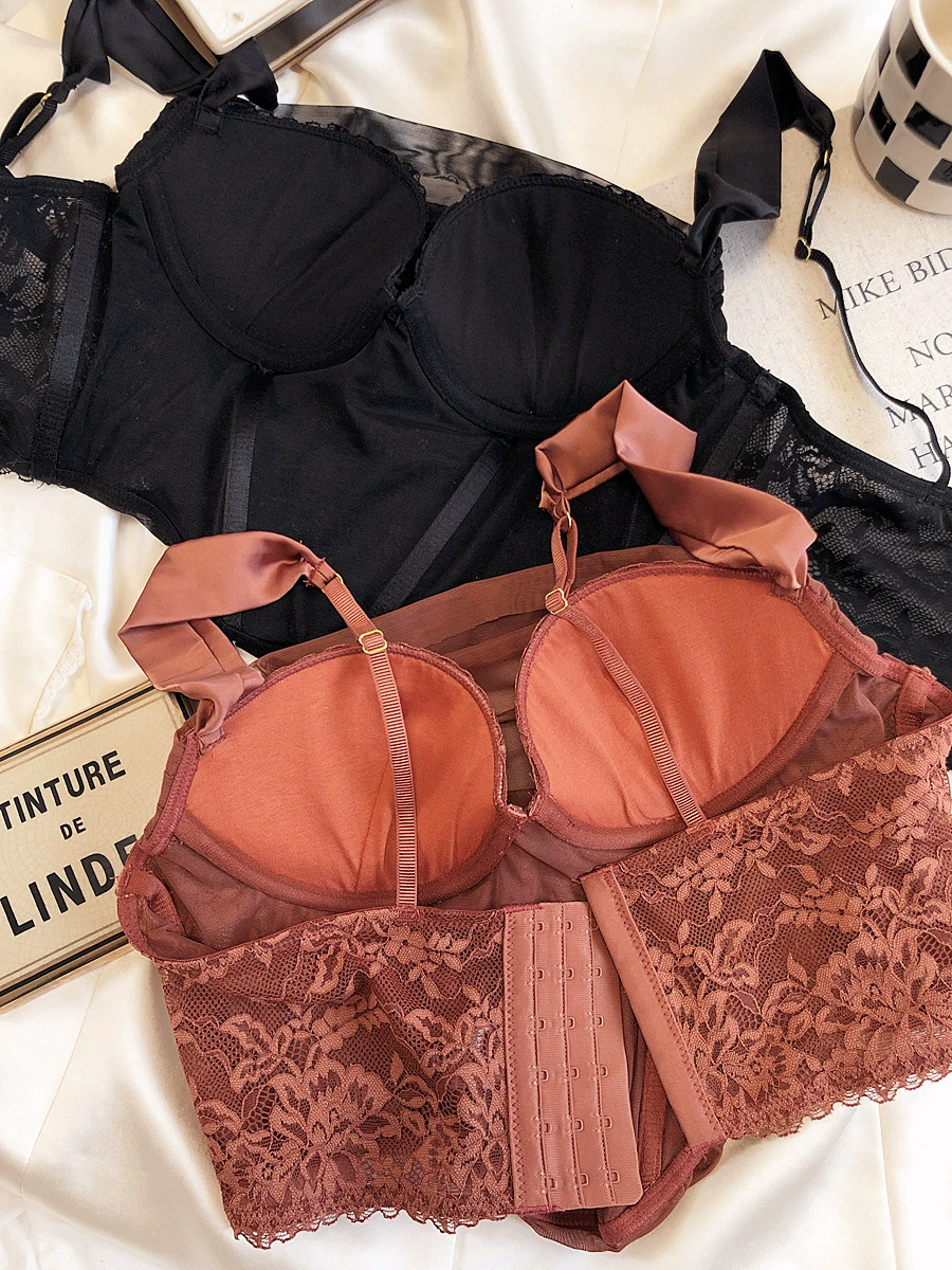 Retro sexy lace mesh vest type bra bone clothing to collect the waist to show large soft steel ring outside wear gathered underw