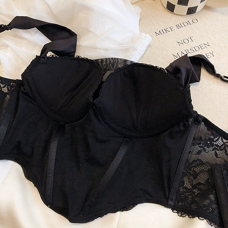 Retro sexy lace mesh vest type bra bone clothing to collect the waist to show large soft steel ring outside wear gathered underwear
