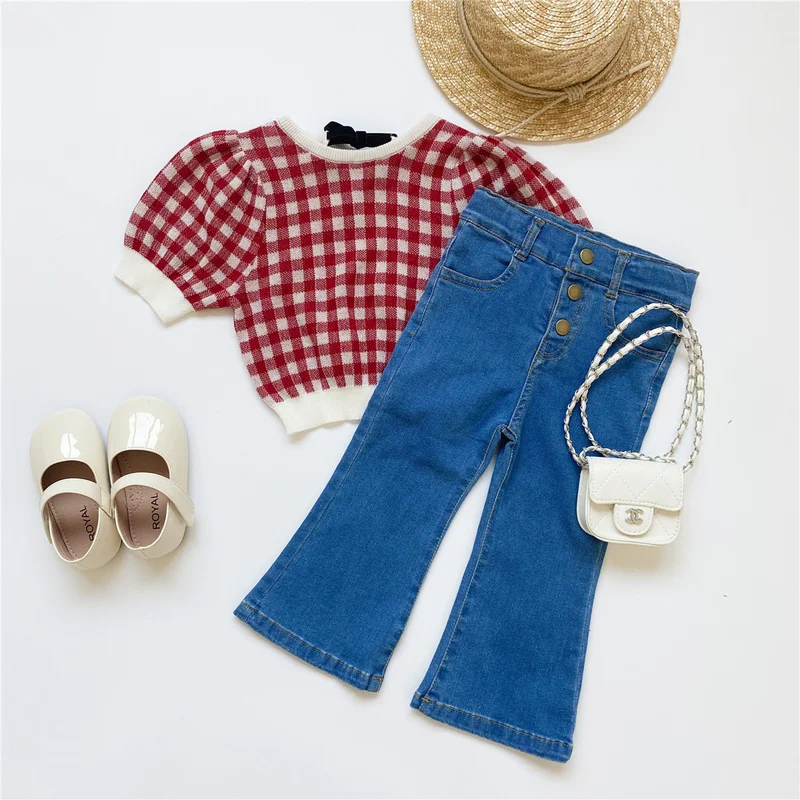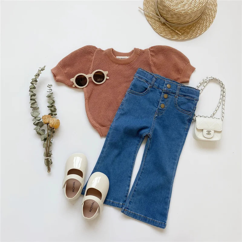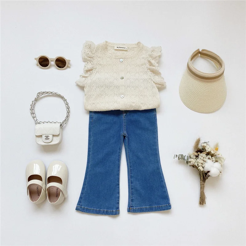 Retro Soft Jeans Flared Pants Girls Joker Spring and Autumn Pants Bell Bottom Jeans Baby Girl Jeans Toddler Girl Jeans