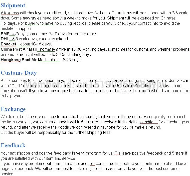 • If you did not receive the product within the guaranteed time( 45 days not including 2-5 day processing) you can request a refund or a reshipment.
