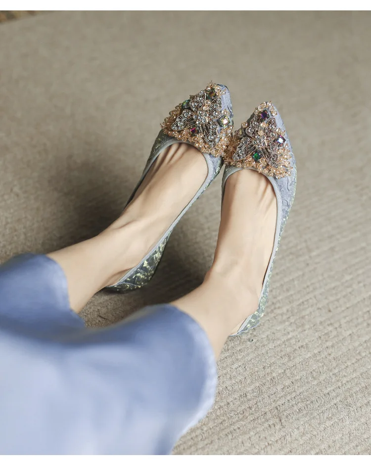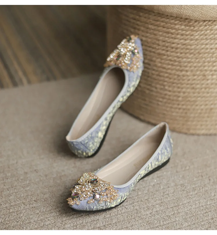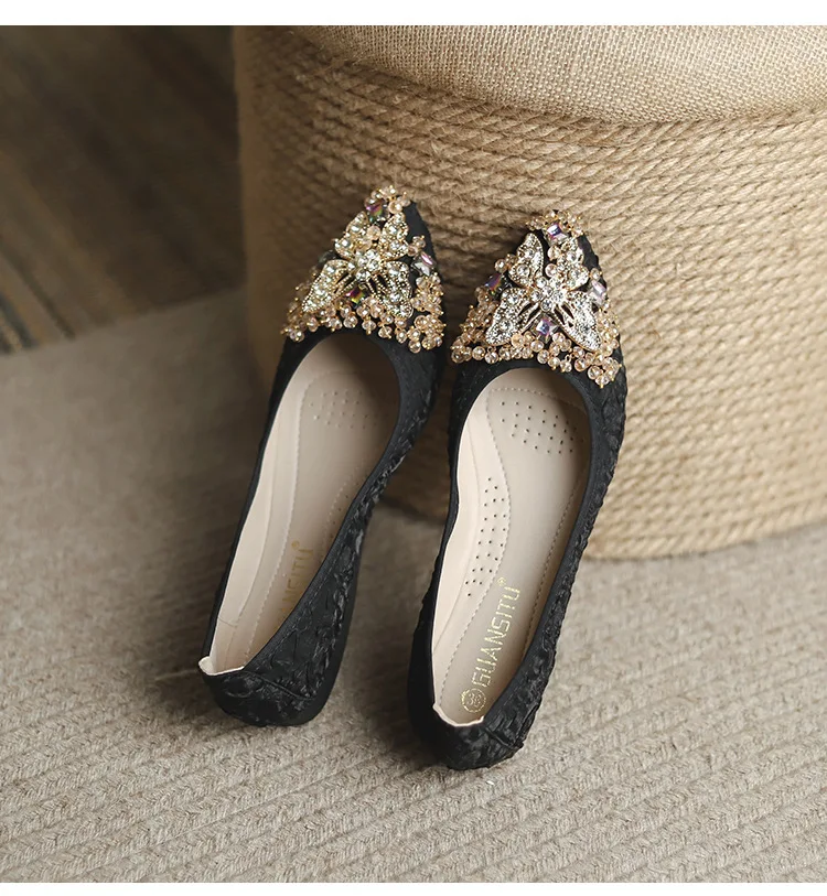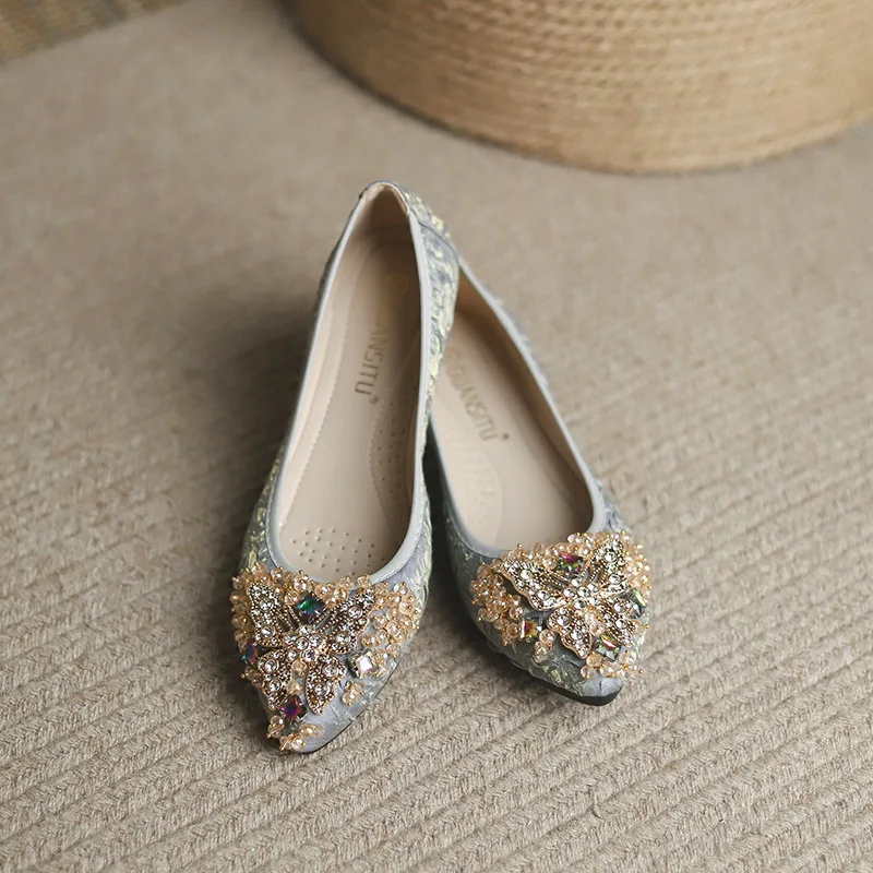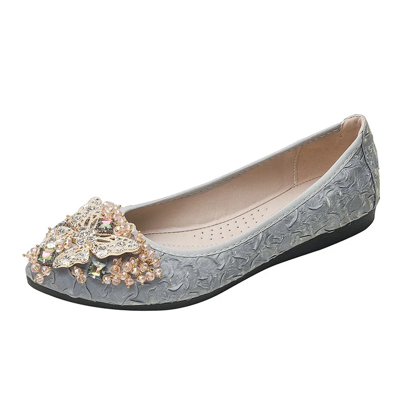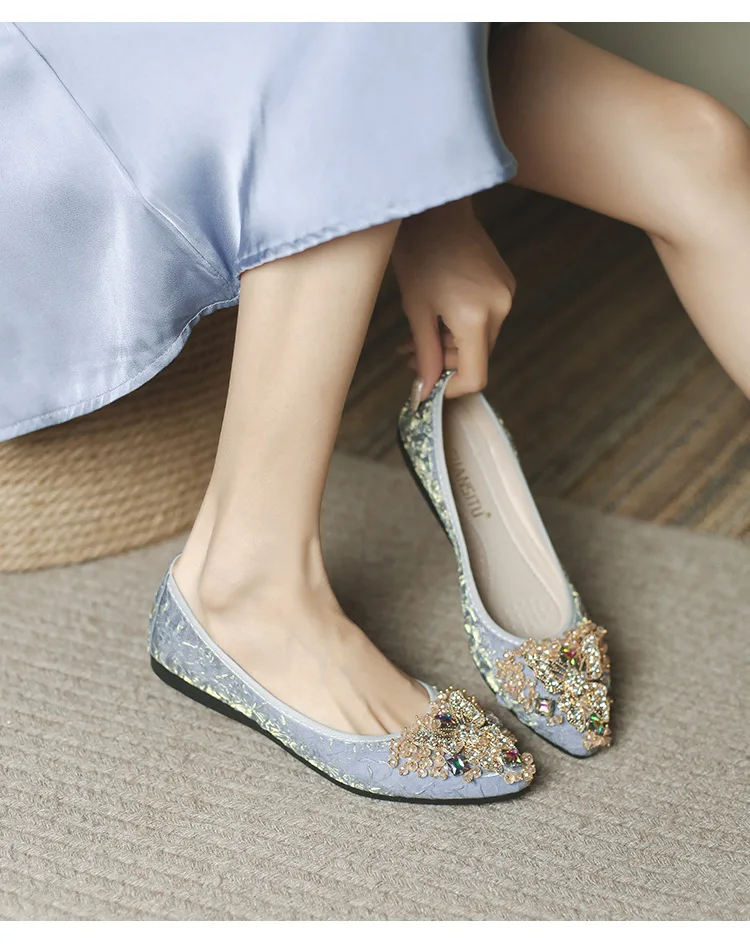 rhinestone butterfly ballet flats shoes woman glitter silk cloth moccasins ladies colorful crystal beading loafers plus size 43