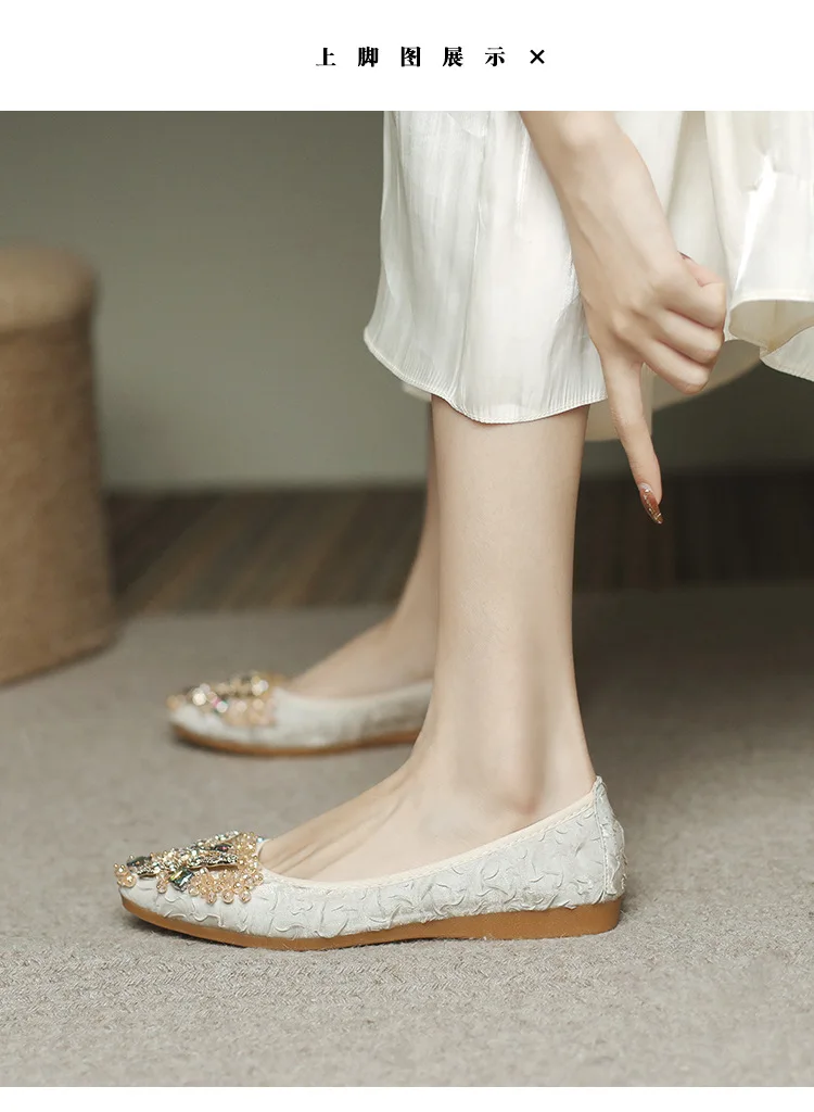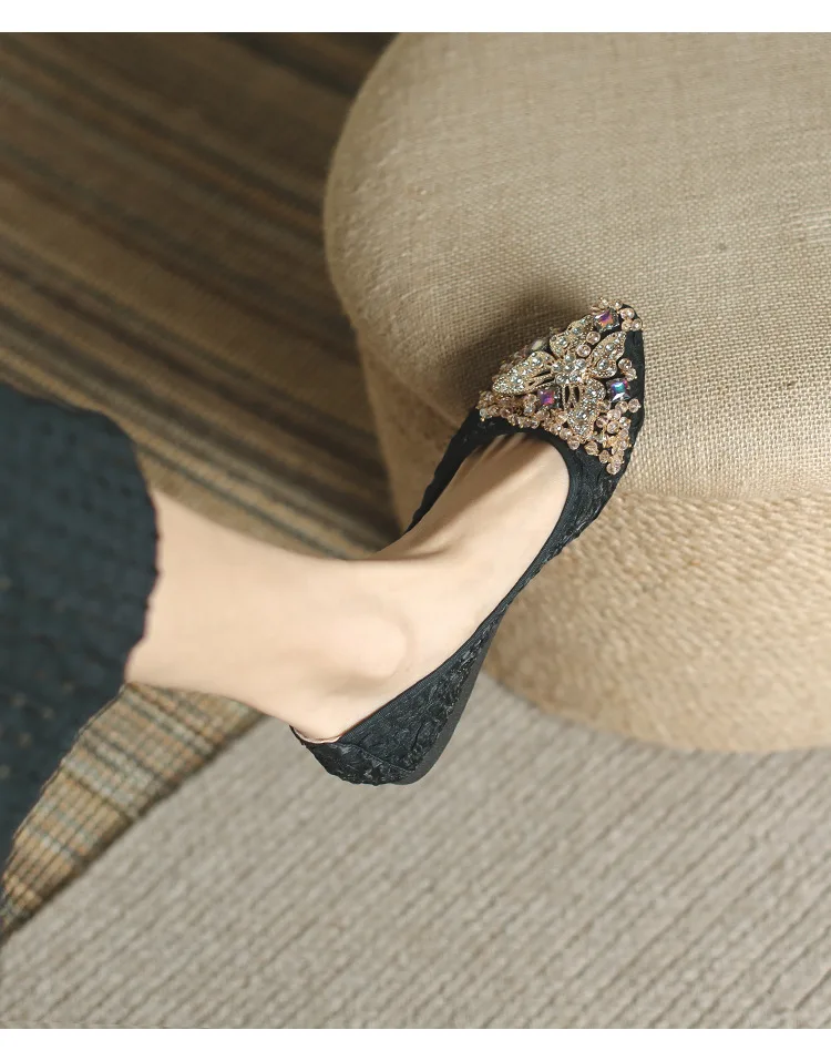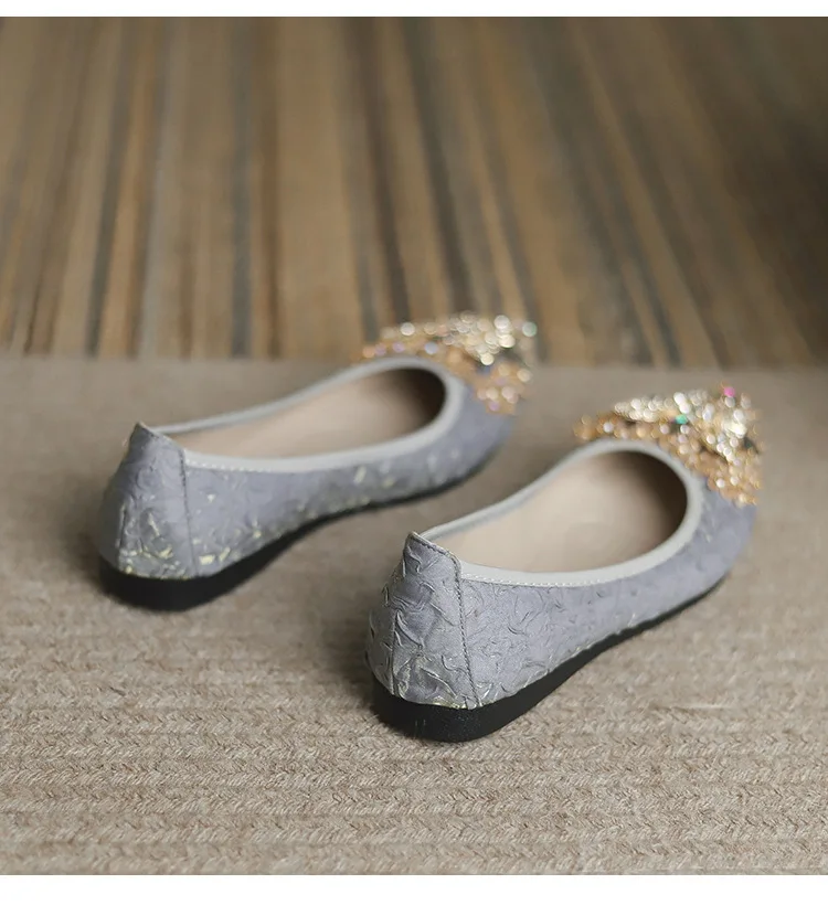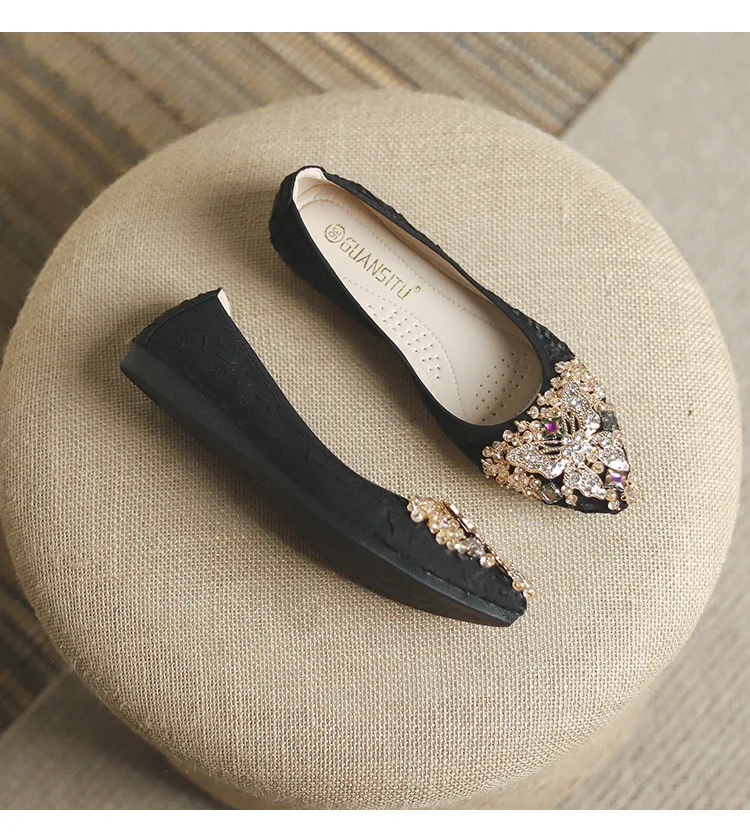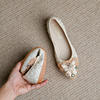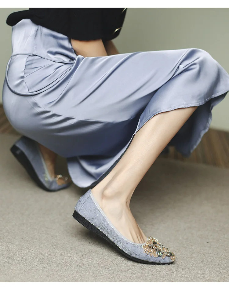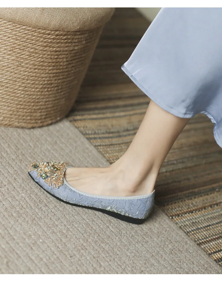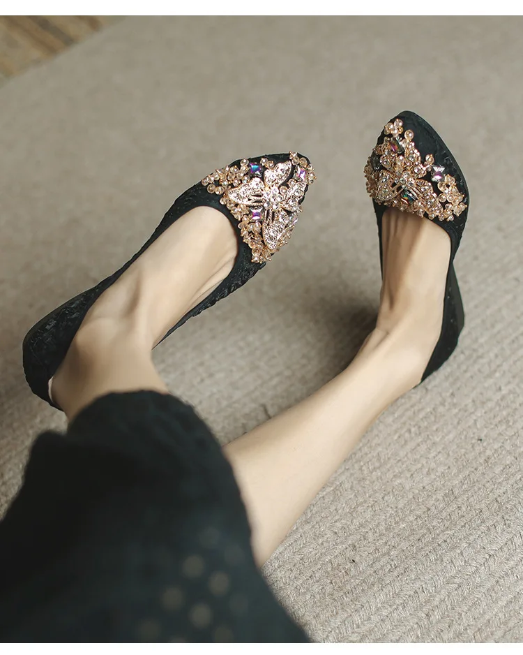 rhinestone butterfly ballet flats shoes woman glitter silk cloth moccasins ladies colorful crystal beading loafers plus size 43