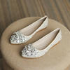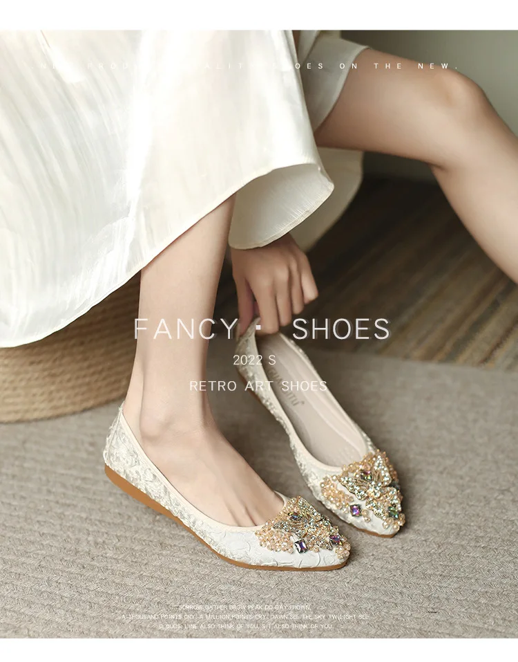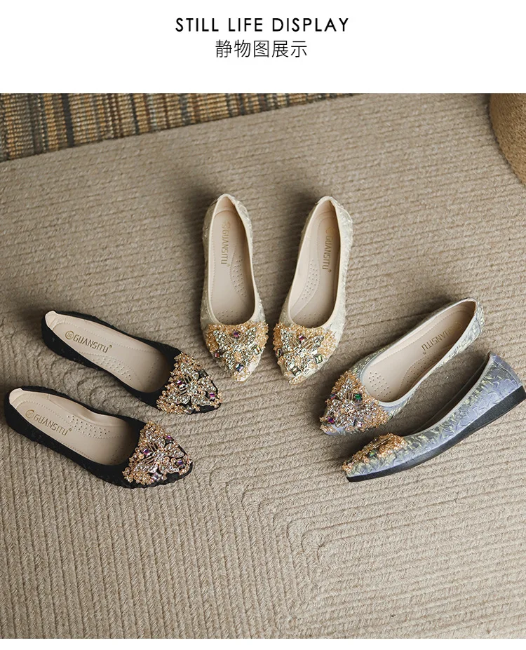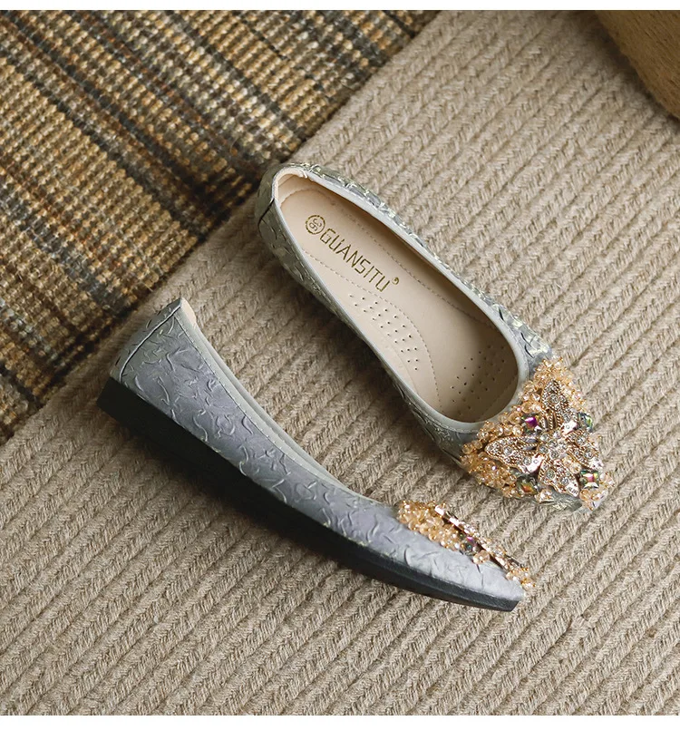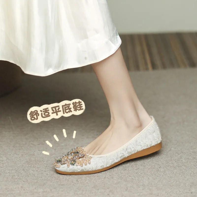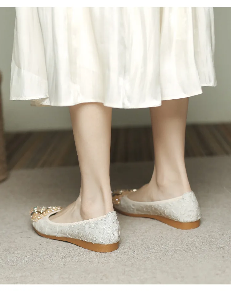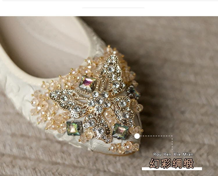 rhinestone butterfly ballet flats shoes woman glitter silk cloth moccasins ladies colorful crystal beading loafers plus size 43