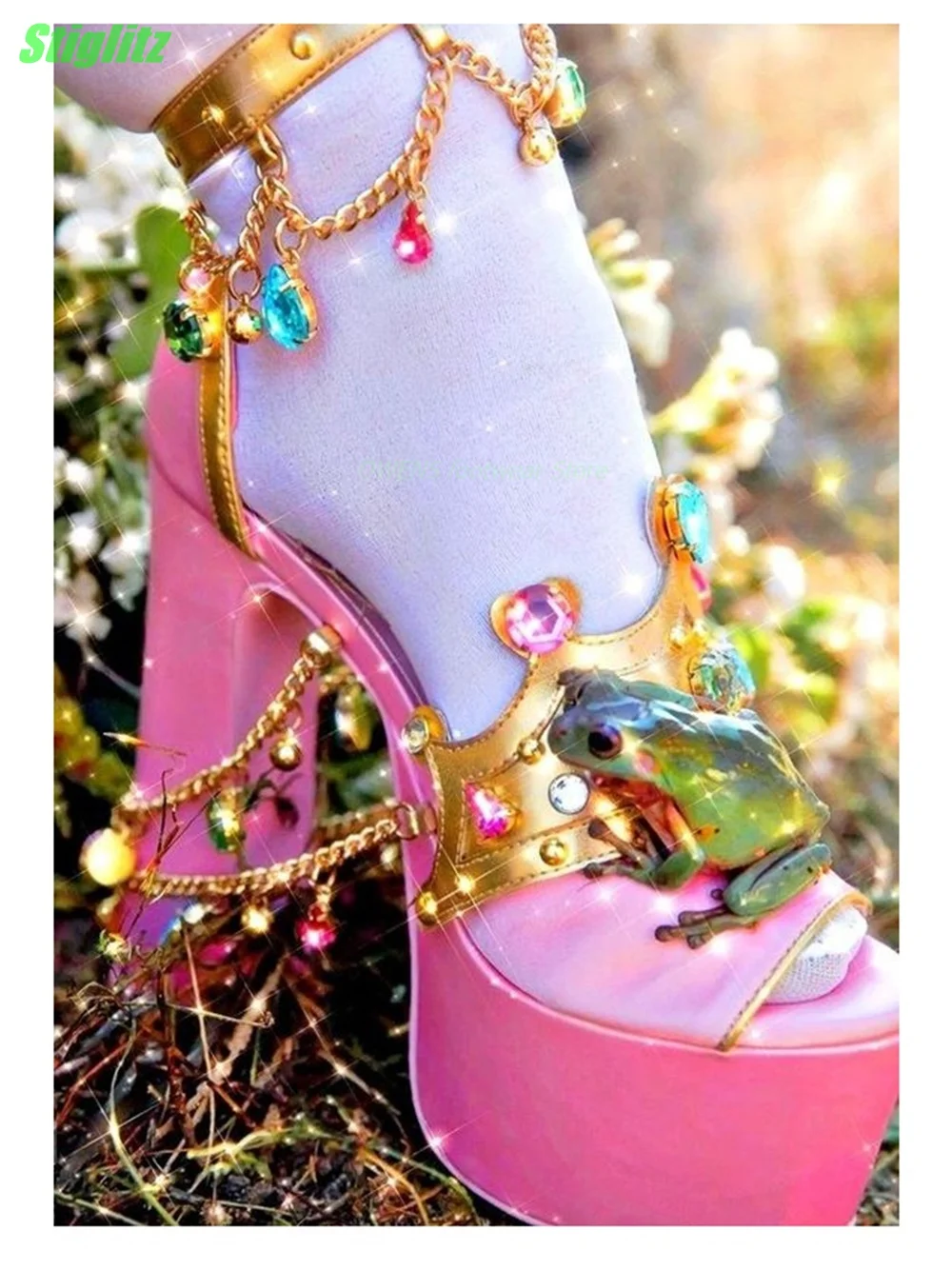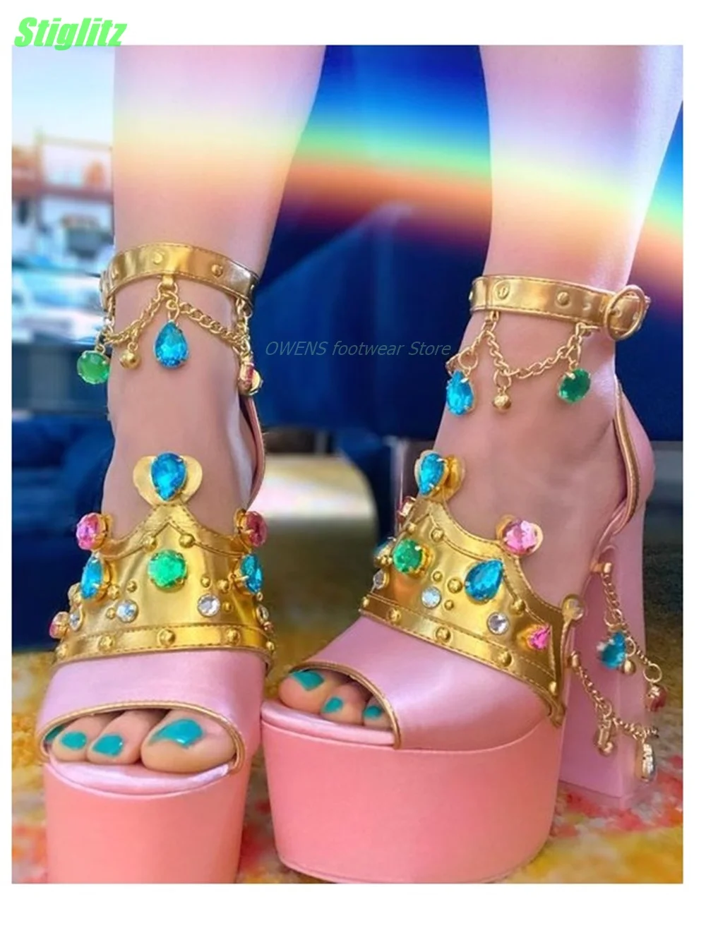 Feature:Rhinestone Plantform Luxury Sandals