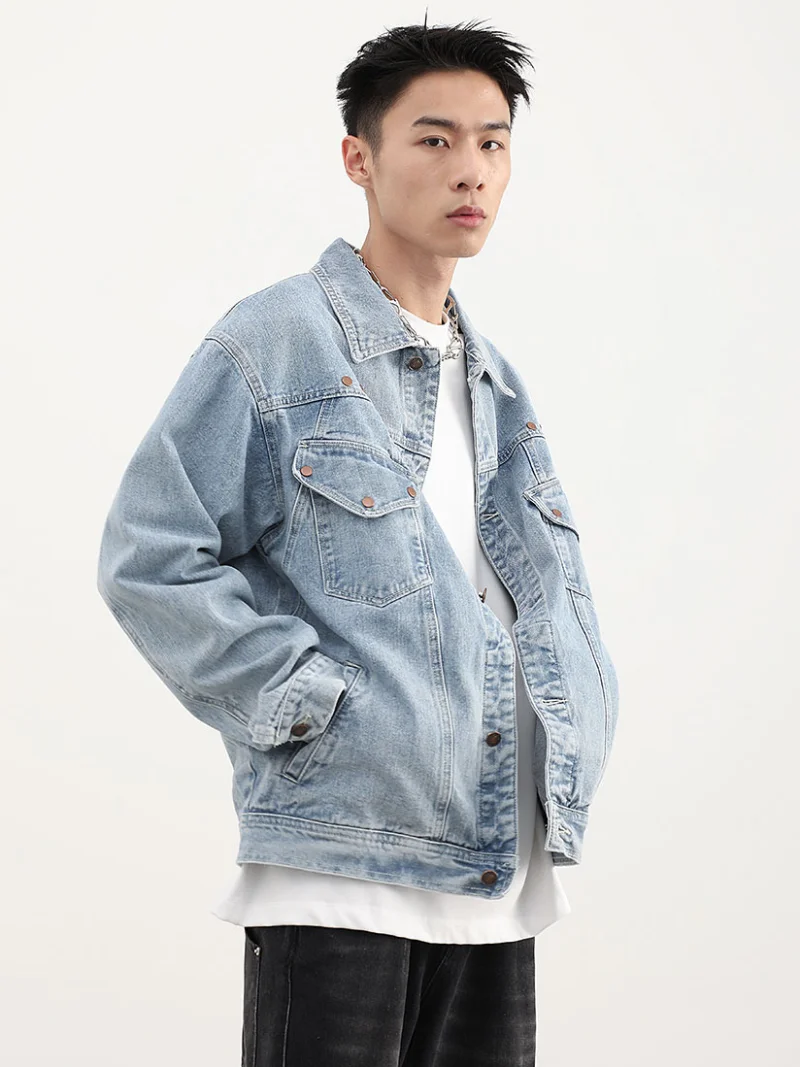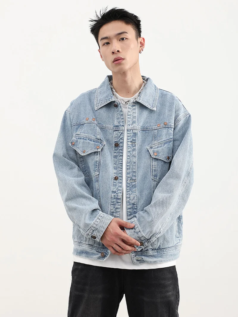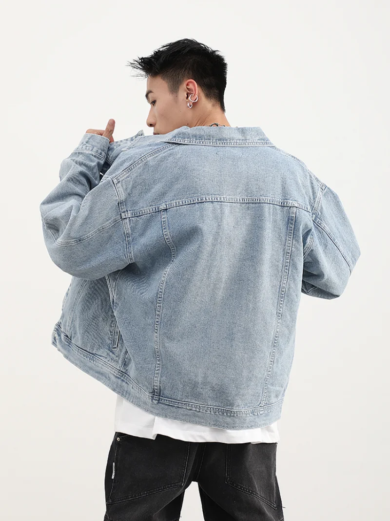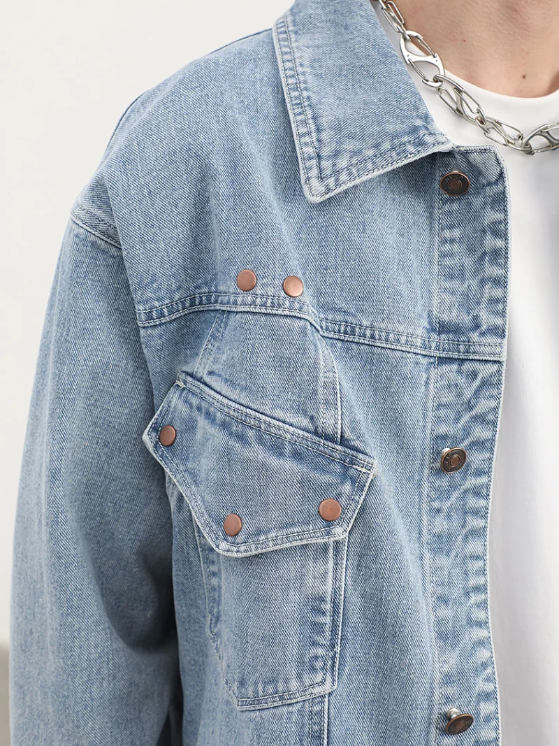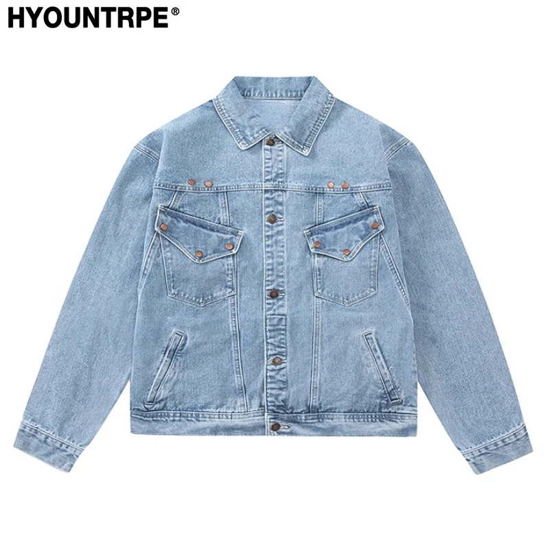 Rivet Decoration Harajuku Denim Jacket and Coat Mens Fashion Hip Hop Long Sleeve Jeans Outerwear Casual Streetwear Jeans Jackets