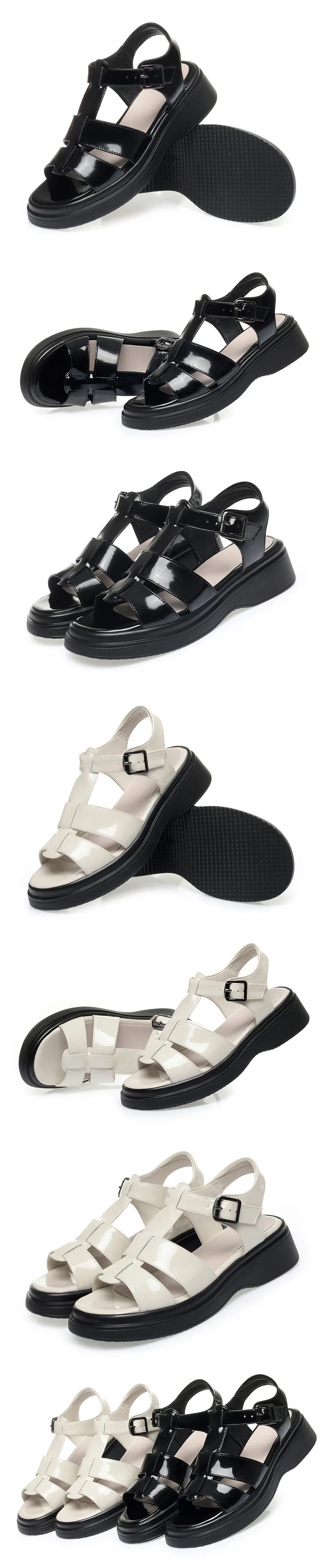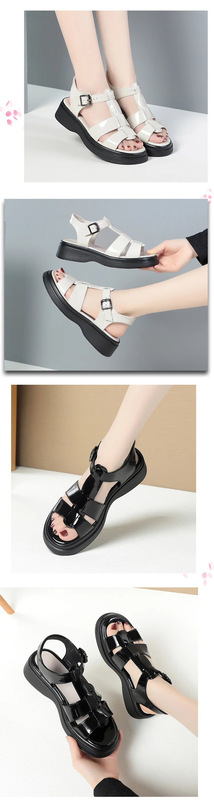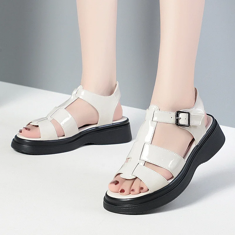 Roman Shoes Women’s Sandals Thick Sole Bright Leather Sandals Summer Mother Muffin Shoes Non-slip