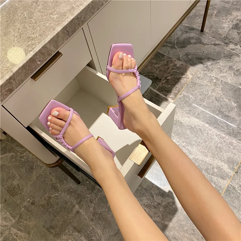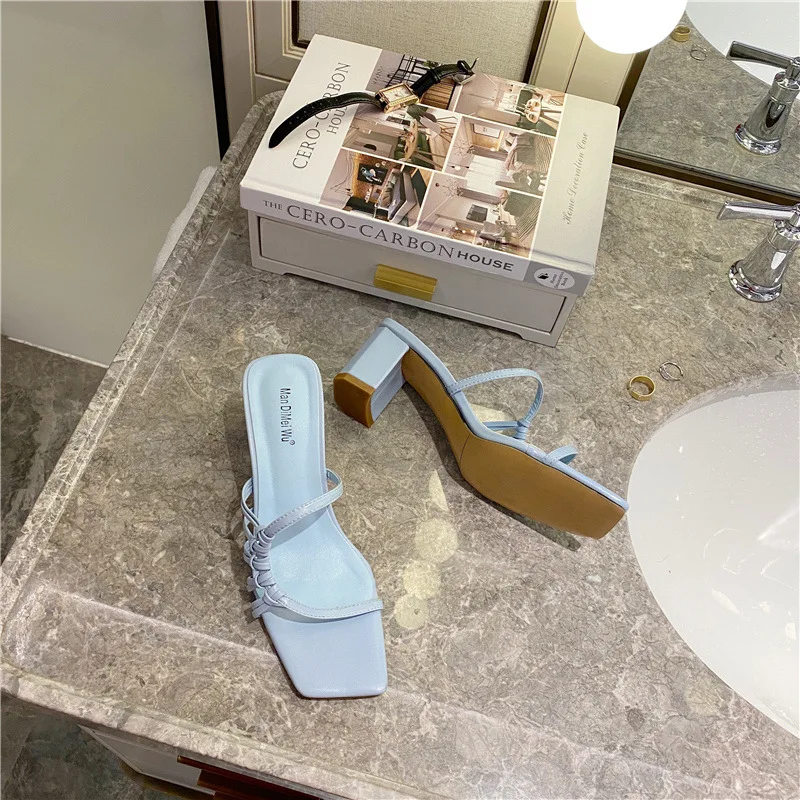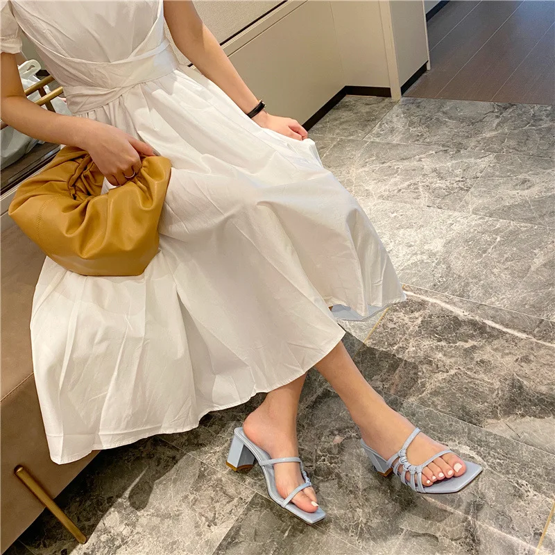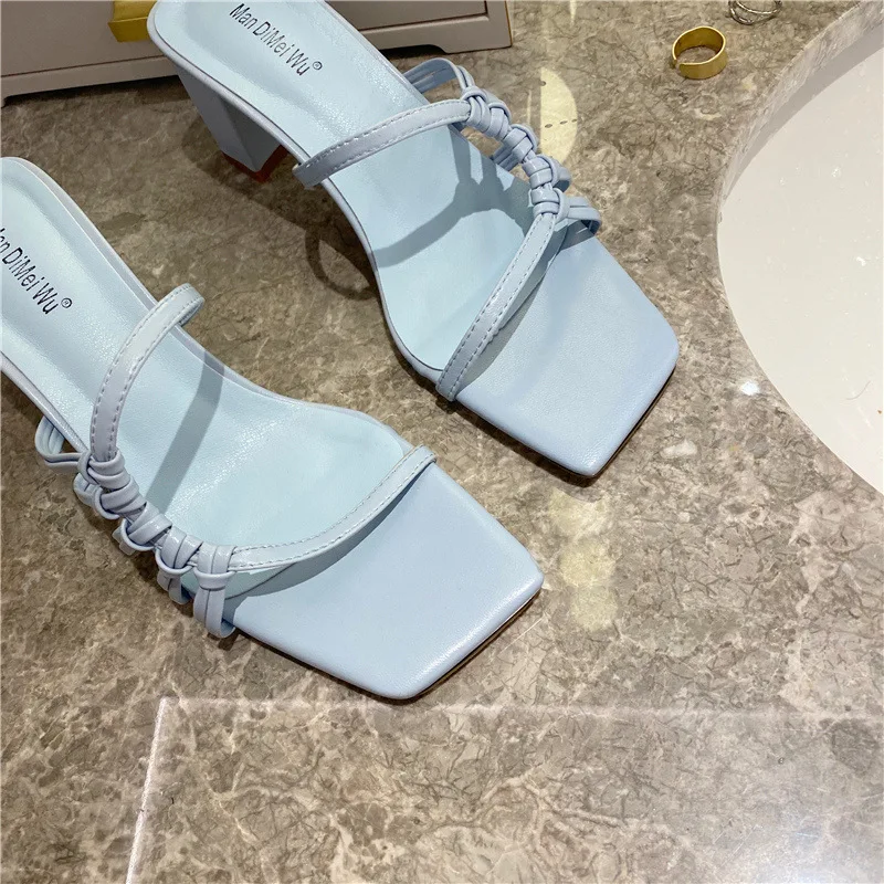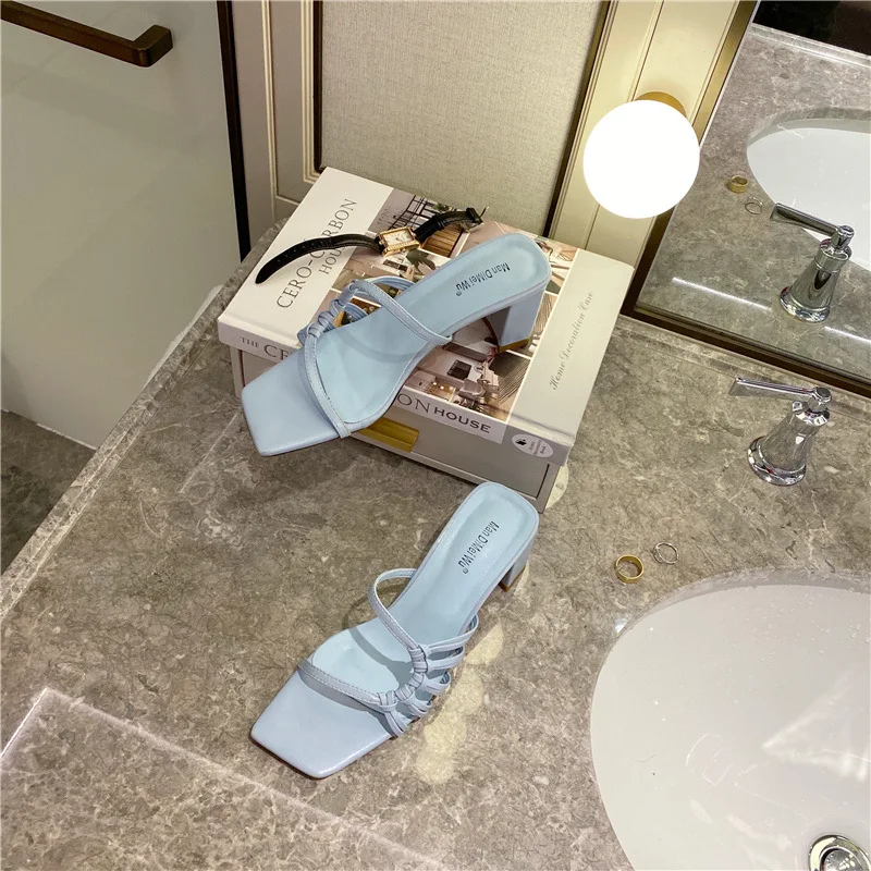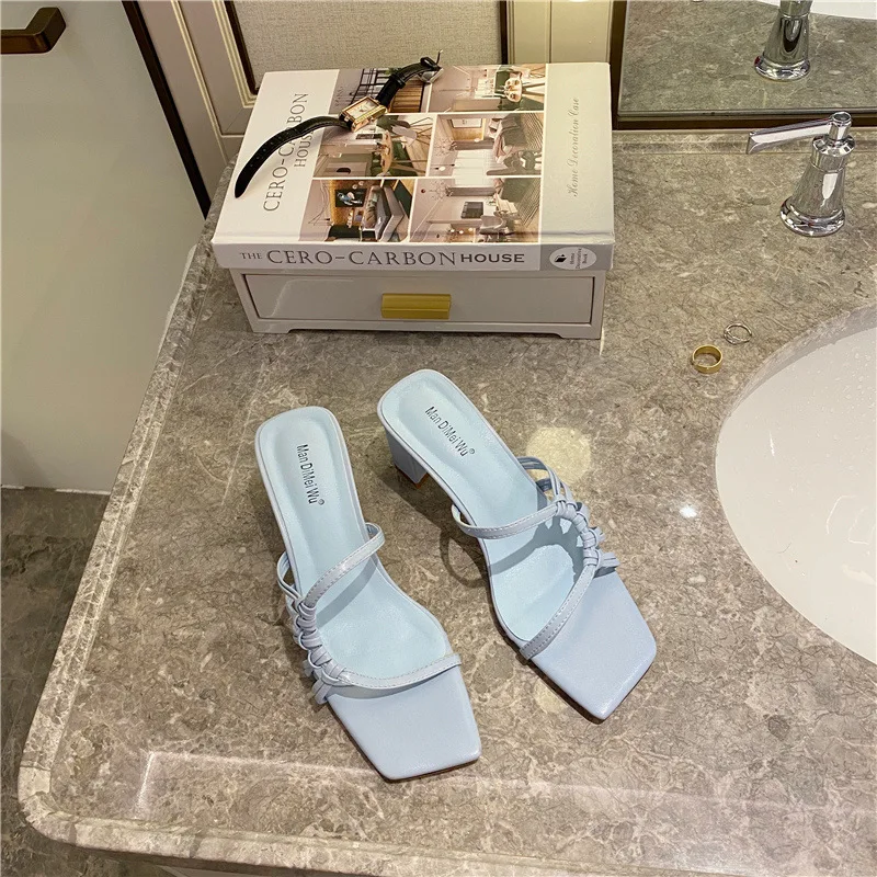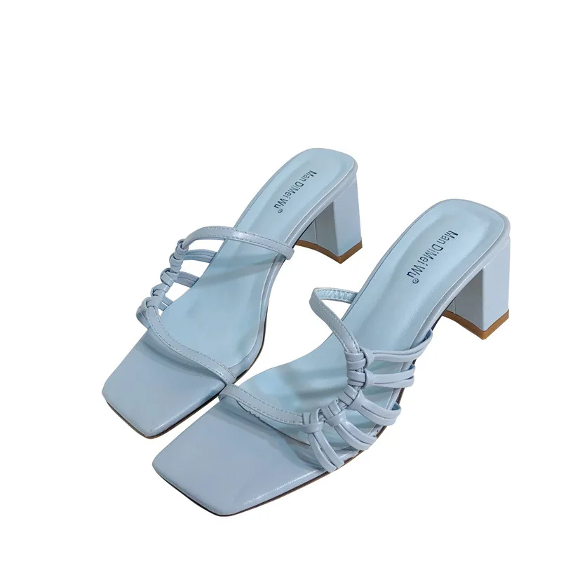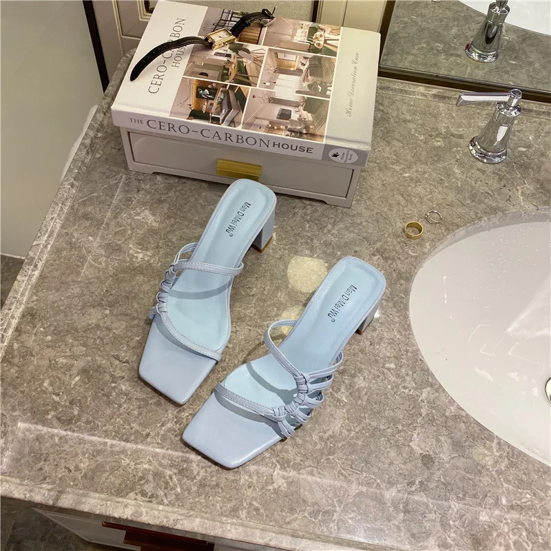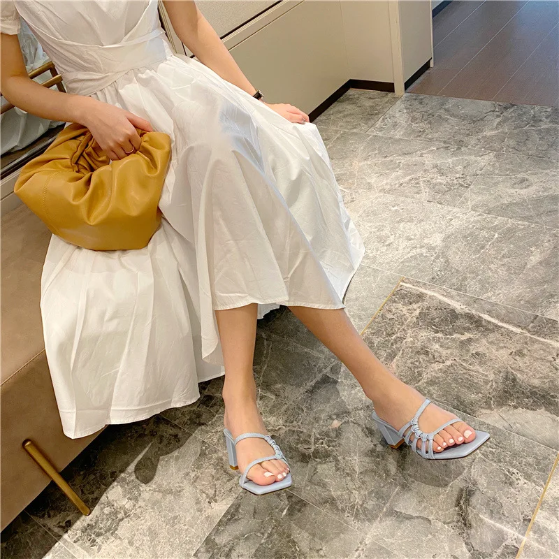 Rome Weave slippers women sandals fresh candy shoes woman flip flops open toe thick med heels pantuflas narrow band slides 2021