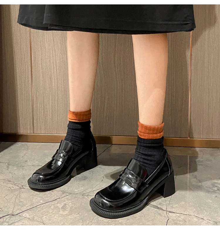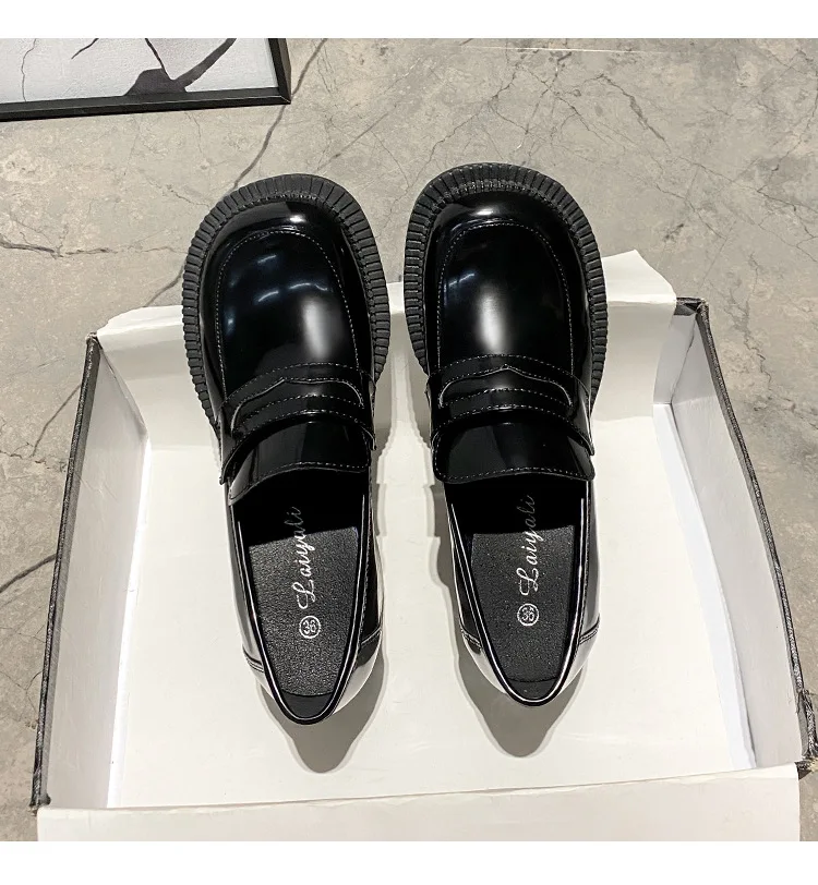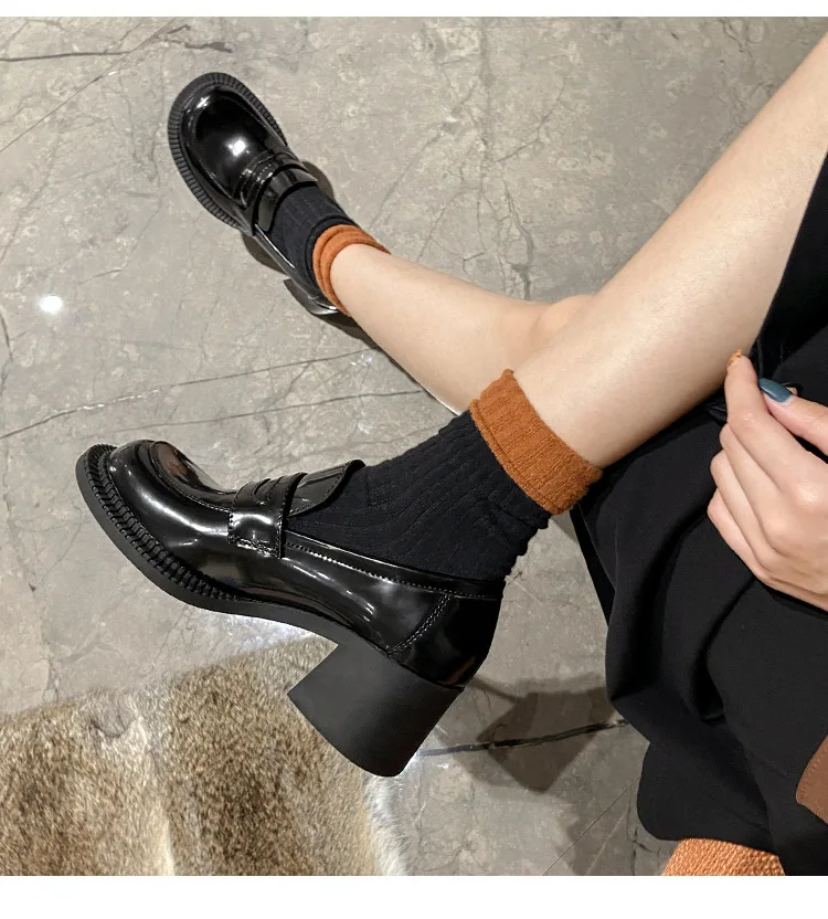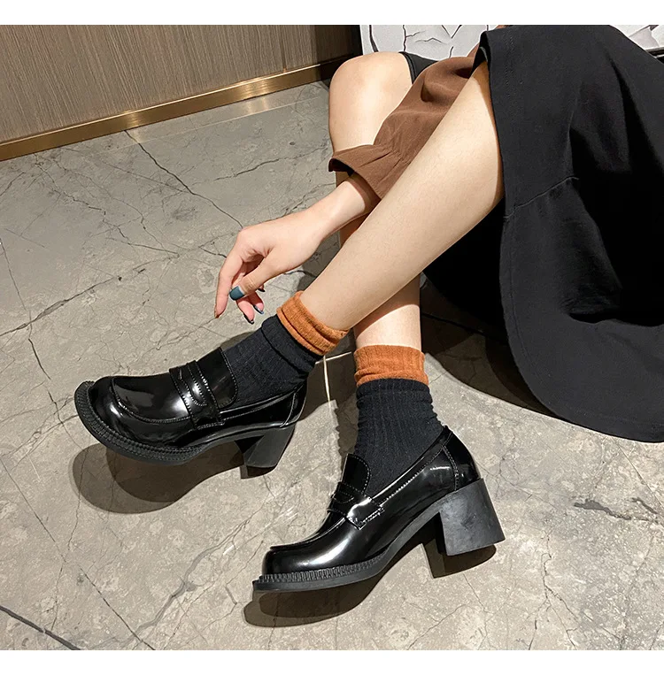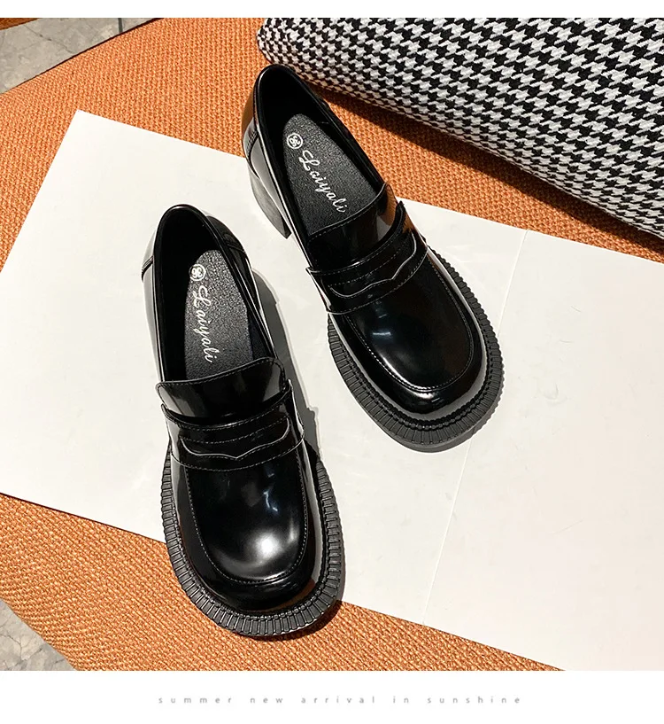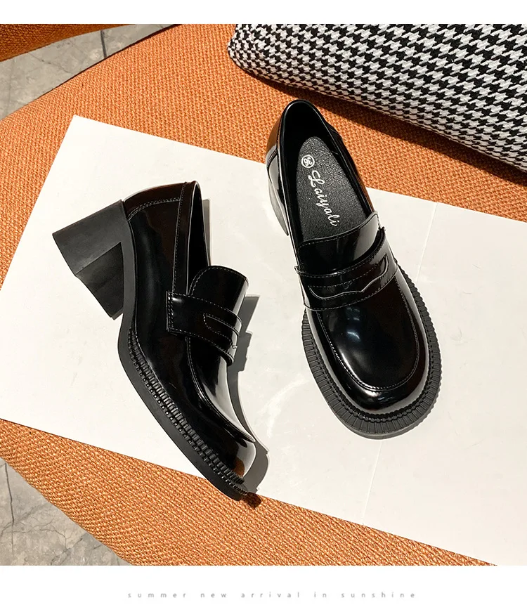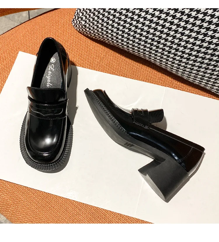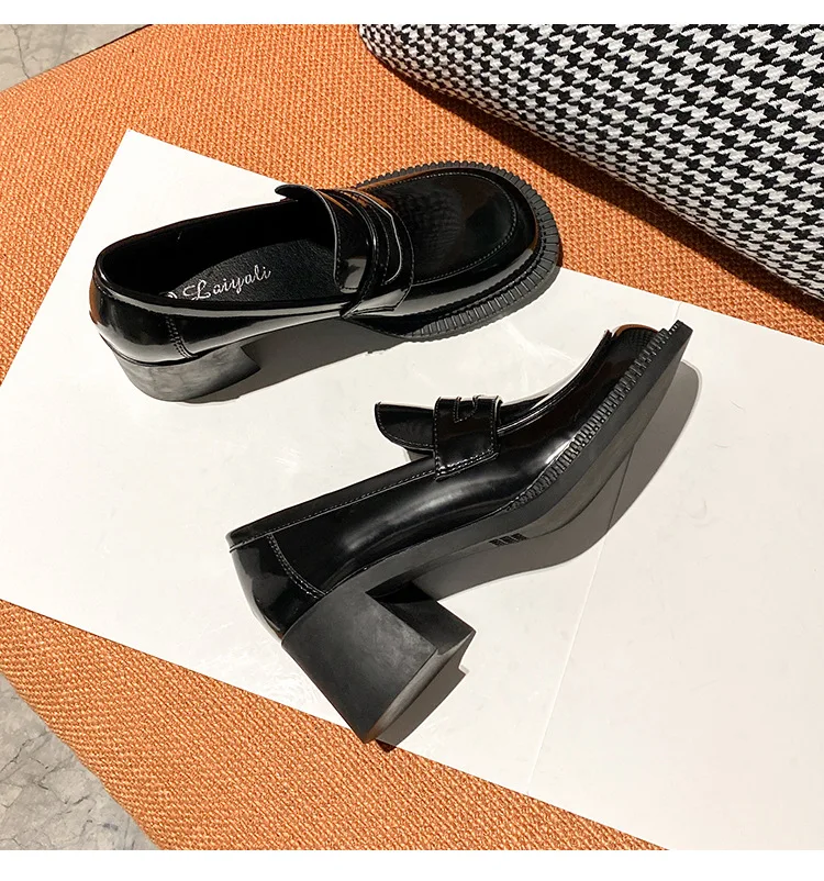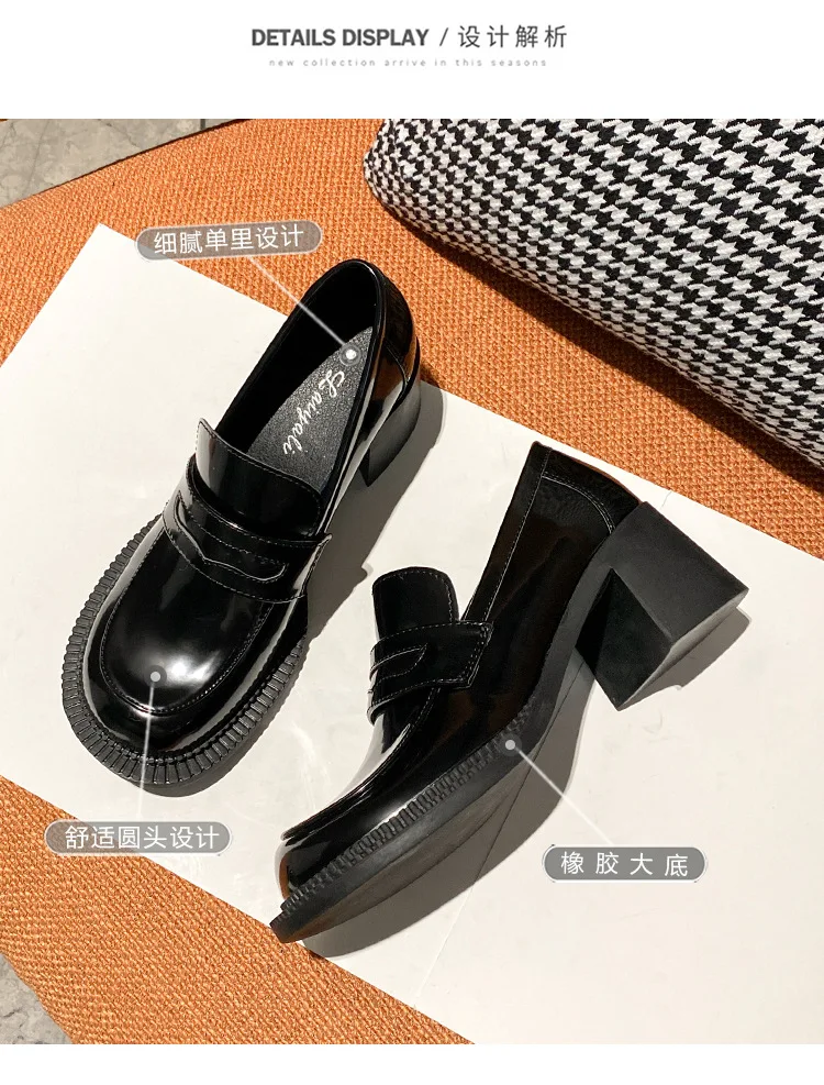 Round Big toe pumps woman designer mary janes shoes female slip on black oxfords thick high heels small leather shoes women 2020