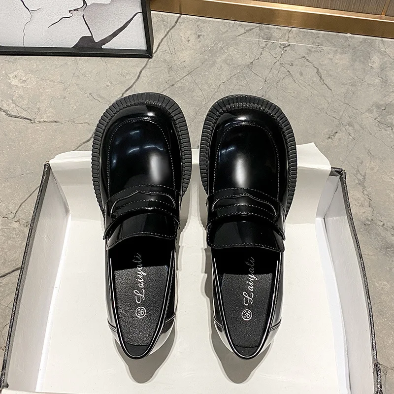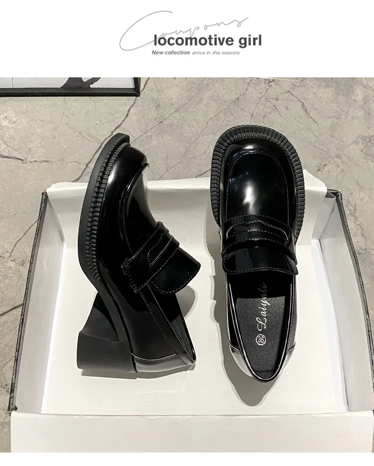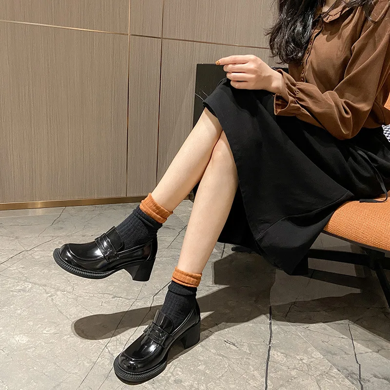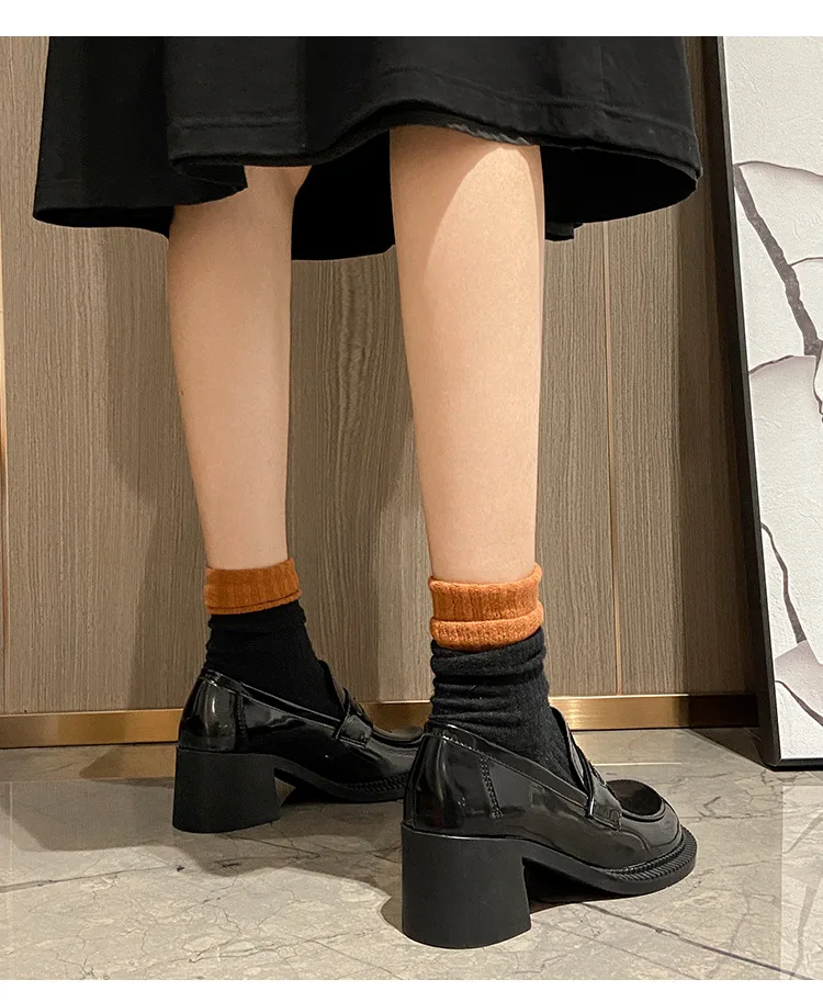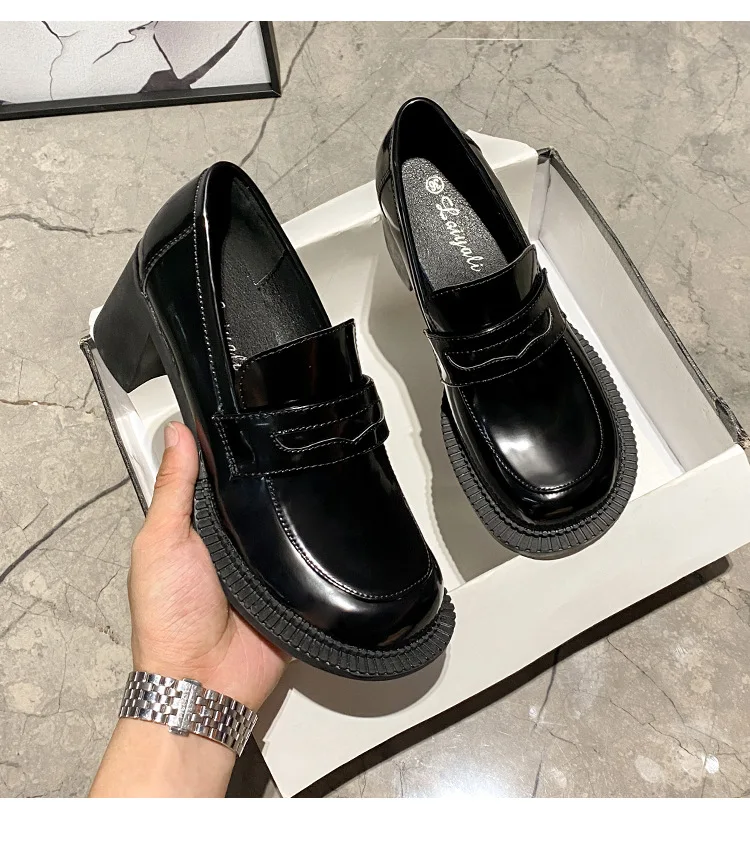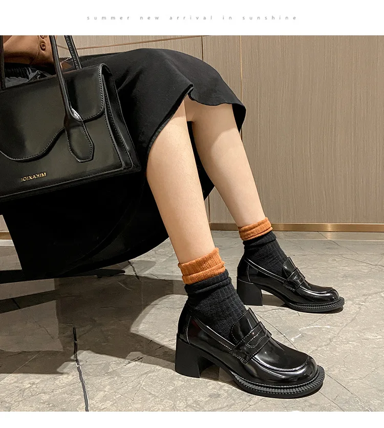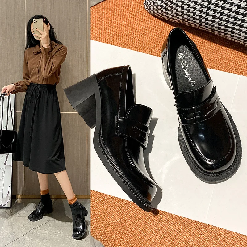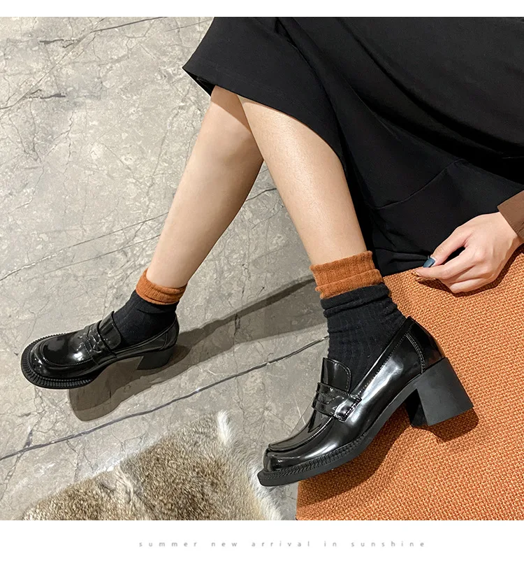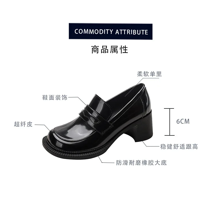 Round Big toe pumps woman designer mary janes shoes female slip on black oxfords thick high heels small leather shoes women 2020