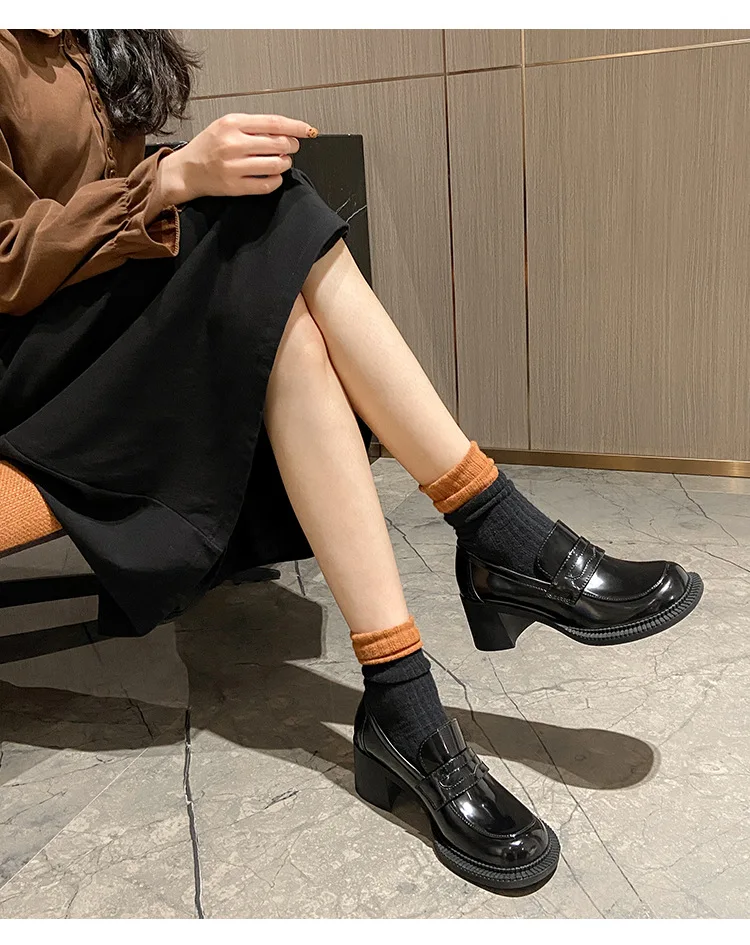 Big Round Toe Woman Pumps Ladies Thick High Heels Shoes