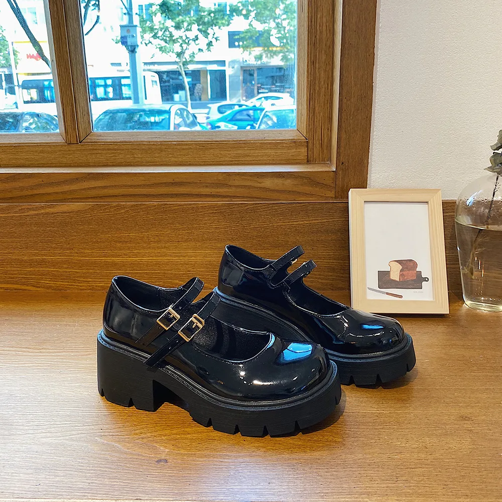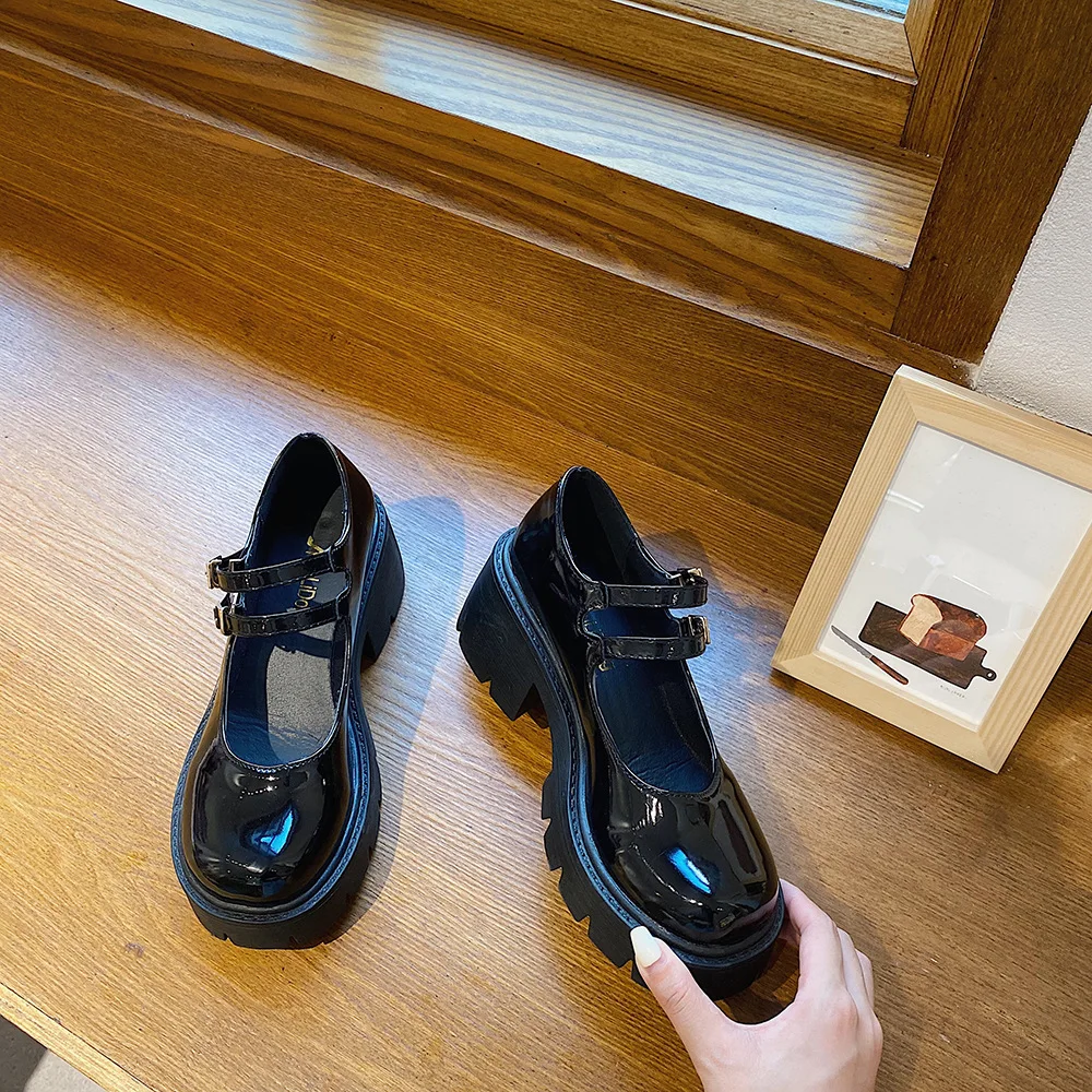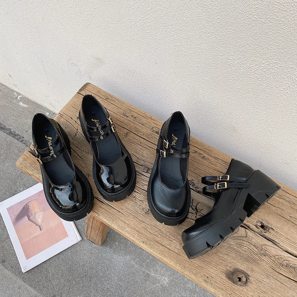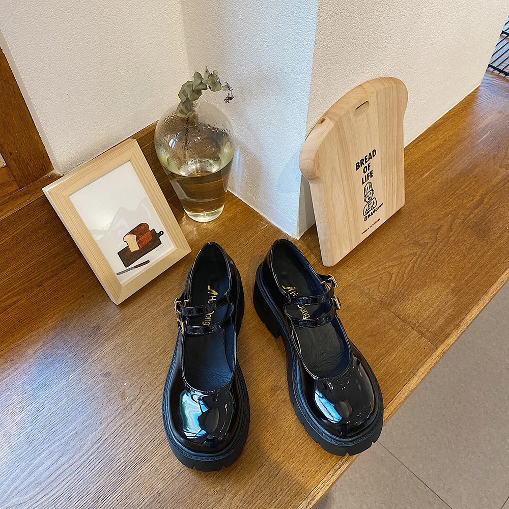 Round Toe buckle band mary janes patent&matte leather shoes for woman flats espadrilles chunky heels loafers women oxfords 2020