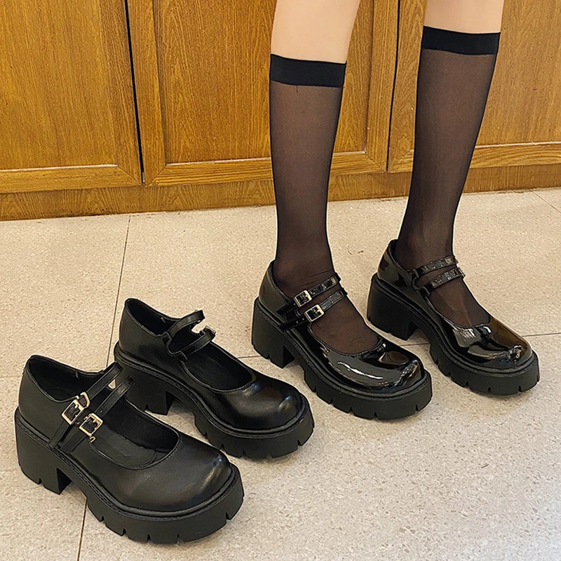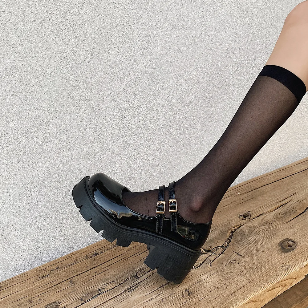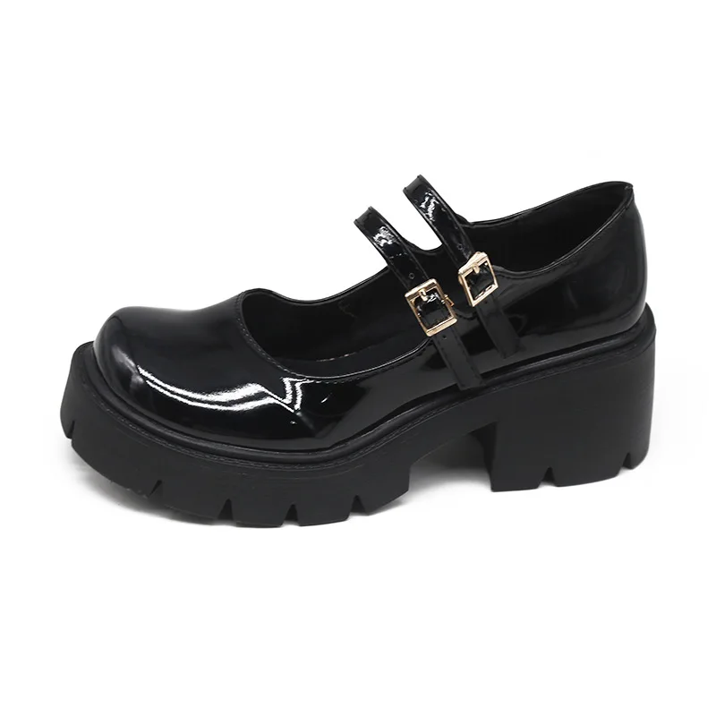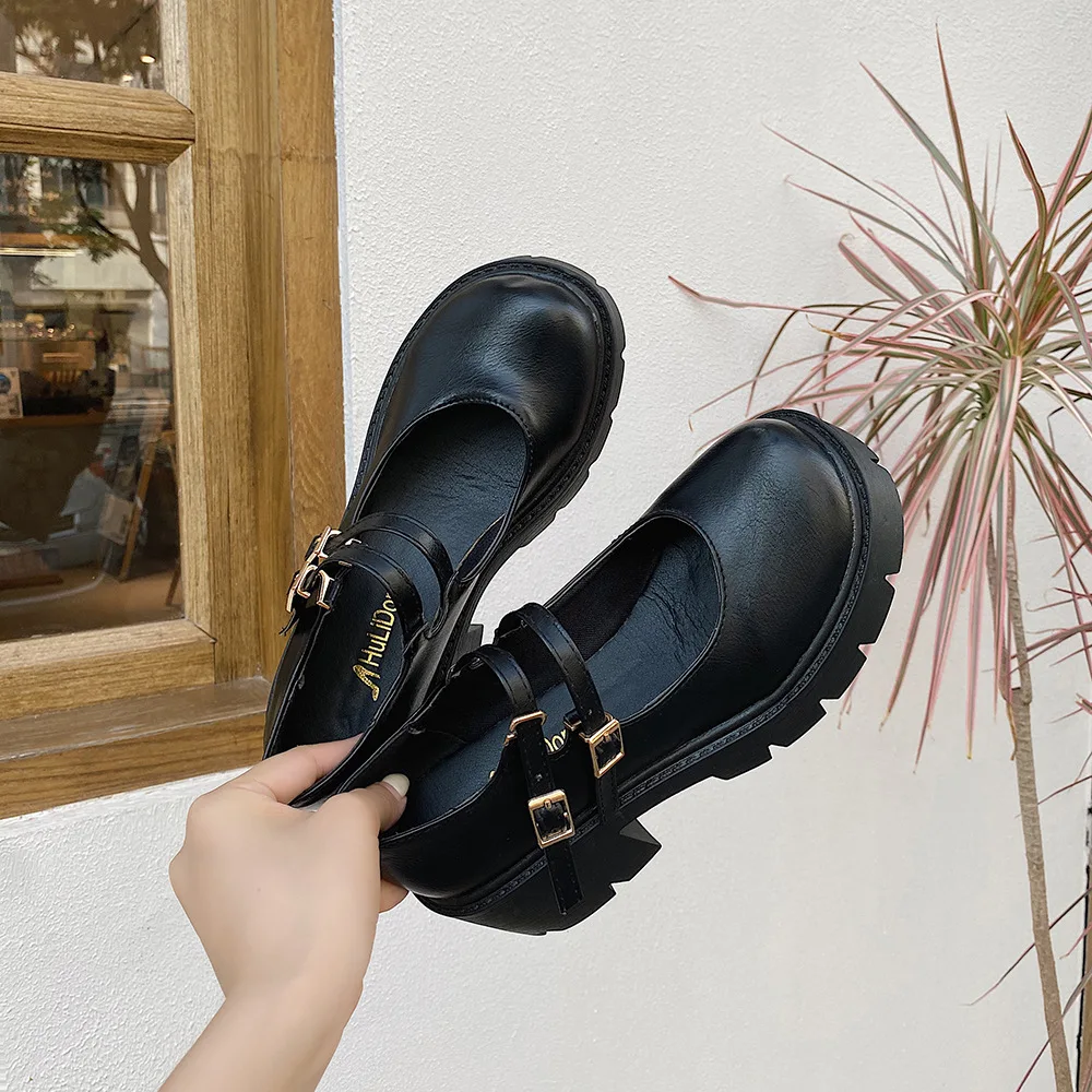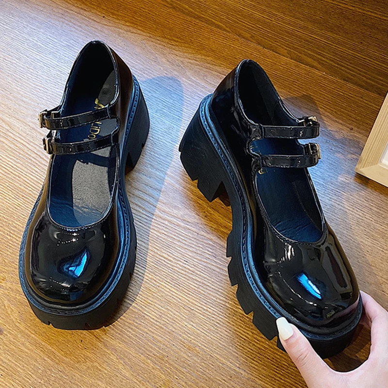 Round Toe buckle band mary janes patent&matte leather shoes for woman flats espadrilles chunky heels loafers women oxfords 2020