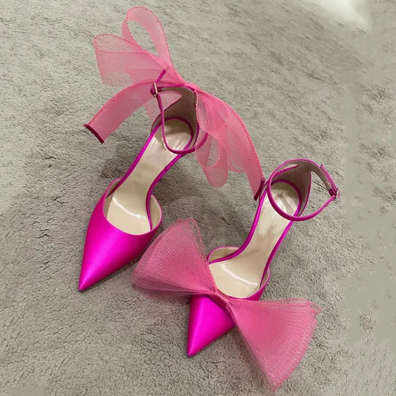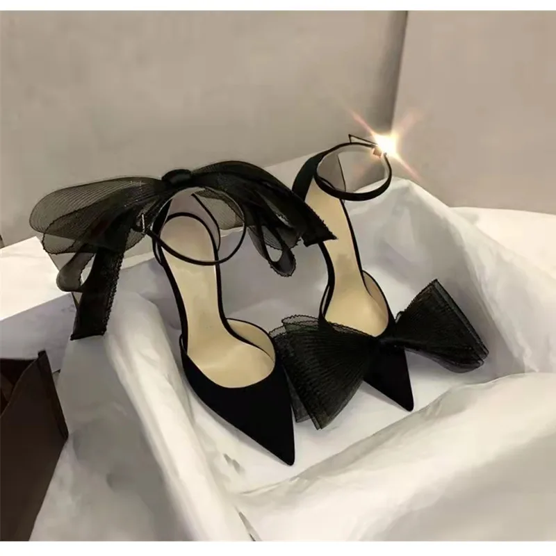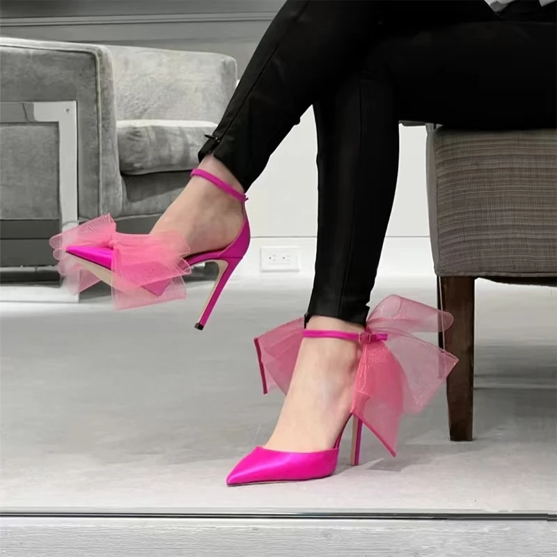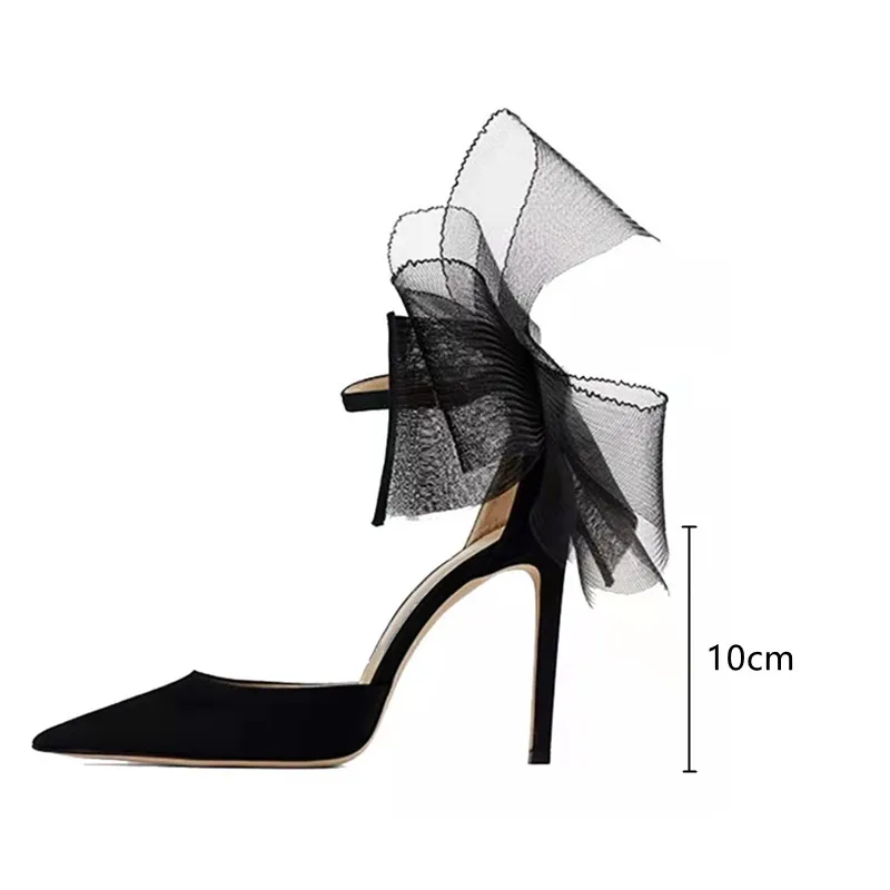 Runway style Tulle Big bowknot Asymmetrical Designer Women Pumps Luxury Satin 10cm High heels Spring Summer Wedding Party Shoes