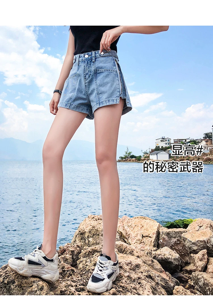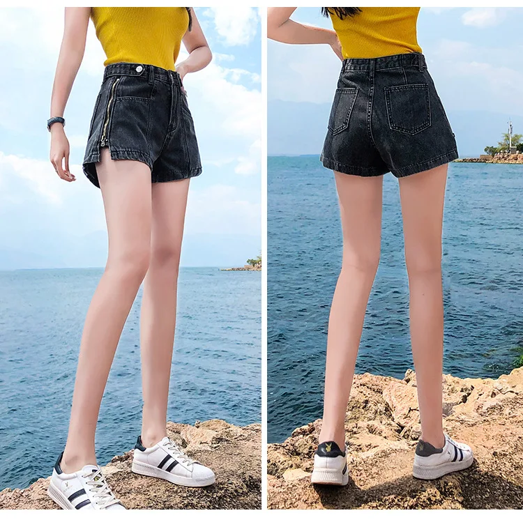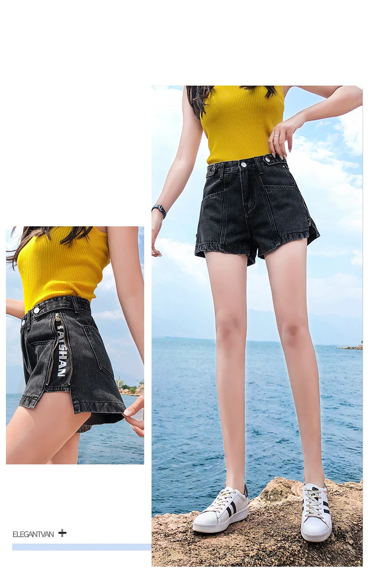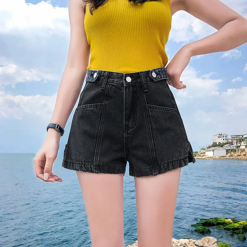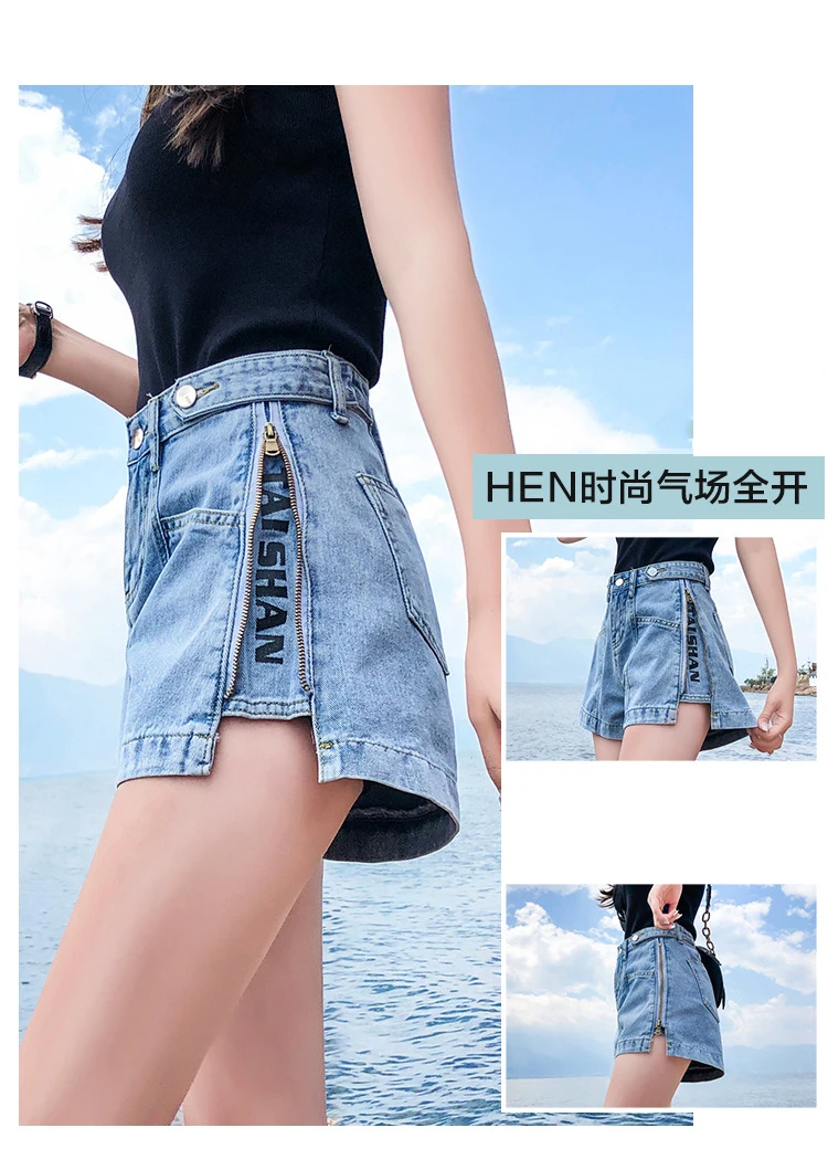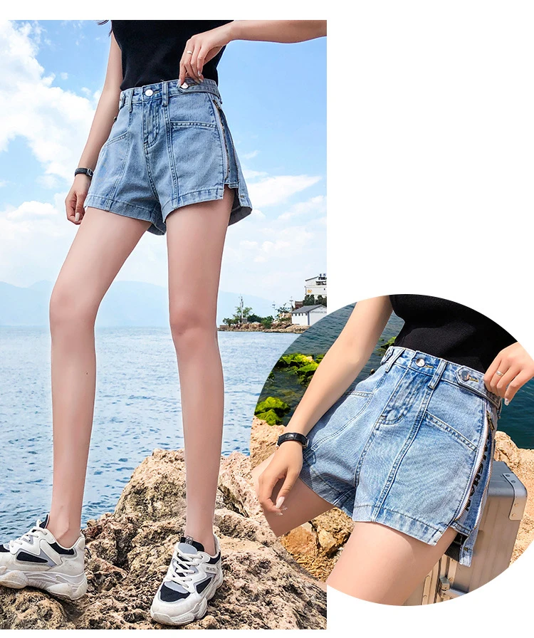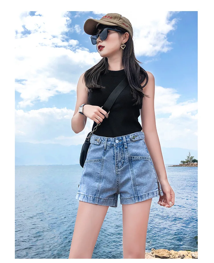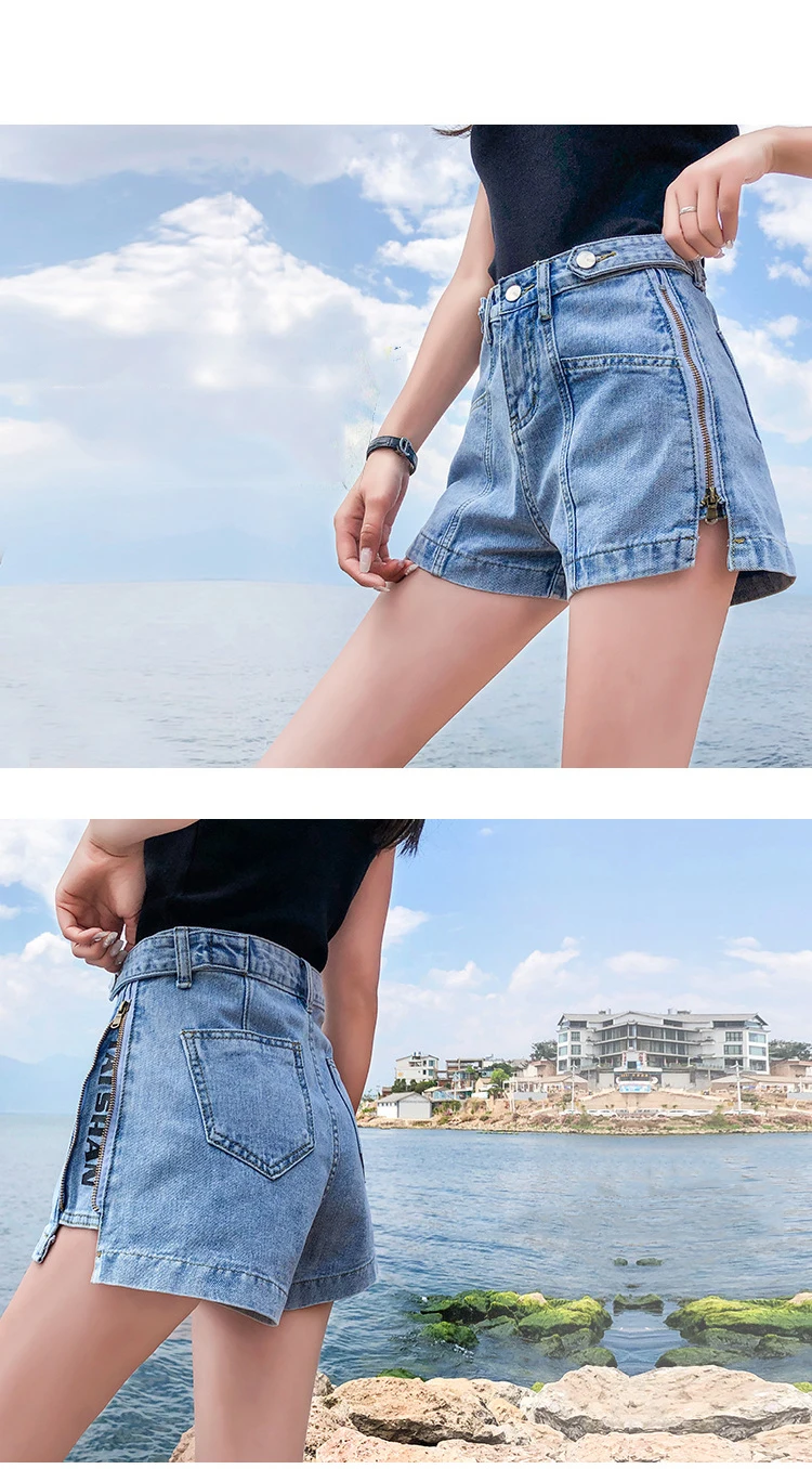 S-5XL Women’s Denim Shorts Fashion Vintage High Waist Blue Wide Leg Female Side Zipper Caual Summer Ladies Shorts Jeans